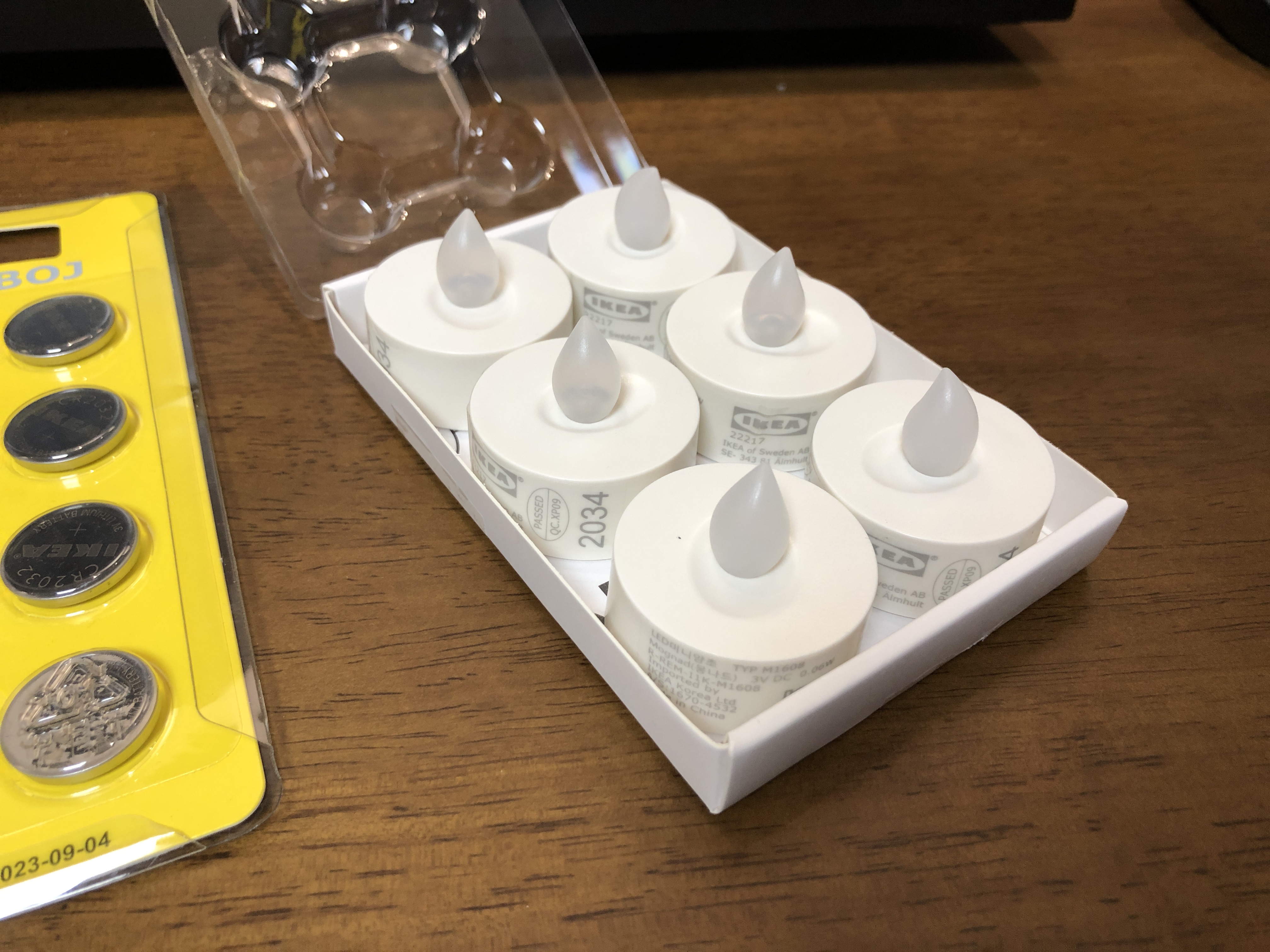 이케아 MOGNAD 몽나드 LED 미니 양초. 진짜 양초만큼의 분위기는 아니지만 나름 괜찮은 느낌을 전달해주는 인테리어 소품이라 생각합니다. 아이가 있는 집에서는 좋은 대안이 될 것 같습니다.