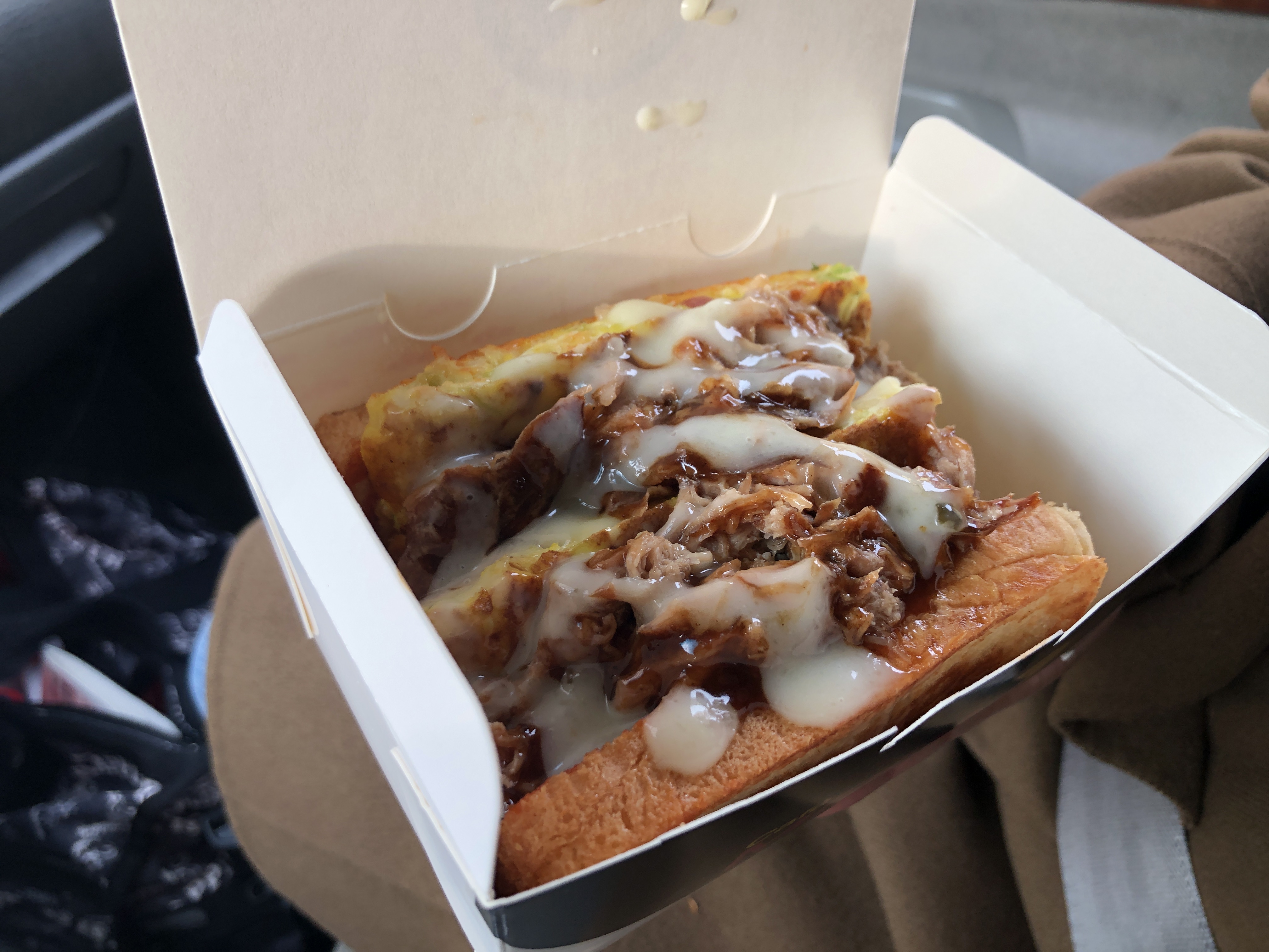 이건 고기가 들어간 토스트. 개인적으로 치즈가 좋네요. 전반적으로 맛은 괜찮았습니다. 비주얼도 괜찮고. 동네에 파는 토스트보다는 비싸지만 바닷가에서 먹을 수 있는 프리미엄이 있어서 그런가 생각합니다. 요즘은 식당에서 식사하는 가격을 생각하면 5~6천 원 하는 토스트 가격이 그렇게 비싼 것 같지도 않습니다.