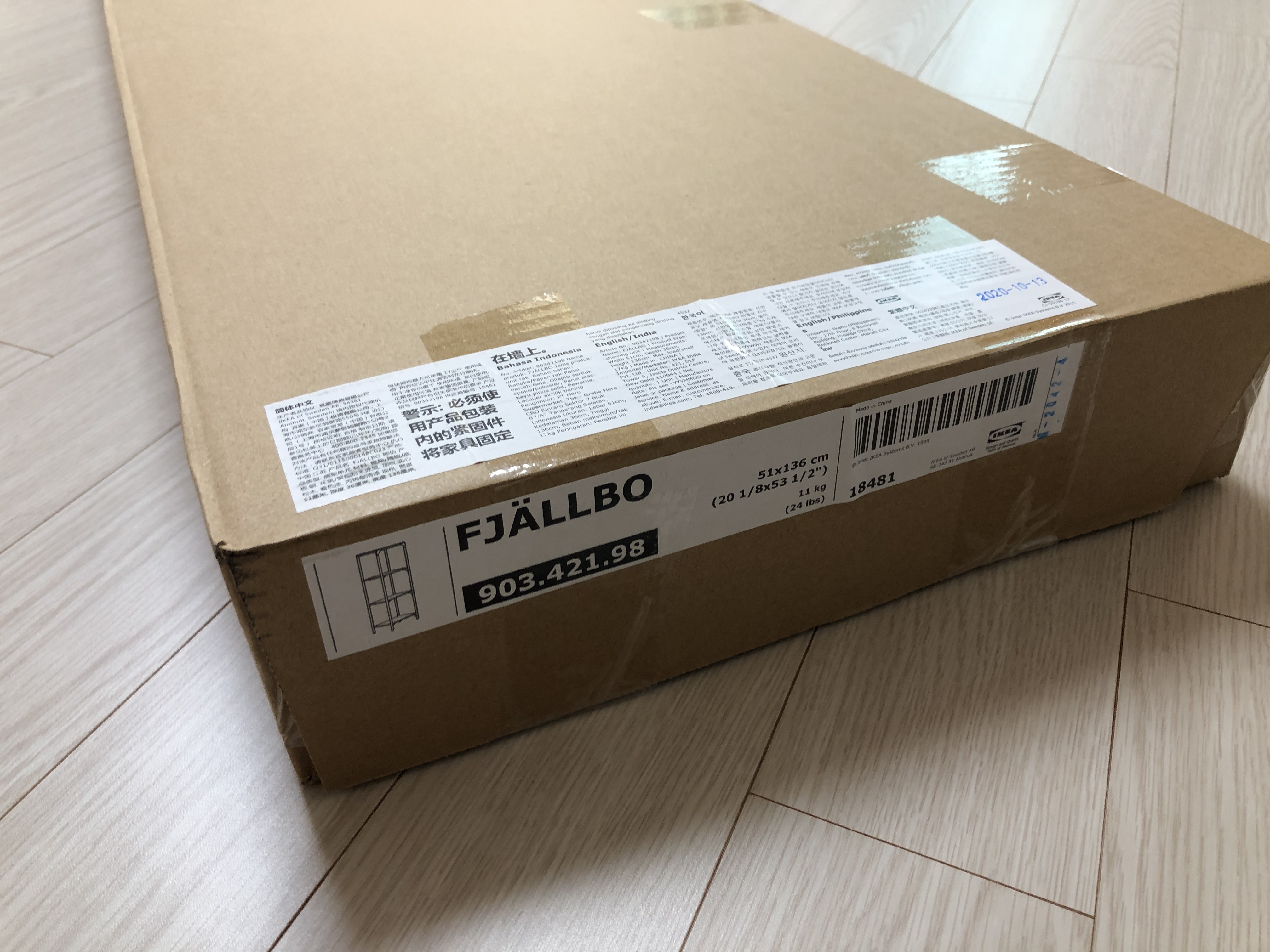 이케아 피엘보 선반을 개봉한 모습입니다. 나름 크고 부피가 있는 제품이라 박스가 묵직합니다.