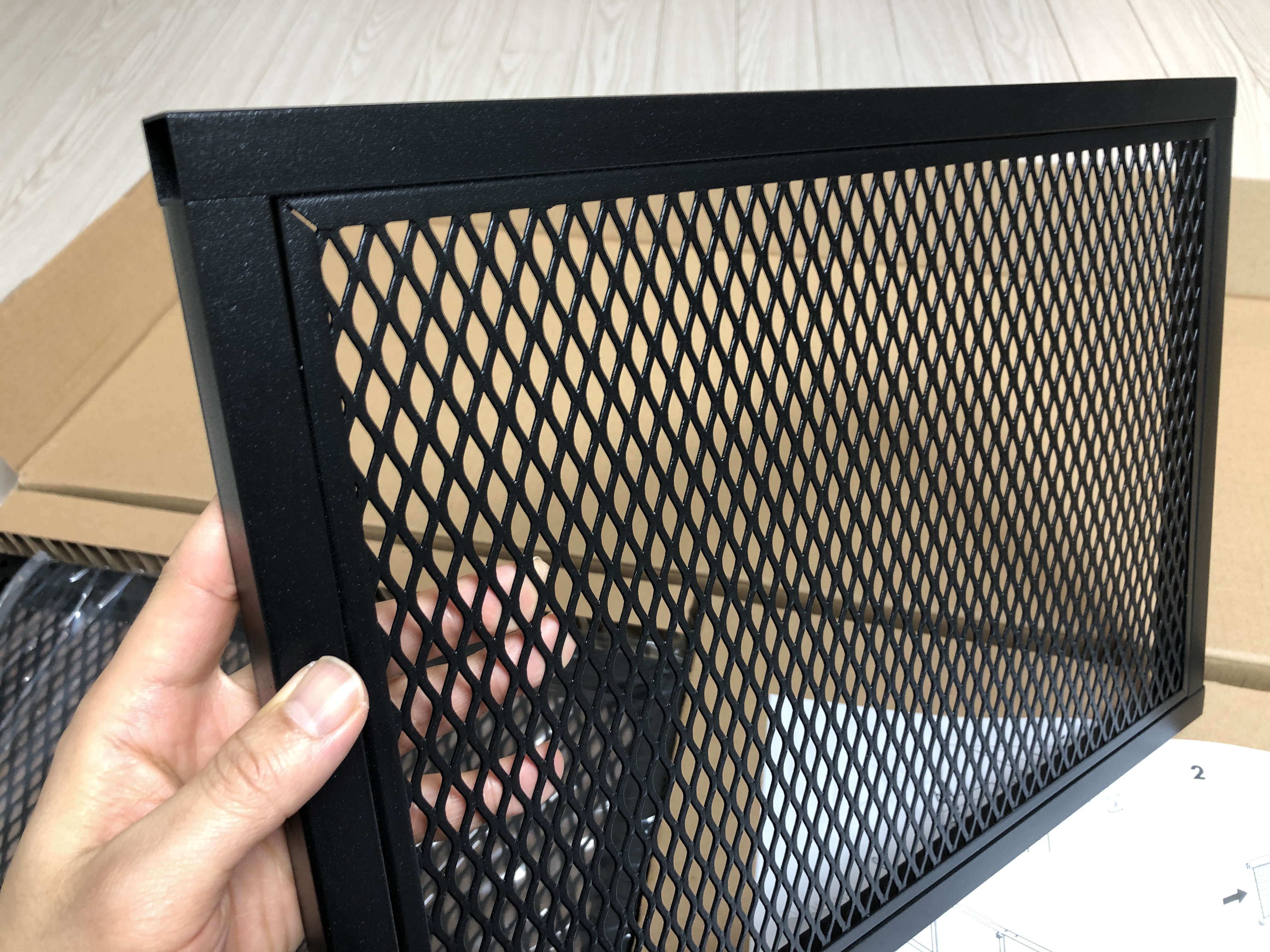 피엘보 선반의 바닥은 그물망처럼 생긴 철판으로 되어 있습니다. 만져보니 튼튼하네요.