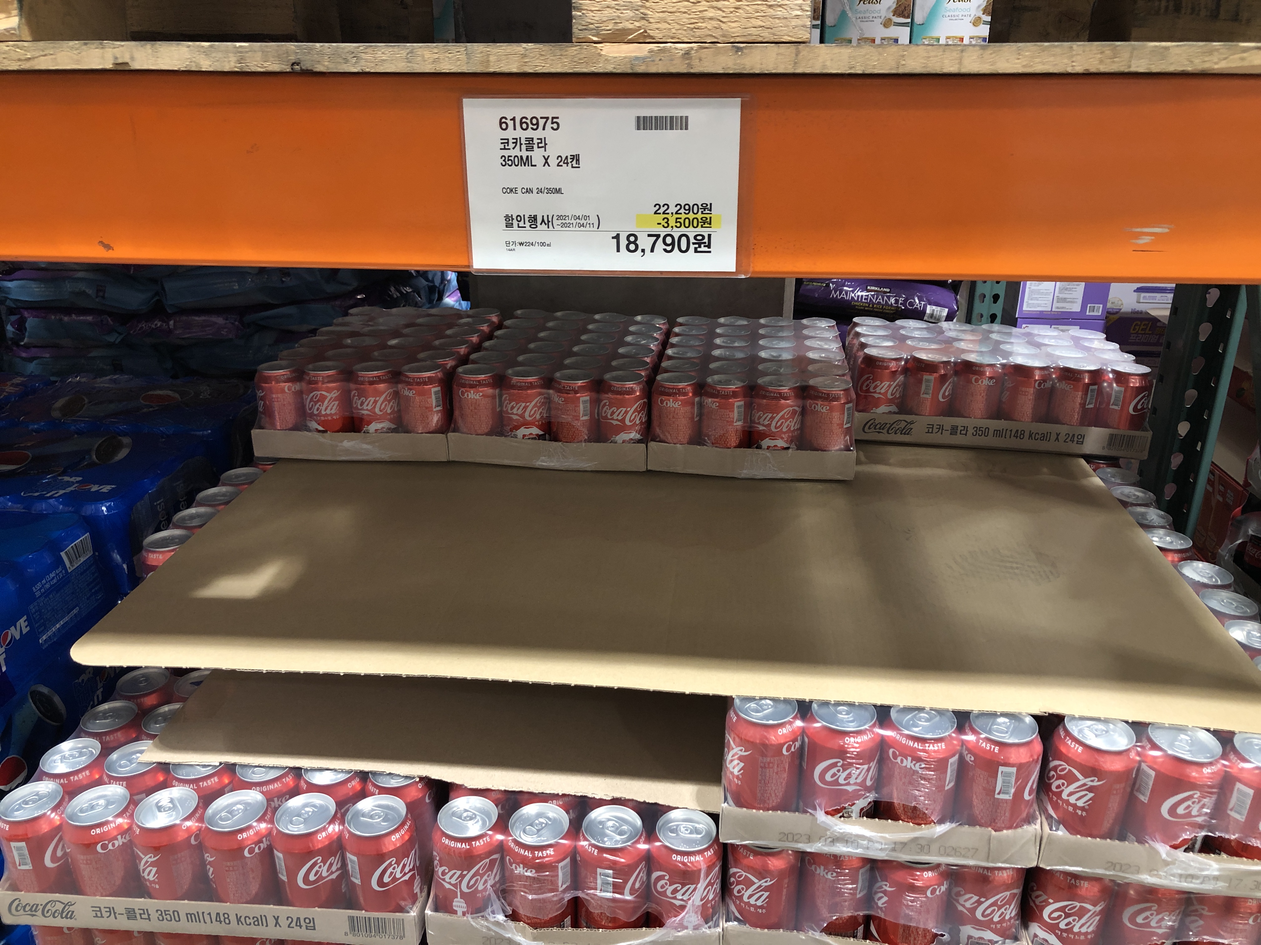 코스트코(COSTCO)에서 펩시콜라와 코카콜라가 나란히 가격 경쟁을 펼칩니다.