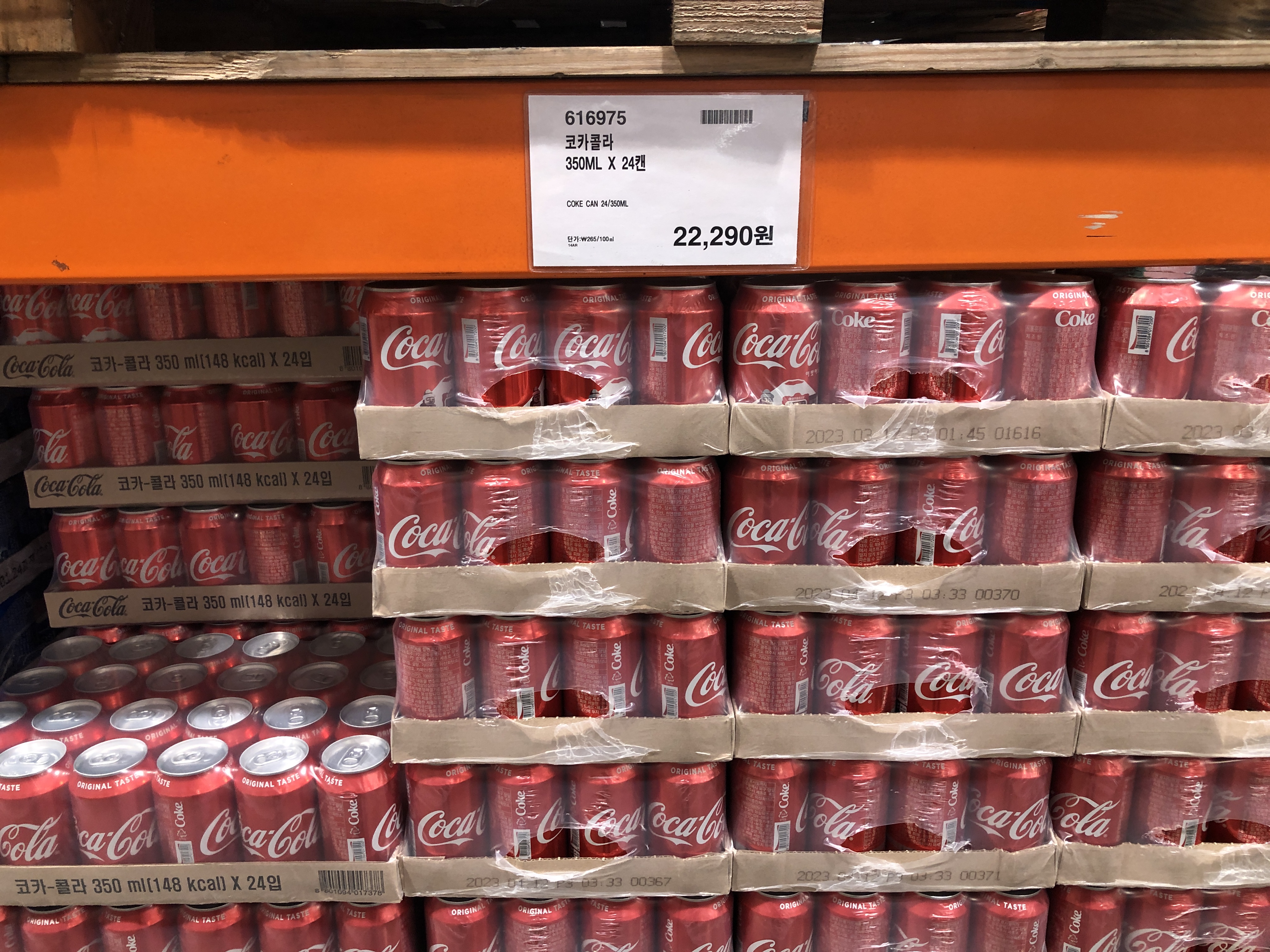 350ML 코카콜라 캔은 가끔 할인행사를 하는데 이럴 때 저는 그냥 2박스 담습니다.