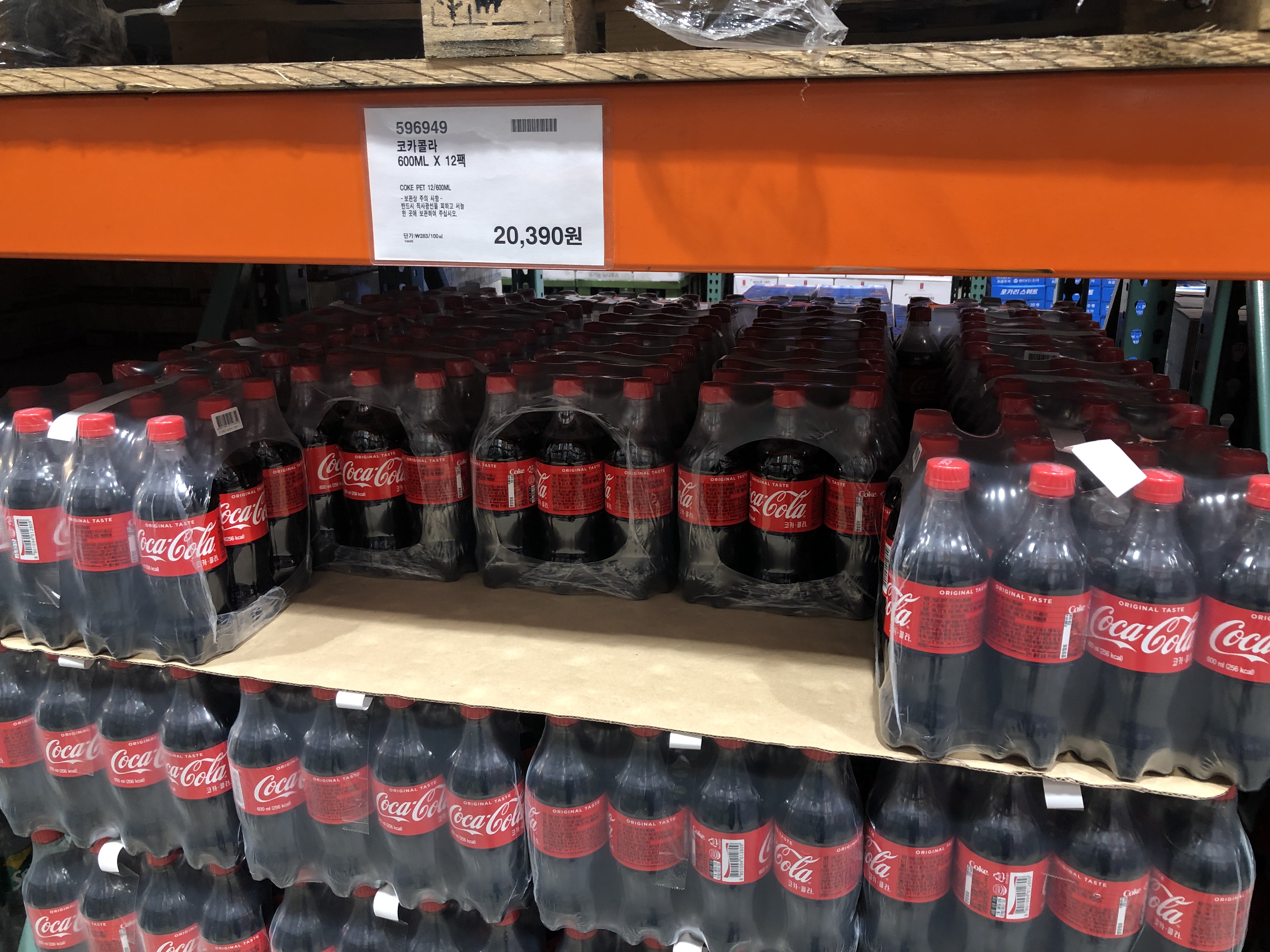 코카콜라 600ML X 12팩 = 20,390원 (1ML당 283원)