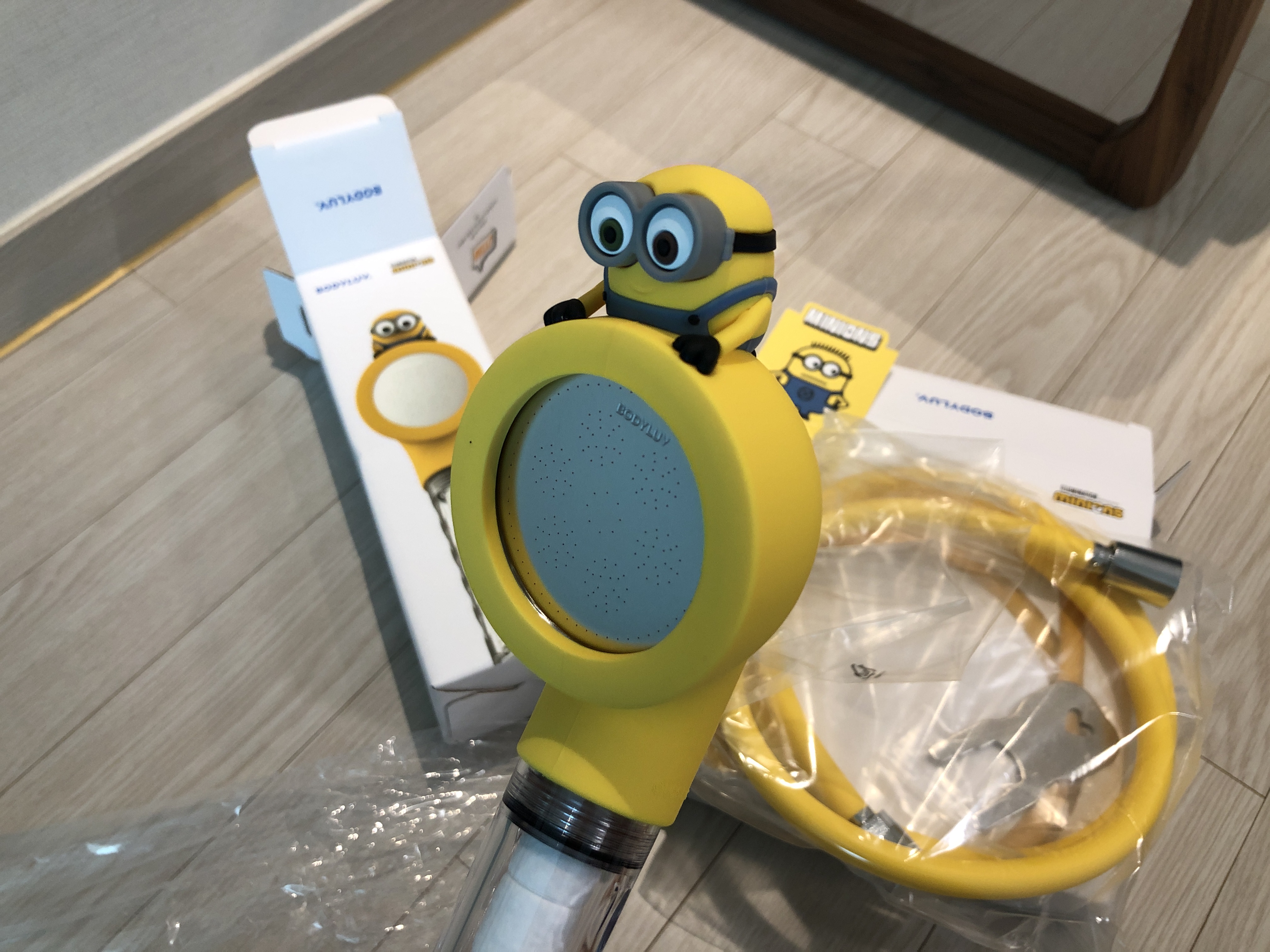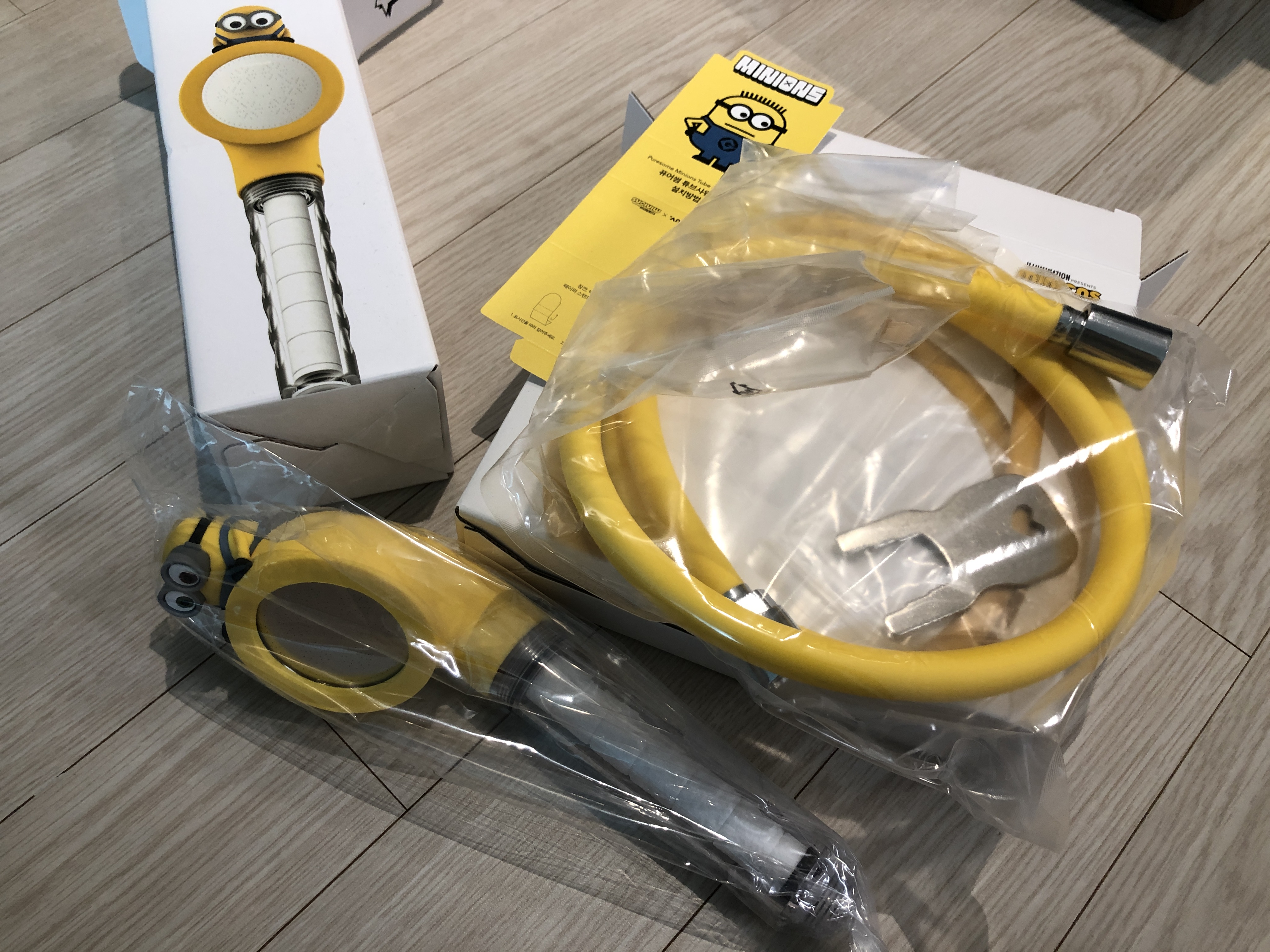 미니언즈 샤워기를 개봉한 모습.