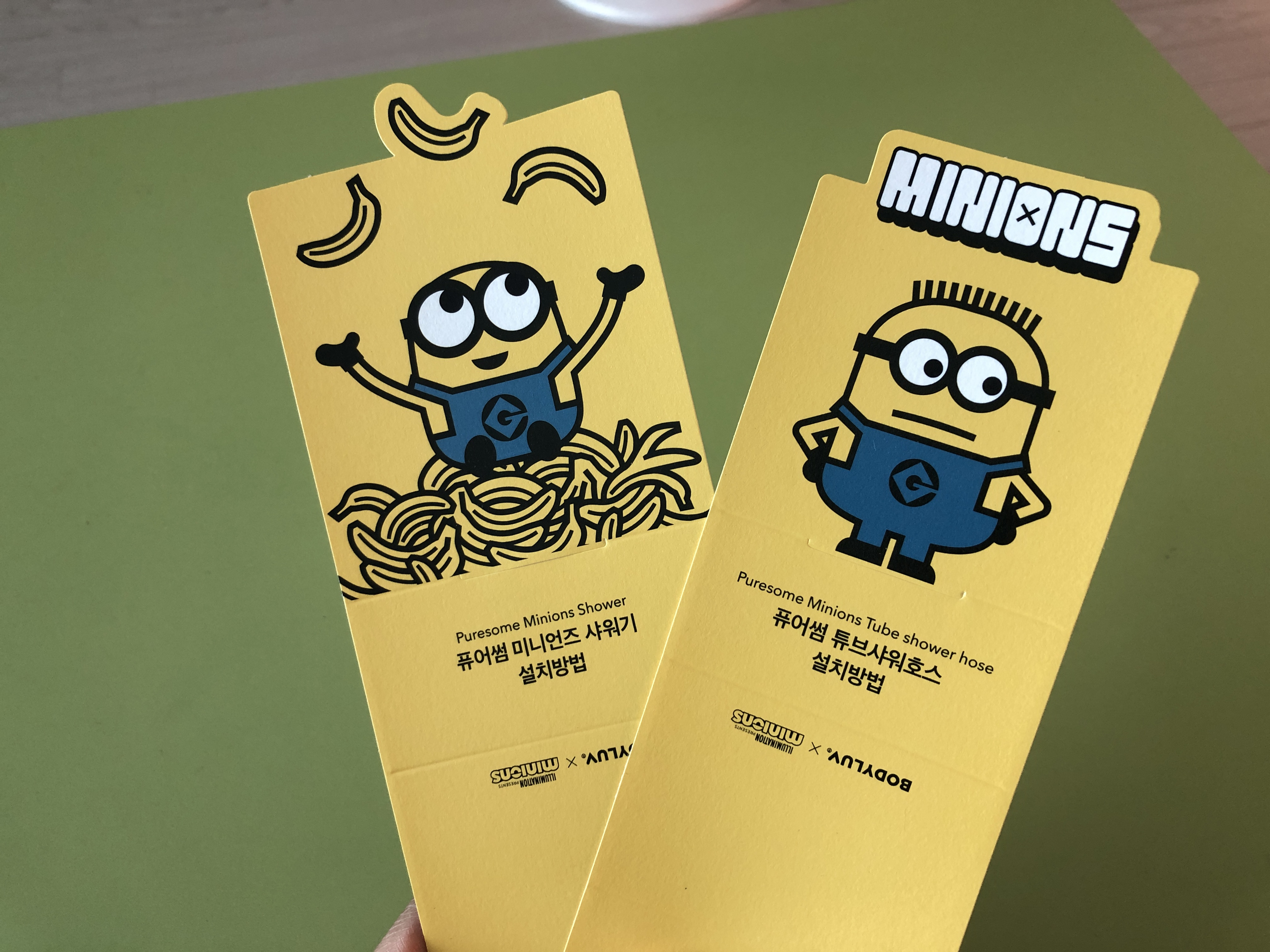 미니언즈 샤워기 설명서를 이렇게 접으면 책상 위 인테리어 소품이 됩니다.