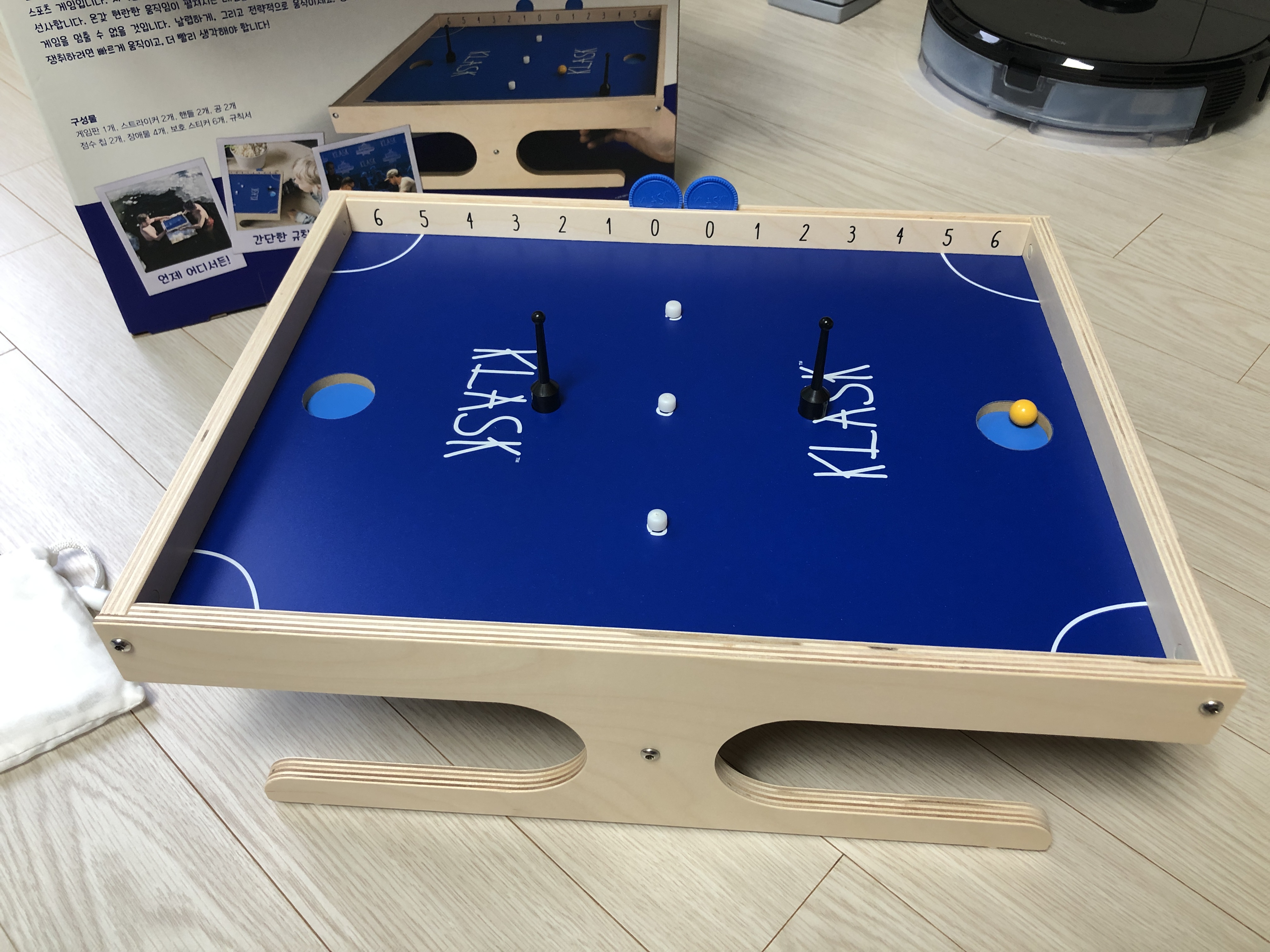 클라스크 보드게임을 셋팅한 모습. 창업자가 목수라서 그런지 나무 제품 마감이 가격 대비 괜찮습니다. 게임이 지겨워지면 바닥에 놓고 차나 커피를 마실 때 다과상으로 써도 될 것 같아요 ㅎㅎ 맥주 안주 놓기에도 좋고. 물론 위에 뭘 깔고 써야 상판에 무리가 가지 않겠죠?!