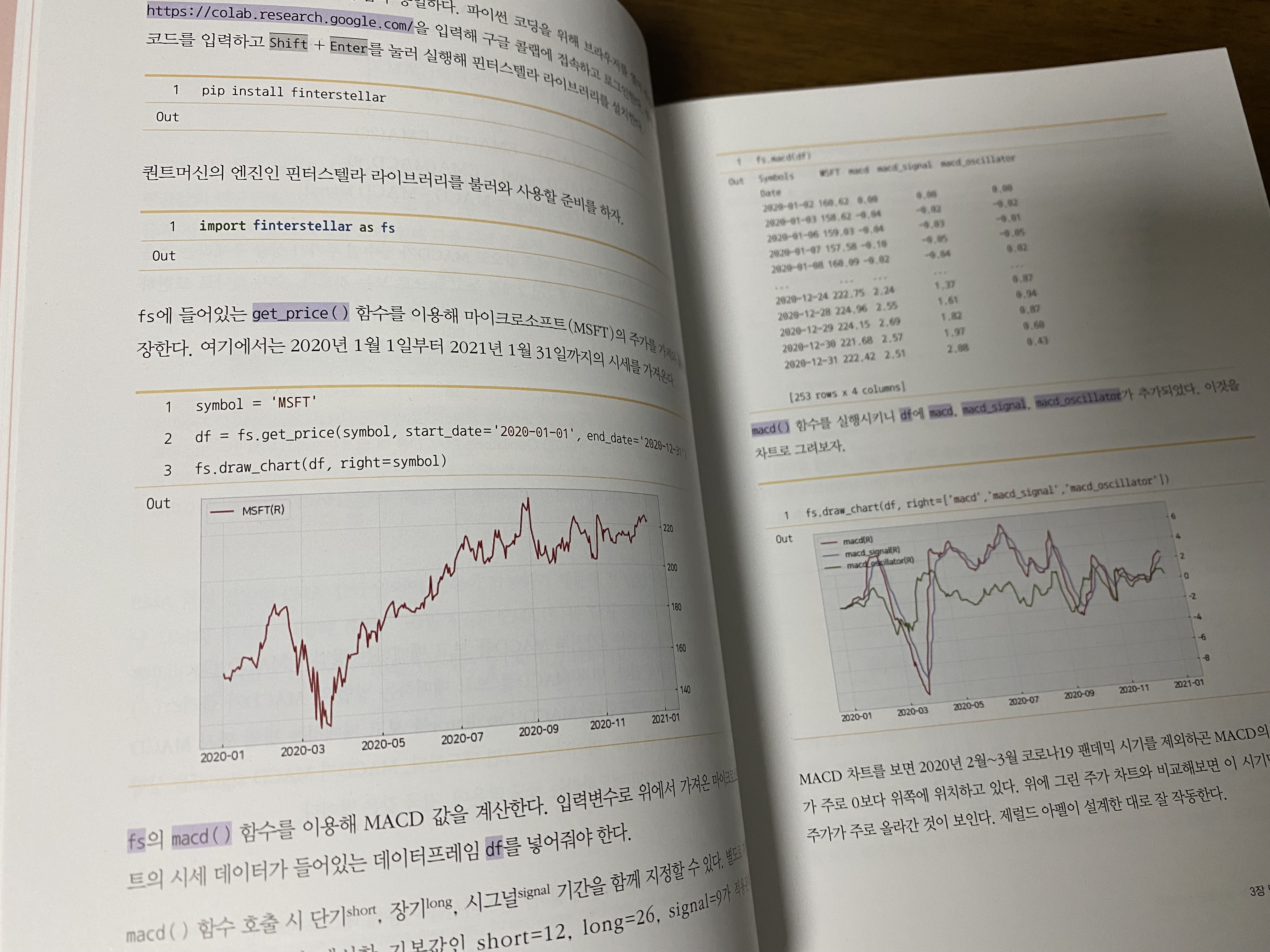 보통 파이썬으로 코딩을 하기 위해서는 파이썬을 설치하고 필요한 라이브러리, 플랫폼(주피터랩, 핀터스텔라) 등을 설치하는데 이 책에서는 구글 코랩(Google Colab)을 사용해서 별도로 설치 없이 웹상에서 코딩을 할 수 있습니다. 사용해보니 정말 편하네요. 퀀트 투자 말고도 간단한 코딩을 하고 기록을 할 때 코랩을 사용할 생각입니다.