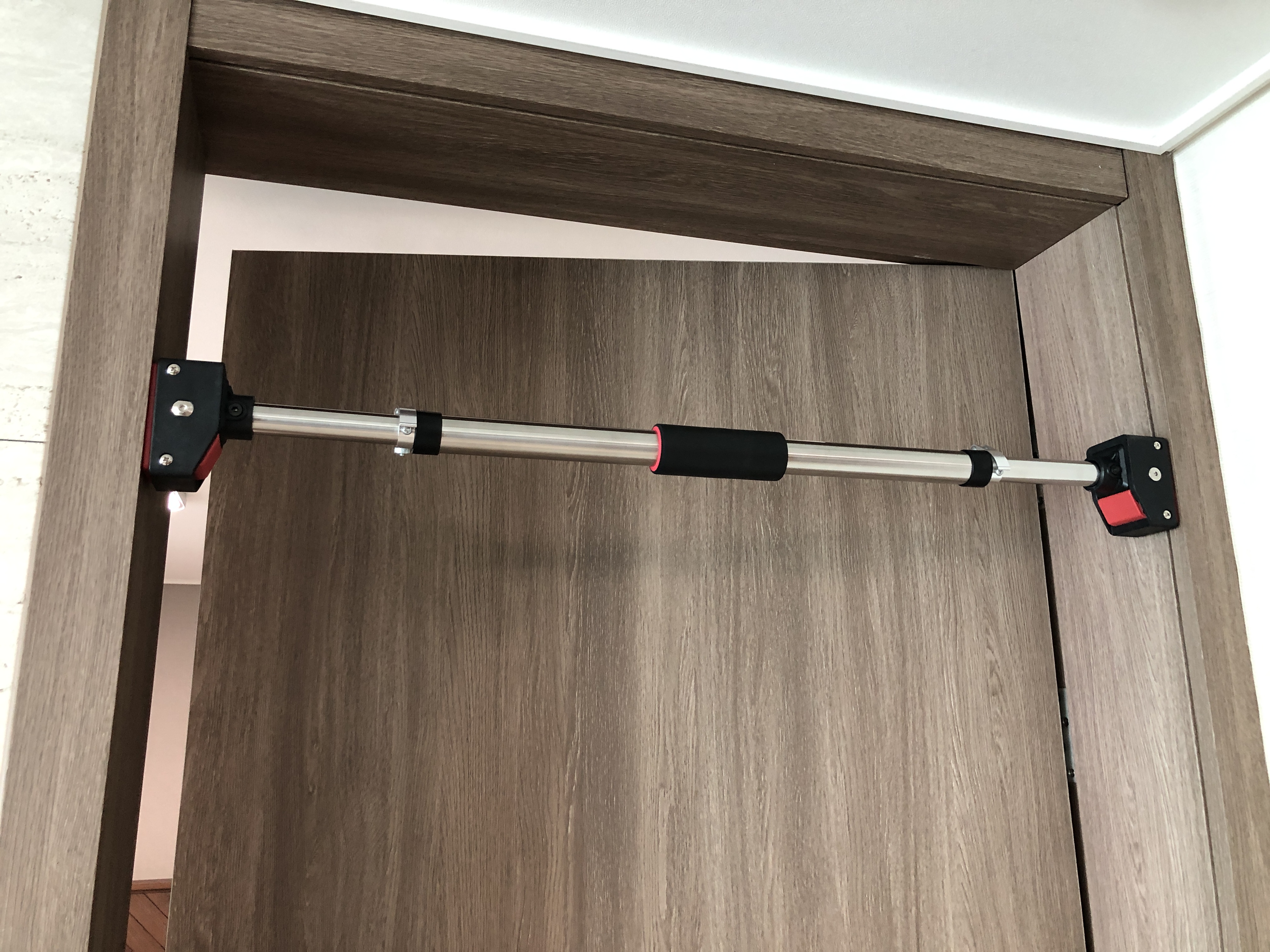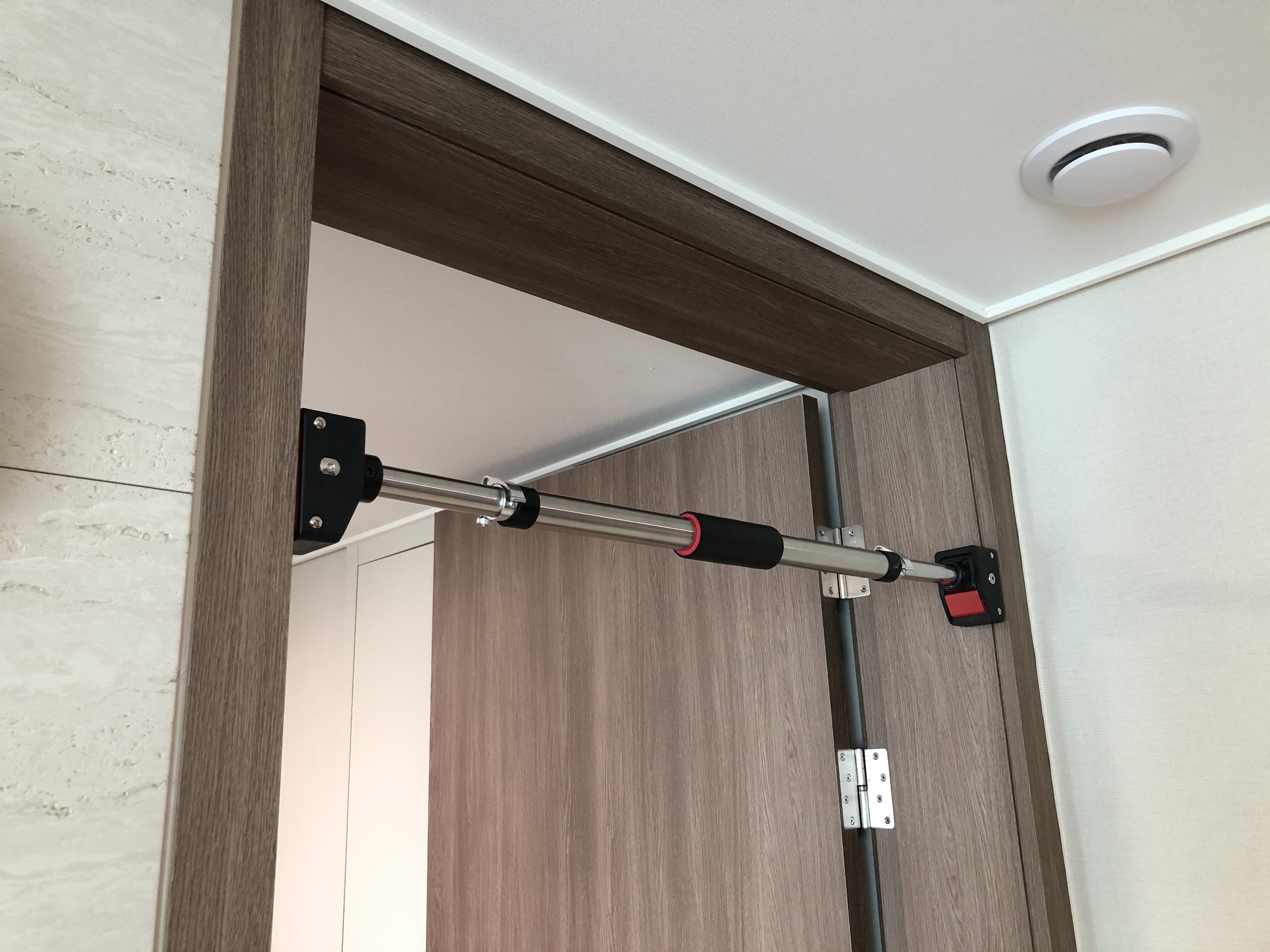 문틀 길이에 너무 딱 맞게 옵션을 선택하면 최대하중이 낮아지기 때문에 안정감이 떨어질 수 있습니다. 사실 저도 체조 선수처럼 앞뒤로 흔들고 놀다가 철봉이 문틀에서 한번 떨어진 적이 있습니다. 다행히 큰 부상은 없었지만 많이 다칠 수도 있으니 너무 위험한 행동은 안 하는 게 좋을 것 같습니다.