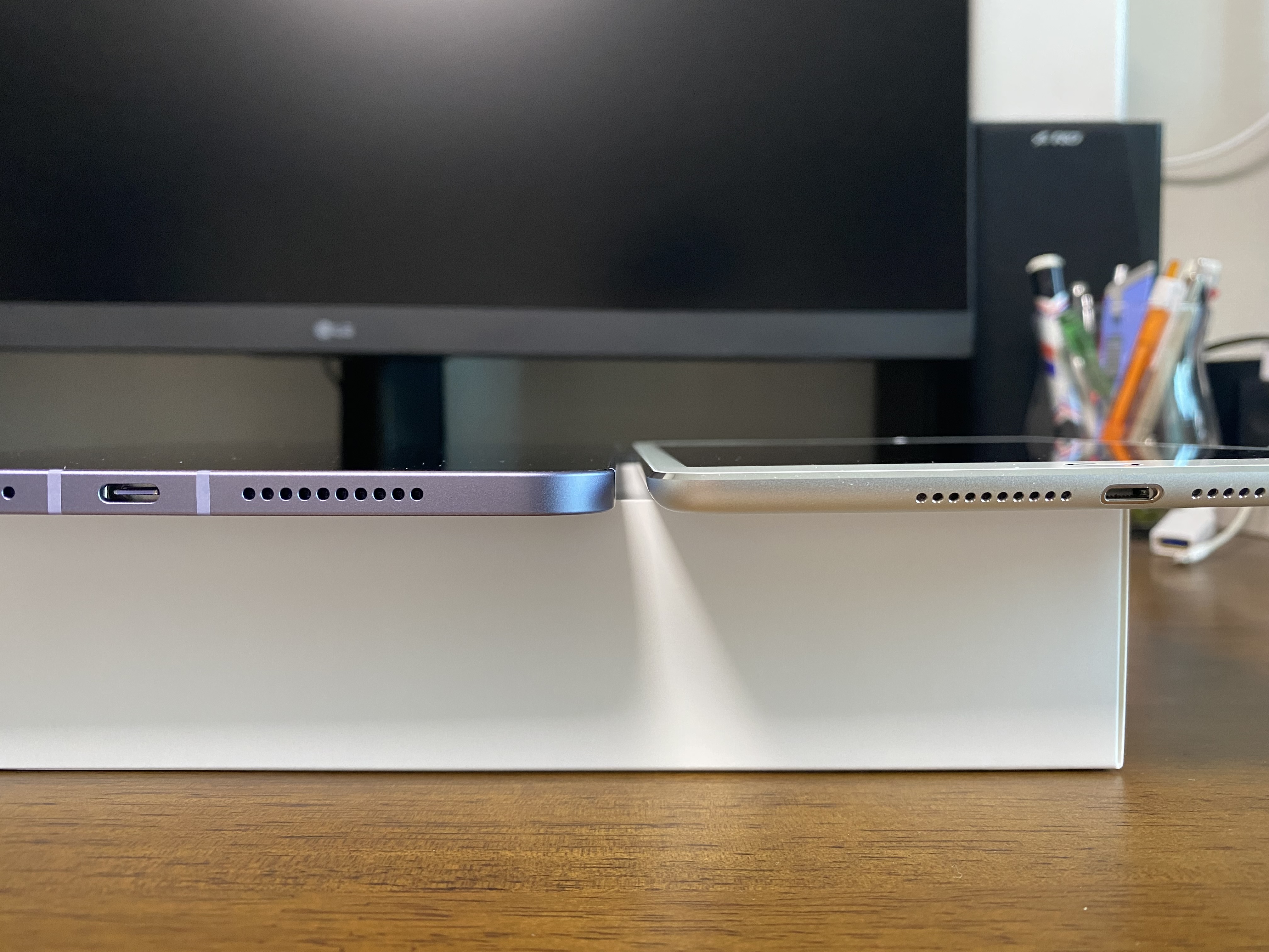 기존 아이패드 미니보다 기기 세로 사이즈는 줄었는데 화면크기는 세로가 많이 길어졌습니다. 찾아보니 화면 사이즈가 7.9인치(미니4)에서 8.3인치(미니6)로 커졌다고 합니다.