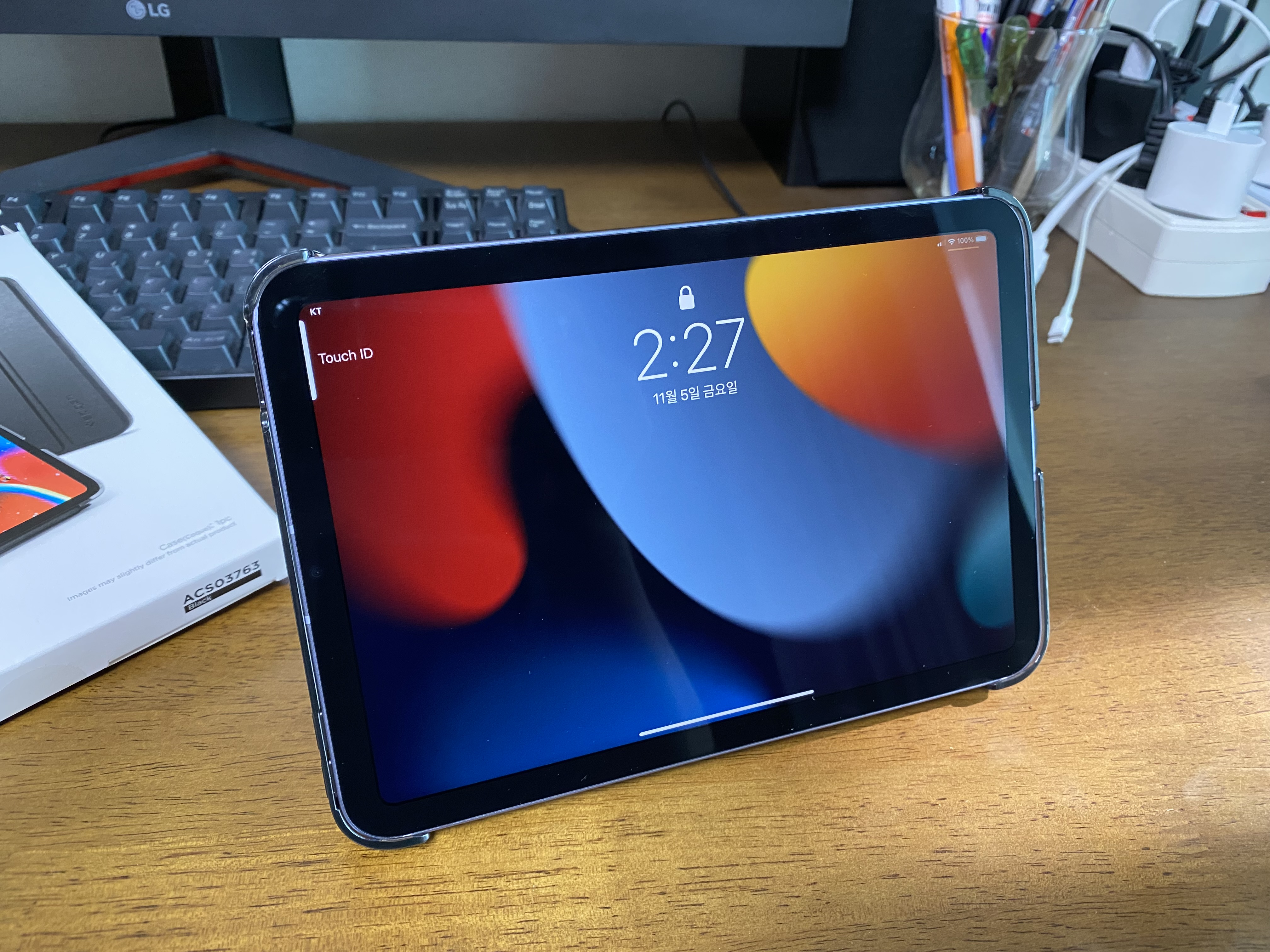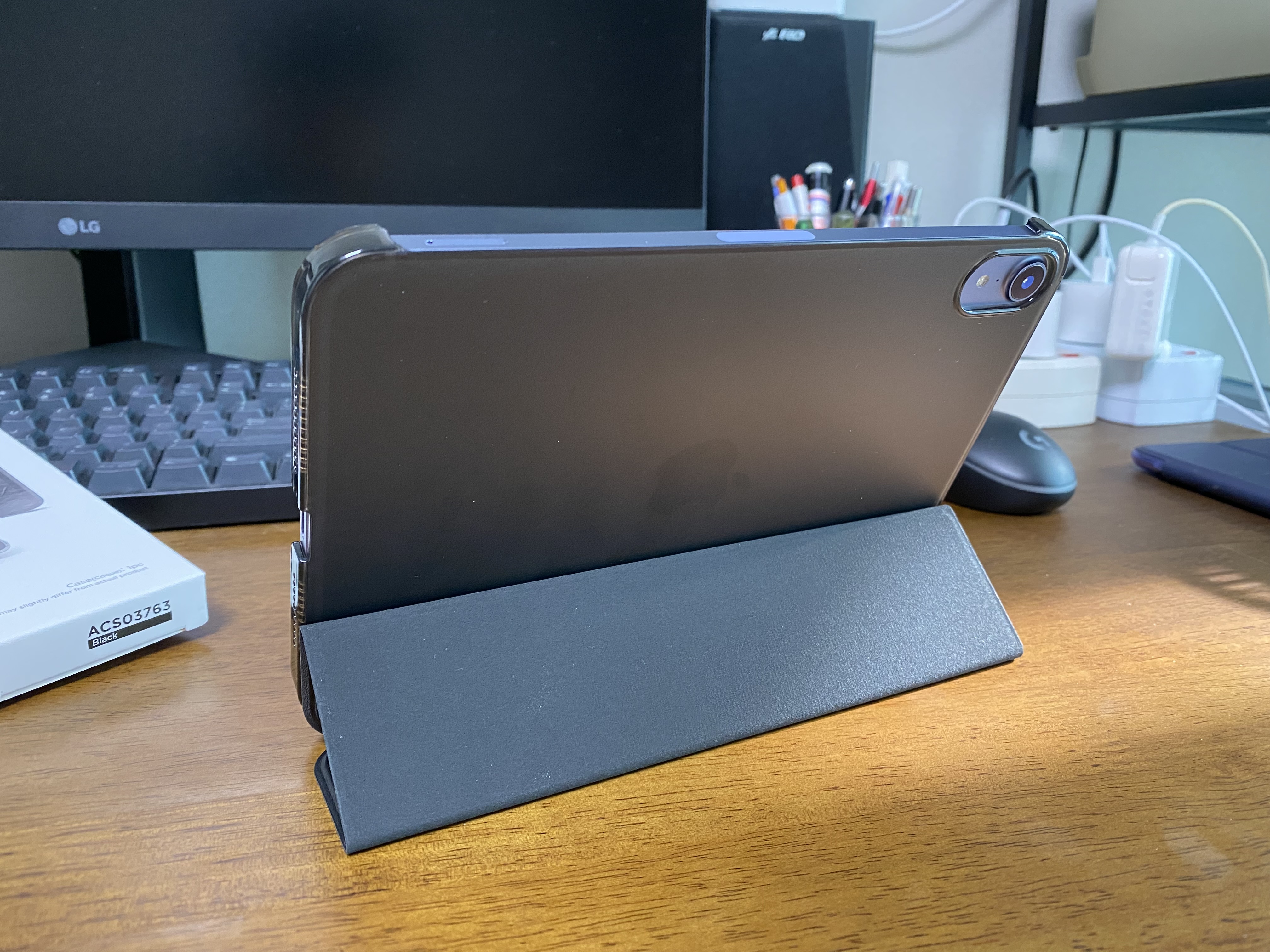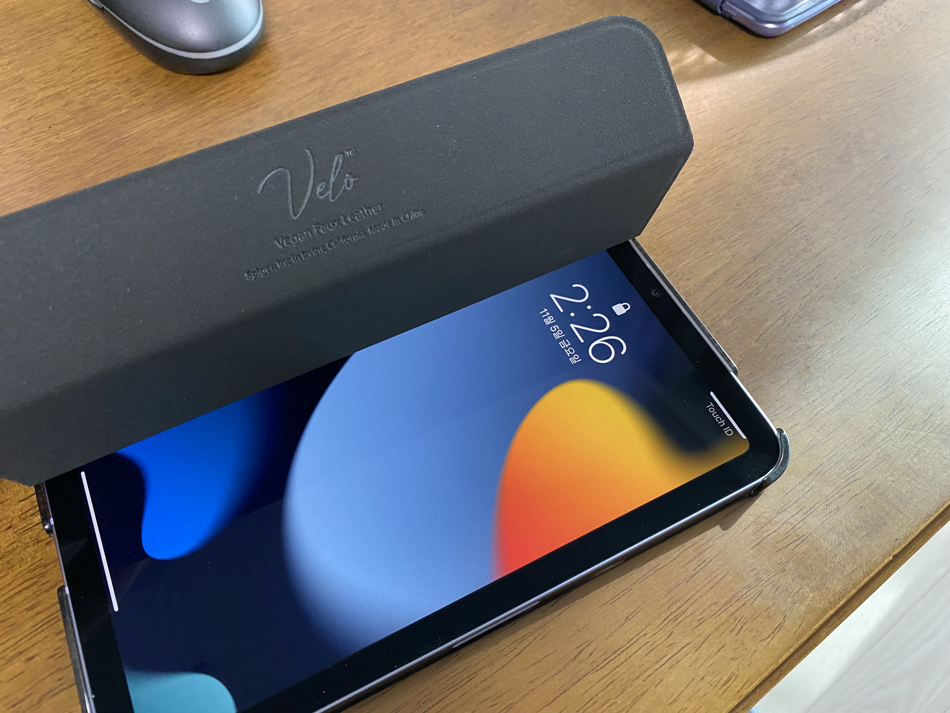 슈피겐 케이스로 아이패드 미니6을 거치한 모습입니다. 영상 볼 때 괜찮은 기울기입니다.