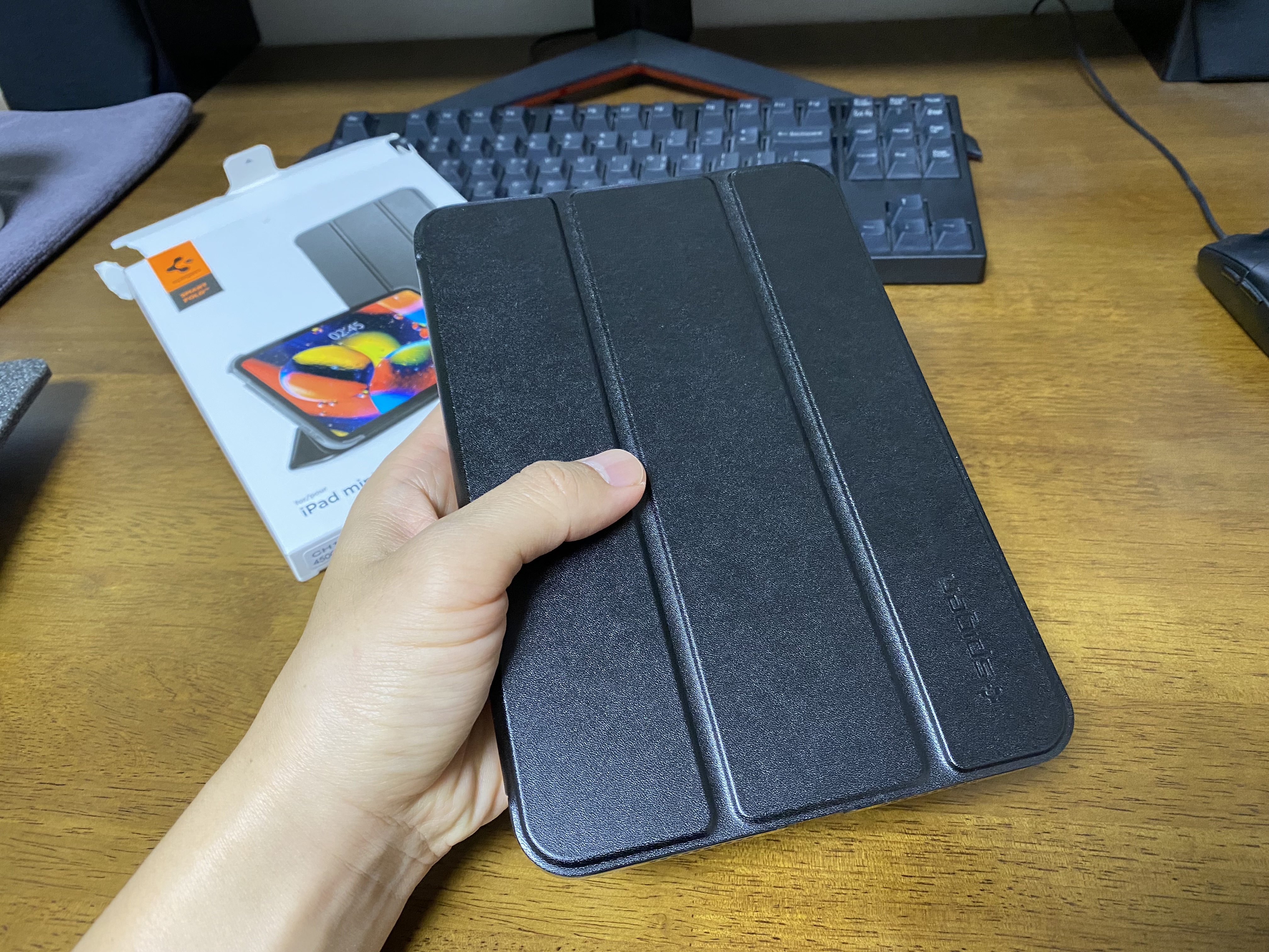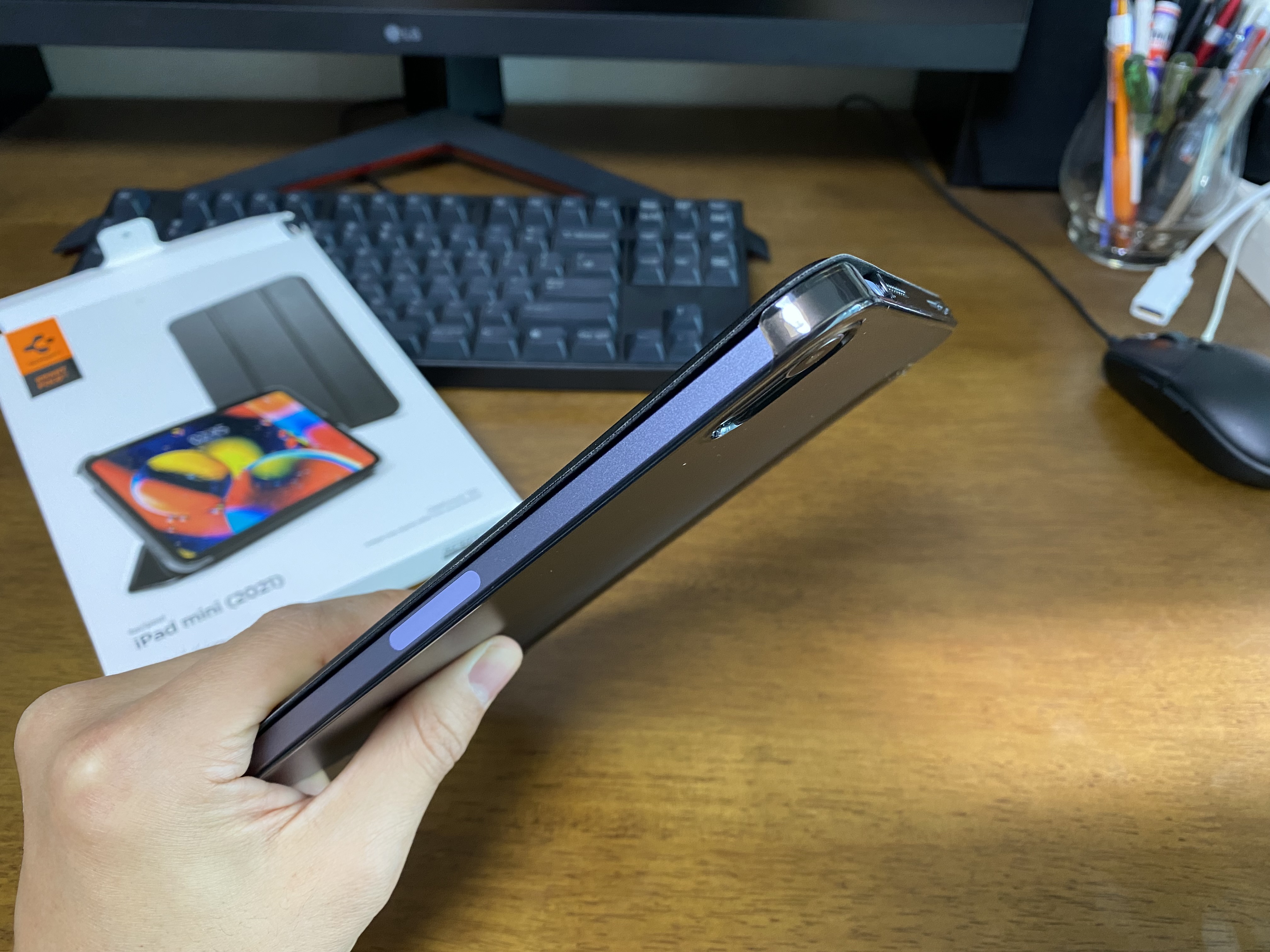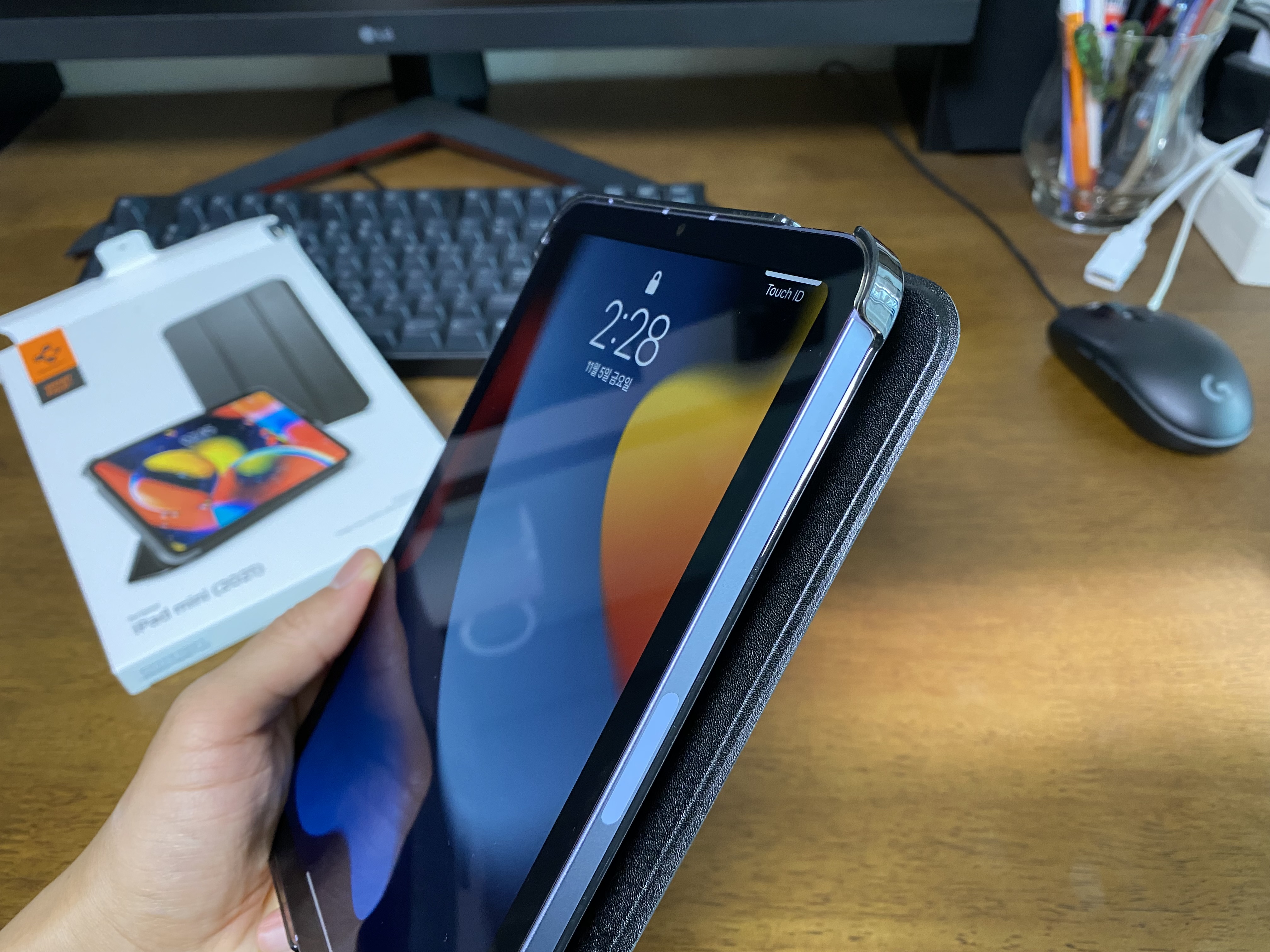 슈피겐 케이스에 아이패드 미니6을 장착한 모습