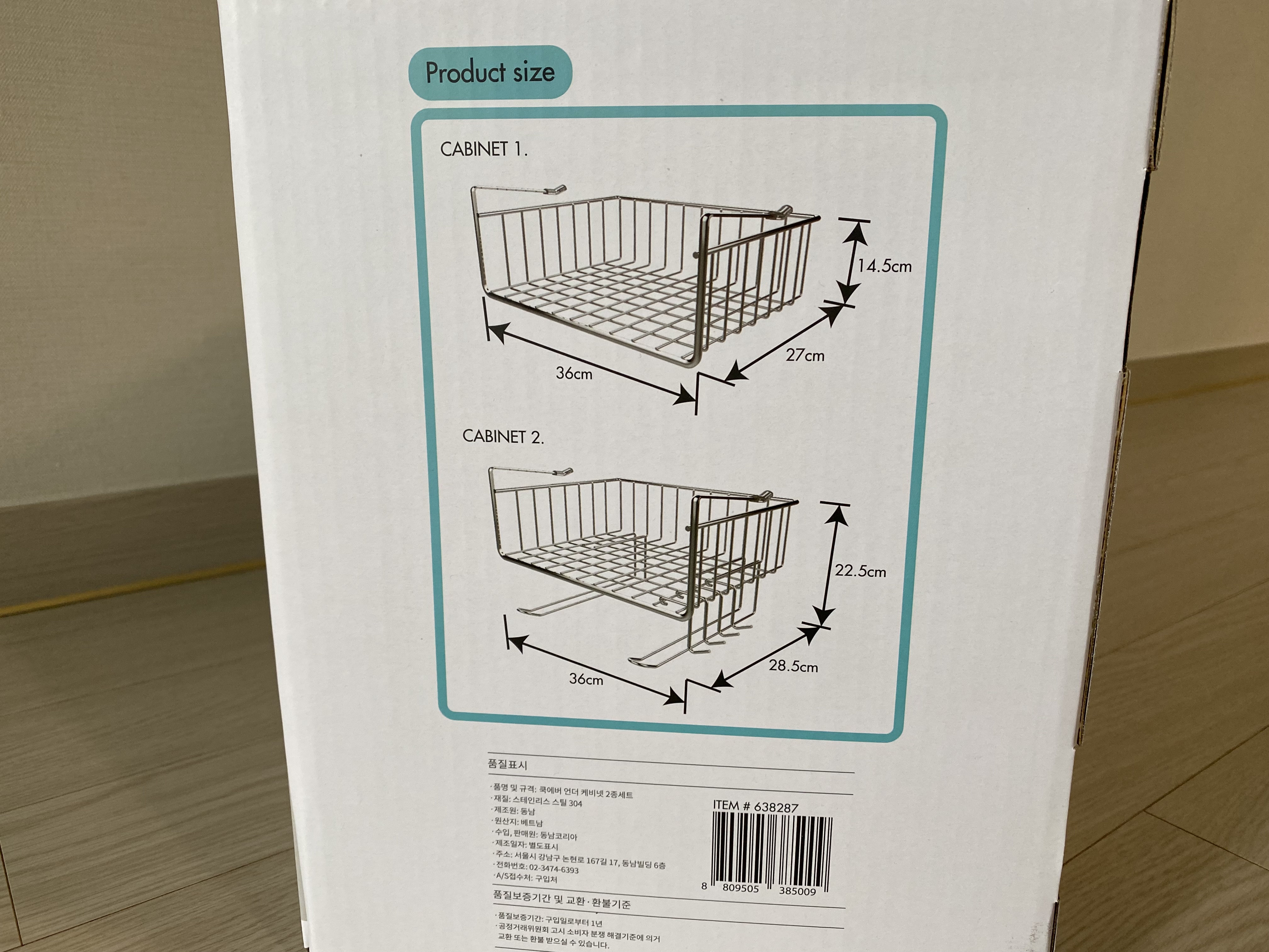 쿡에버 키친 언더 캐비넷은 2종류의 바구니를 포함합니다. 위 사진처럼 밑에 고리가 있는 제품과 없는 제품이 있습니다. 넓이는 같고 깊이와 높이에 약간 차이가 있습니다.