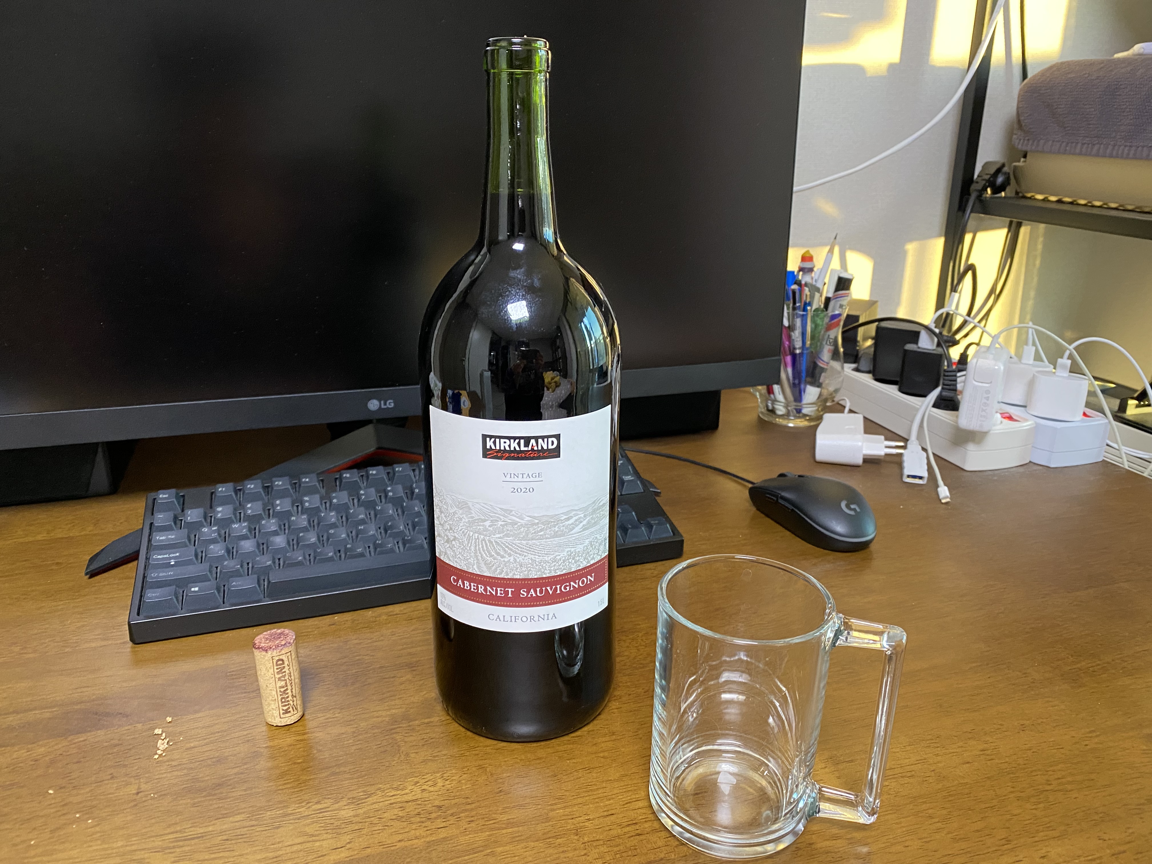 이것이 바로 '코스트코 커클랜드 시그니춰 캘리포니아 까베르네 쇼비뇽'입니다. 1.5L가 생각보다 많이 크네요. 너무 길어 냉장고에 세워서 넣긴 힘들고 누워서 보관해야 합니다. 보통 와인은 코르크 마개가 건조해지는 것을 막기 위해 눕혀서 보관한다고 하네요. (와인책에서 주서들은 상식) 와인이 취향에 맞으면 와인렉이나 와인 냉장고도 한번 알아볼까 합니다.