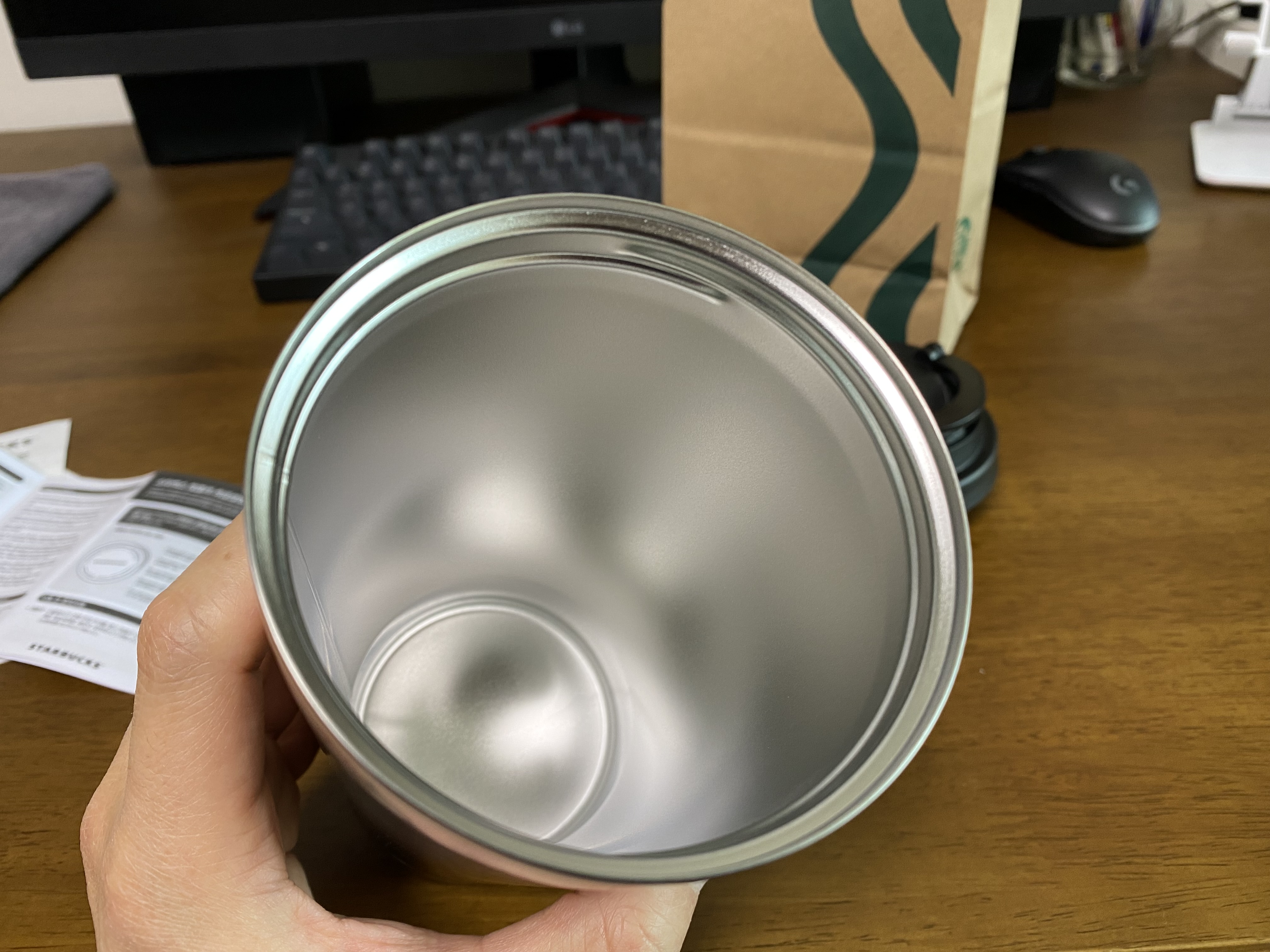 바닥을 보면 텀블러 사이즈와 스타벅스 로고를 확인할 수 있습니다.