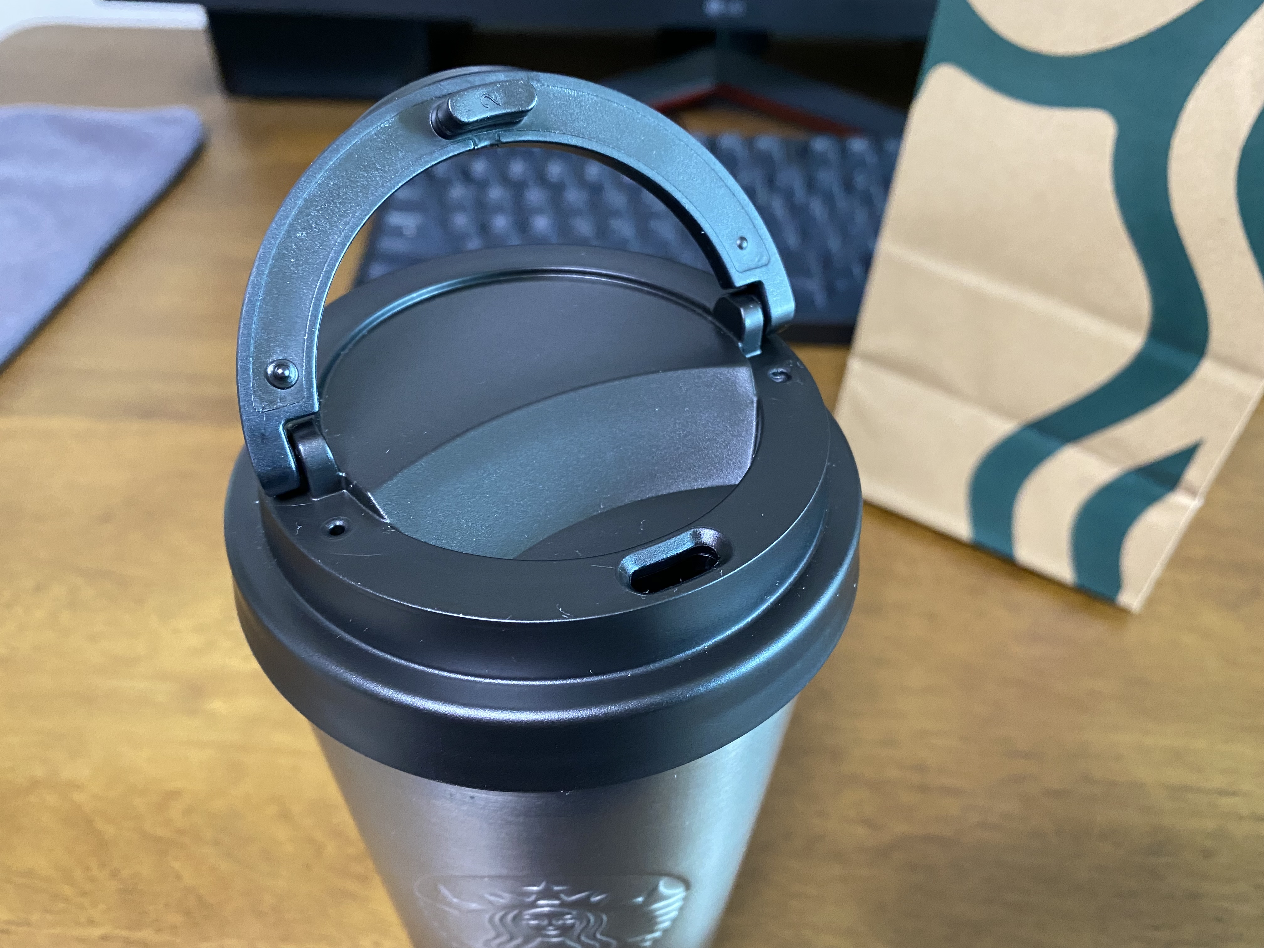 다시 구매한 스타벅스 SS 엘마 블랙 텀블러. 이거에 너무 익숙해져서 그런지 다른 걸 구매할 생각이 안 드네요. 스타벅스에서 가장 무난하고 괜찮은 텀블러라 생각합니다.