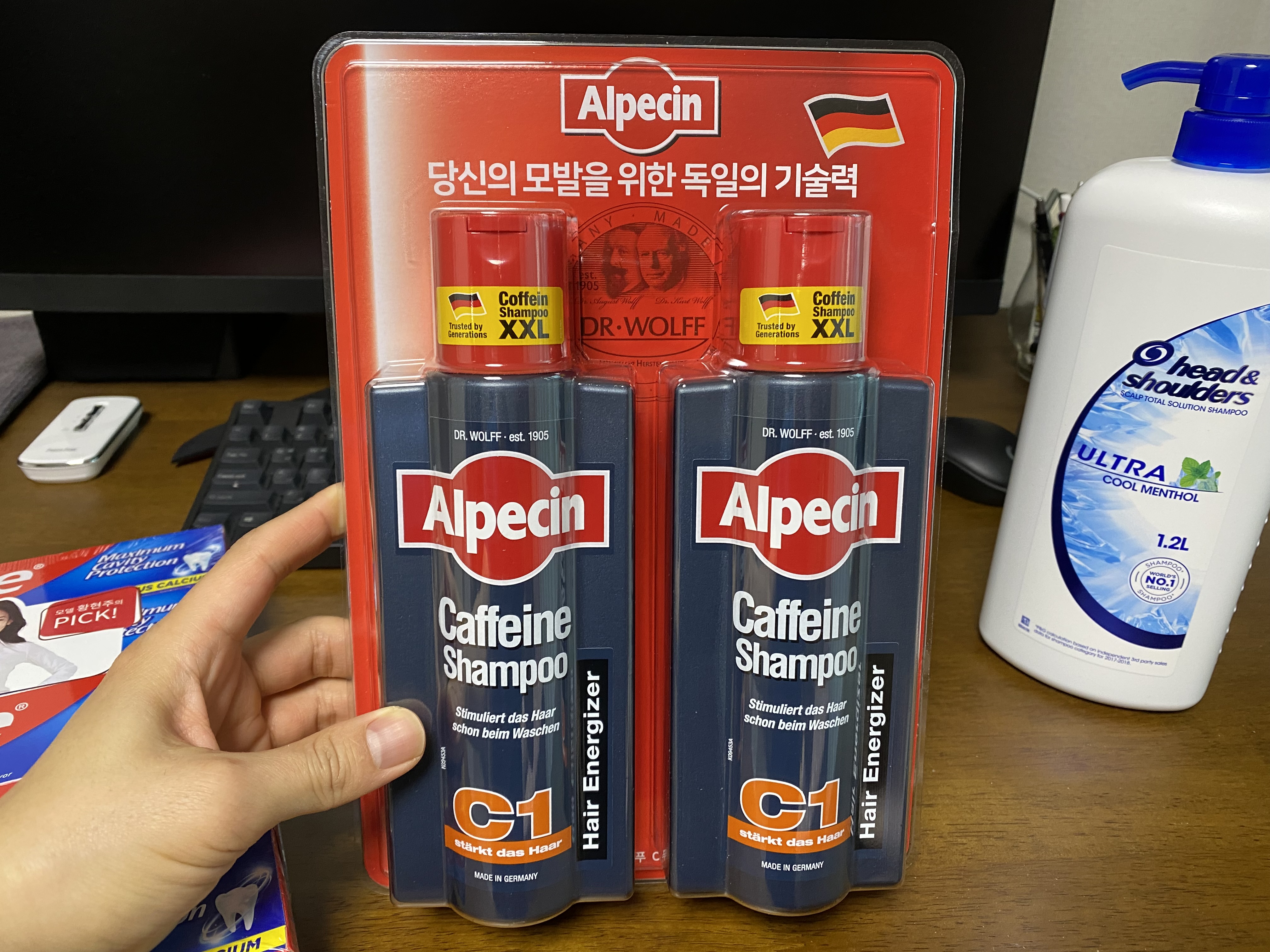 알페신 카페인 샴푸 말고도 콜게이트 치약, 헤드엔숄더 샴푸도 함께 구매했습니다.