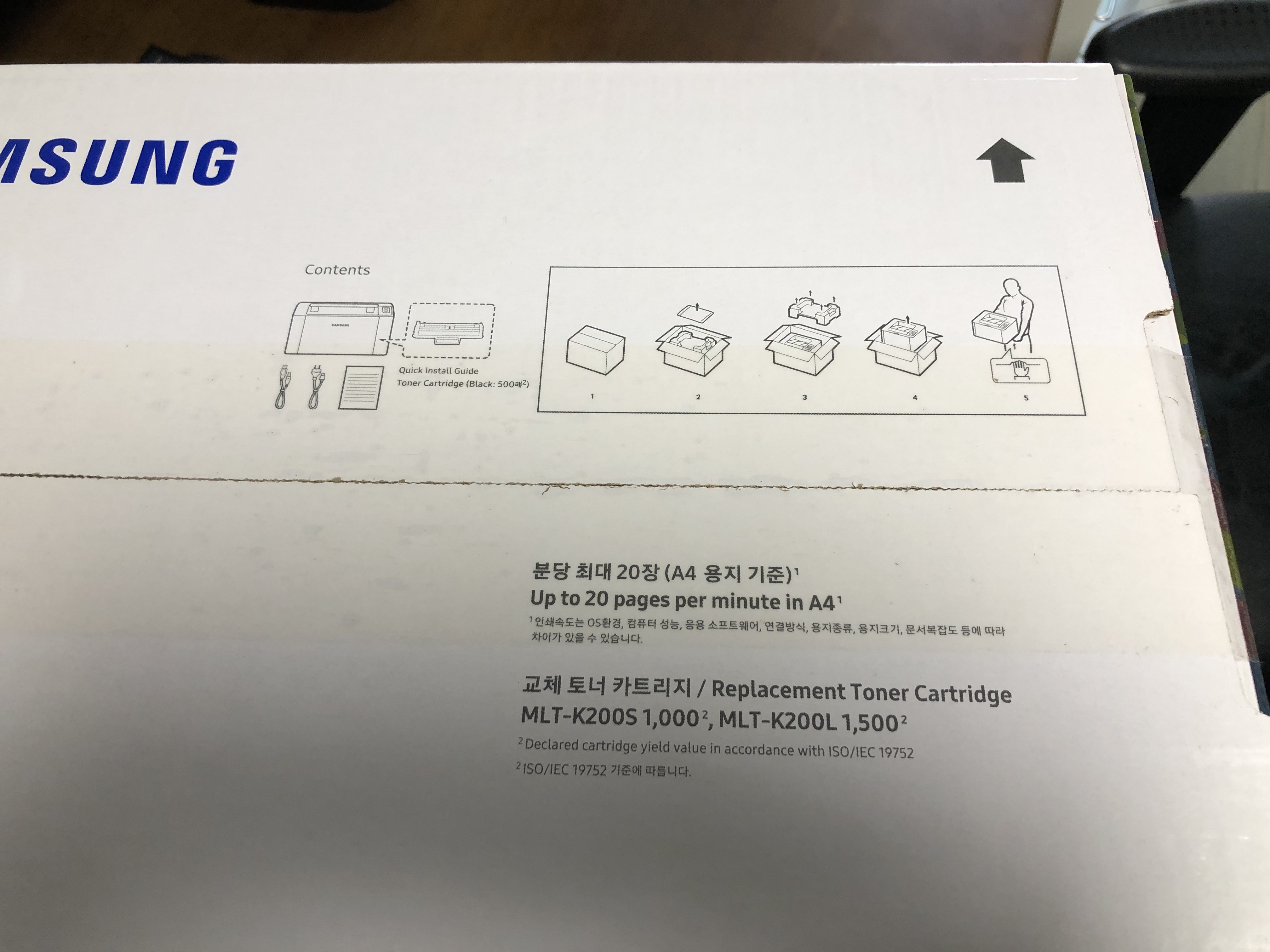 교체 토너 카트리지는 MLT-K200S, MLT-K200L 입니다. S보다 L이 용량이 많고 비싼 토너입니다.