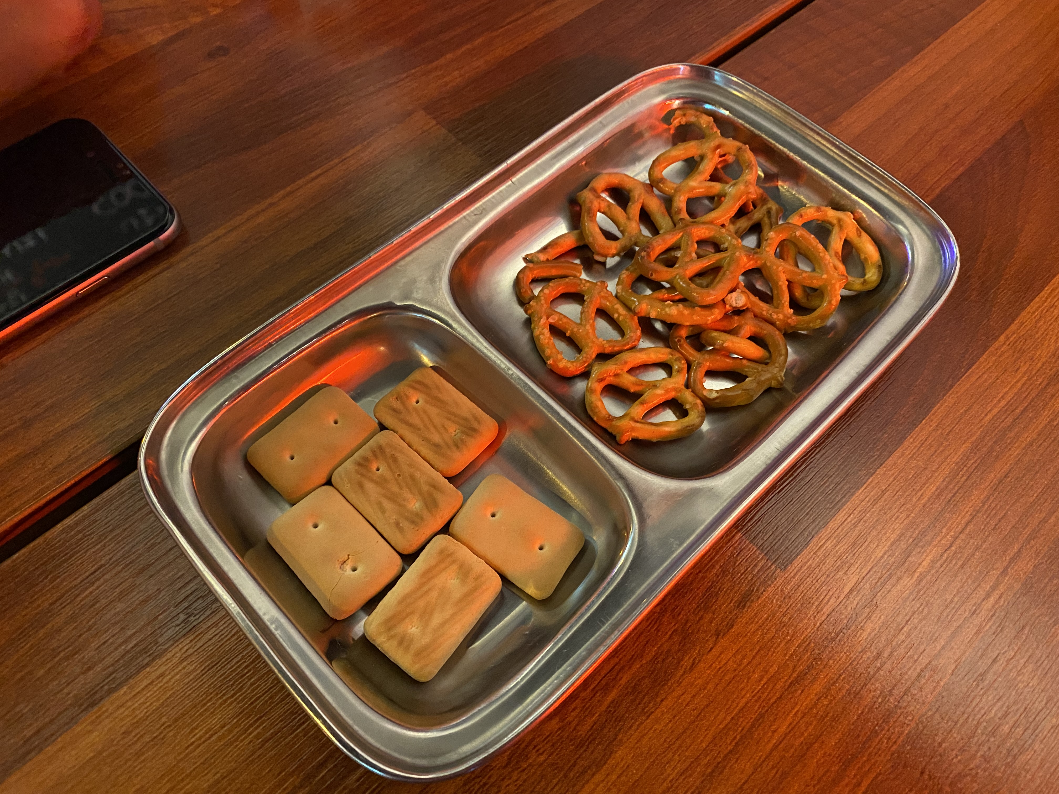 수제맥주집 연산점의 기본 안주. 건빵과 프레첼이 나옵니다.