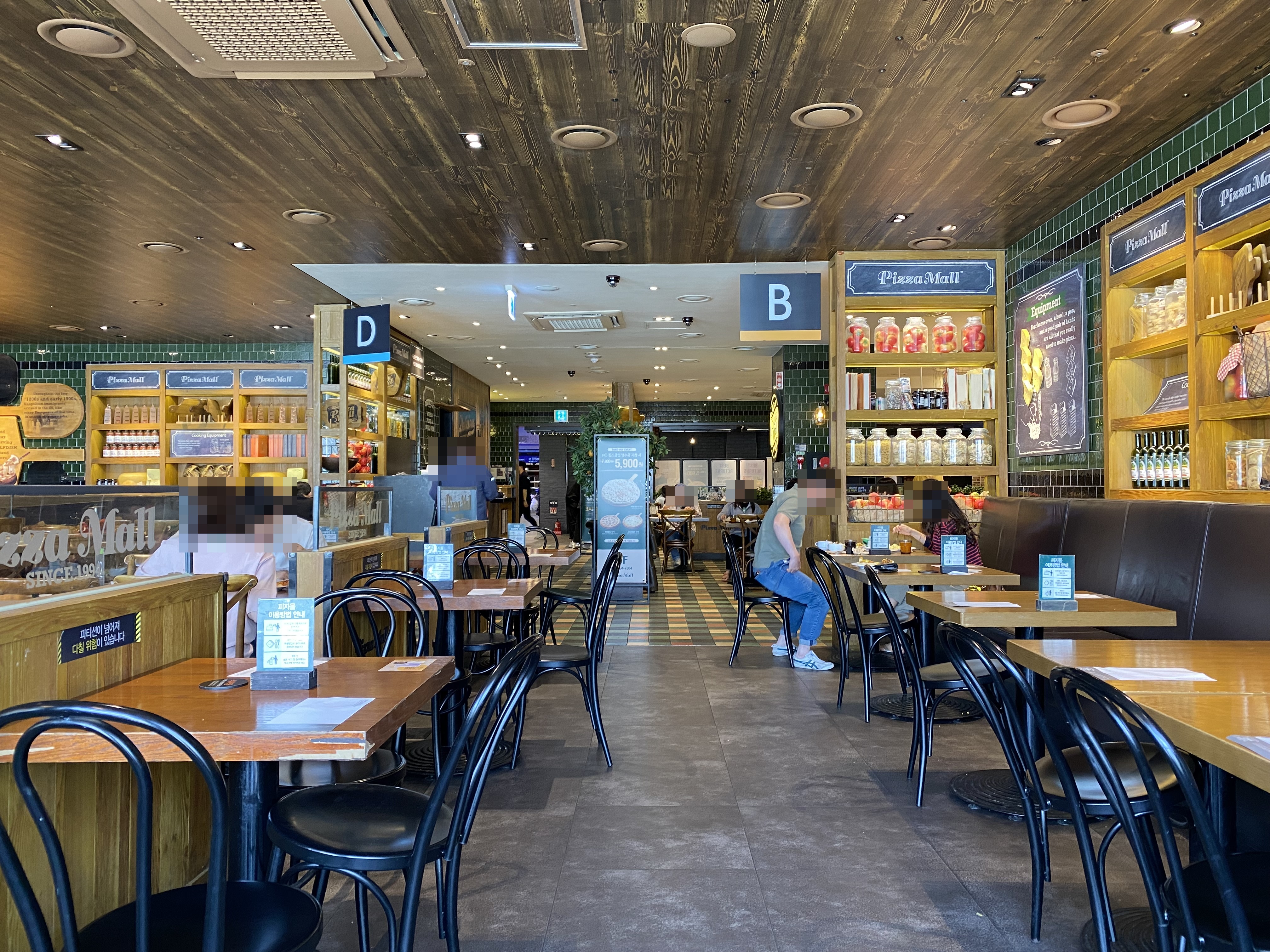 매장이 그리 작지 않아서 평일에는 나름 편안하게 이용할 수 있습니다. 점심시간을 피한다면 보다 널널하게 이용할 수 있겠습니다. 저는 기분 좋게 창가 자리에 앉아서 피자를 즐겼습니다. ㅎㅎ