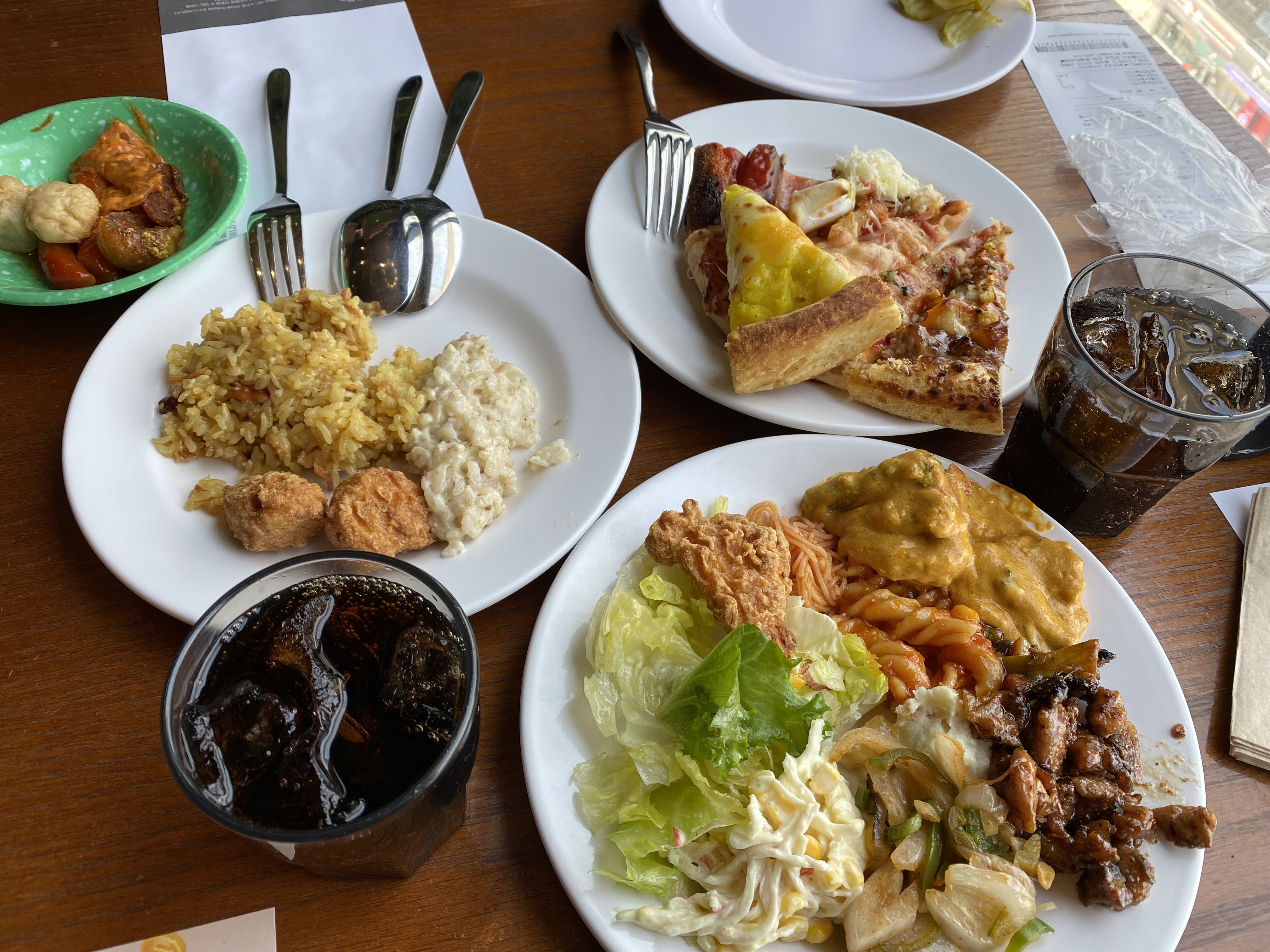 느끼한 서양식을 좋아해서 여기 완전 제 취향이네요. 다양한 피자 뿐만 아니라 샐러드, 치킨 같은 것도 있습니다. 그리고 콜라, 커피도 추가 요금 없이 이용할 수 있습니다.