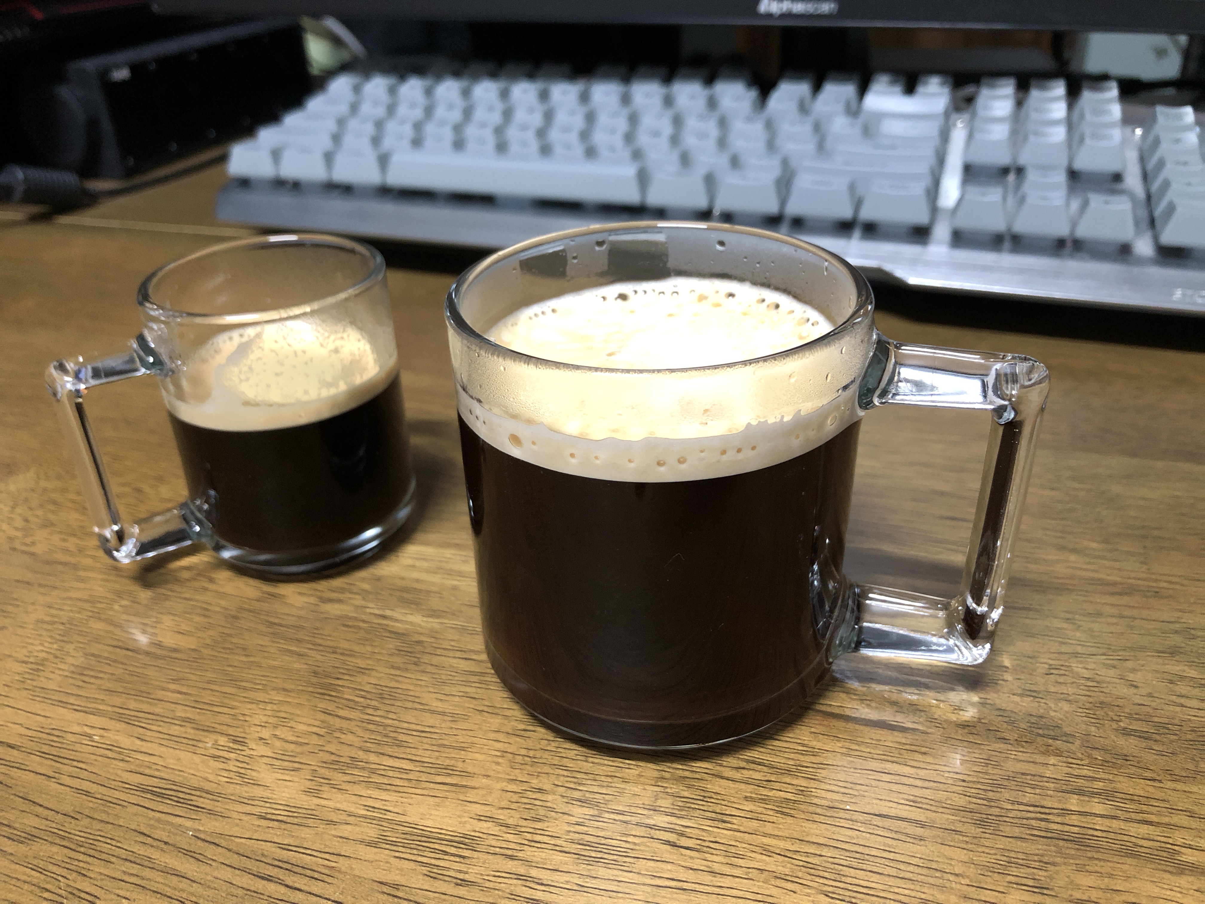 220ml 루미낙 유리컵으로 아메리카노를 만드는 모습