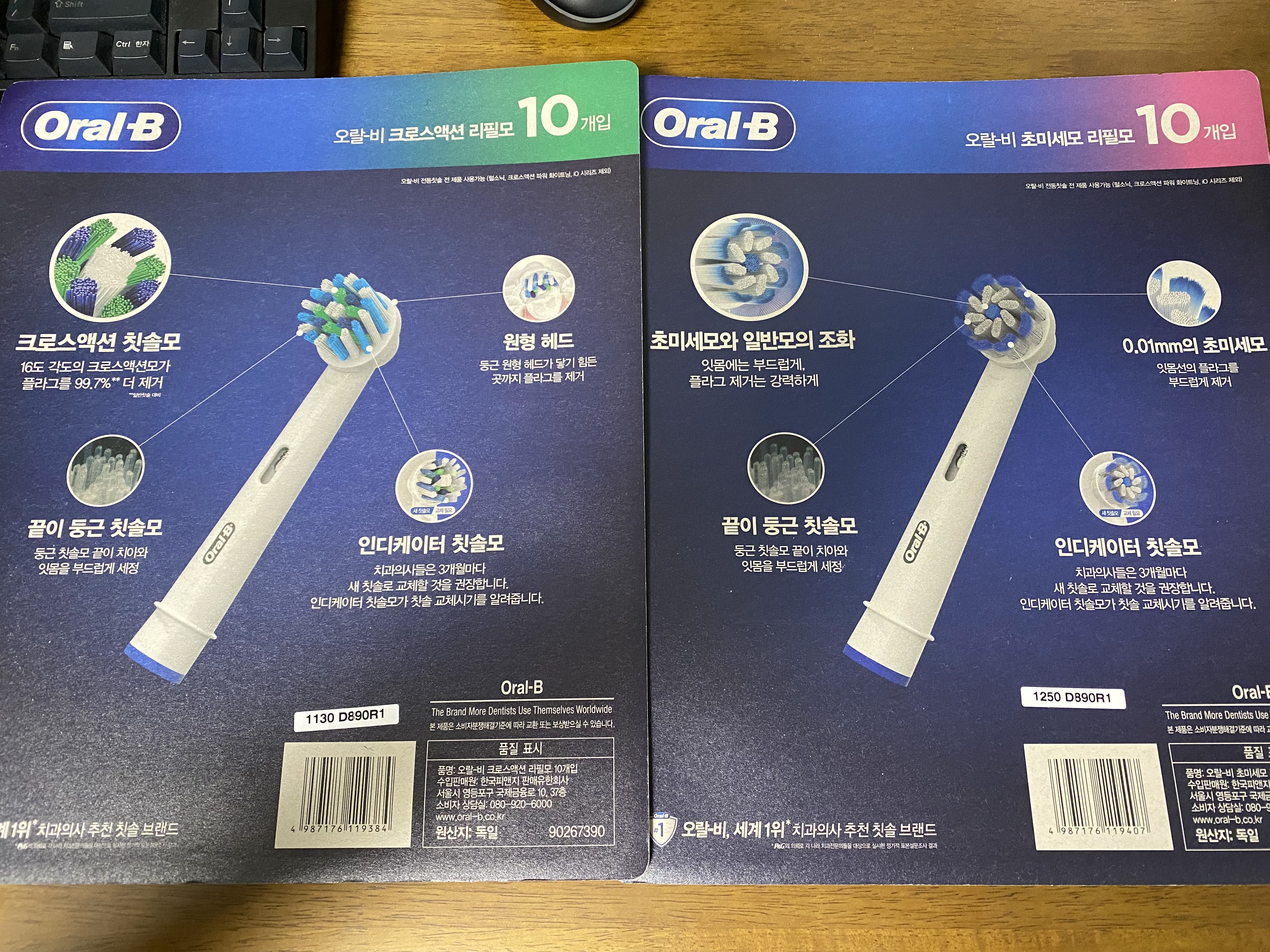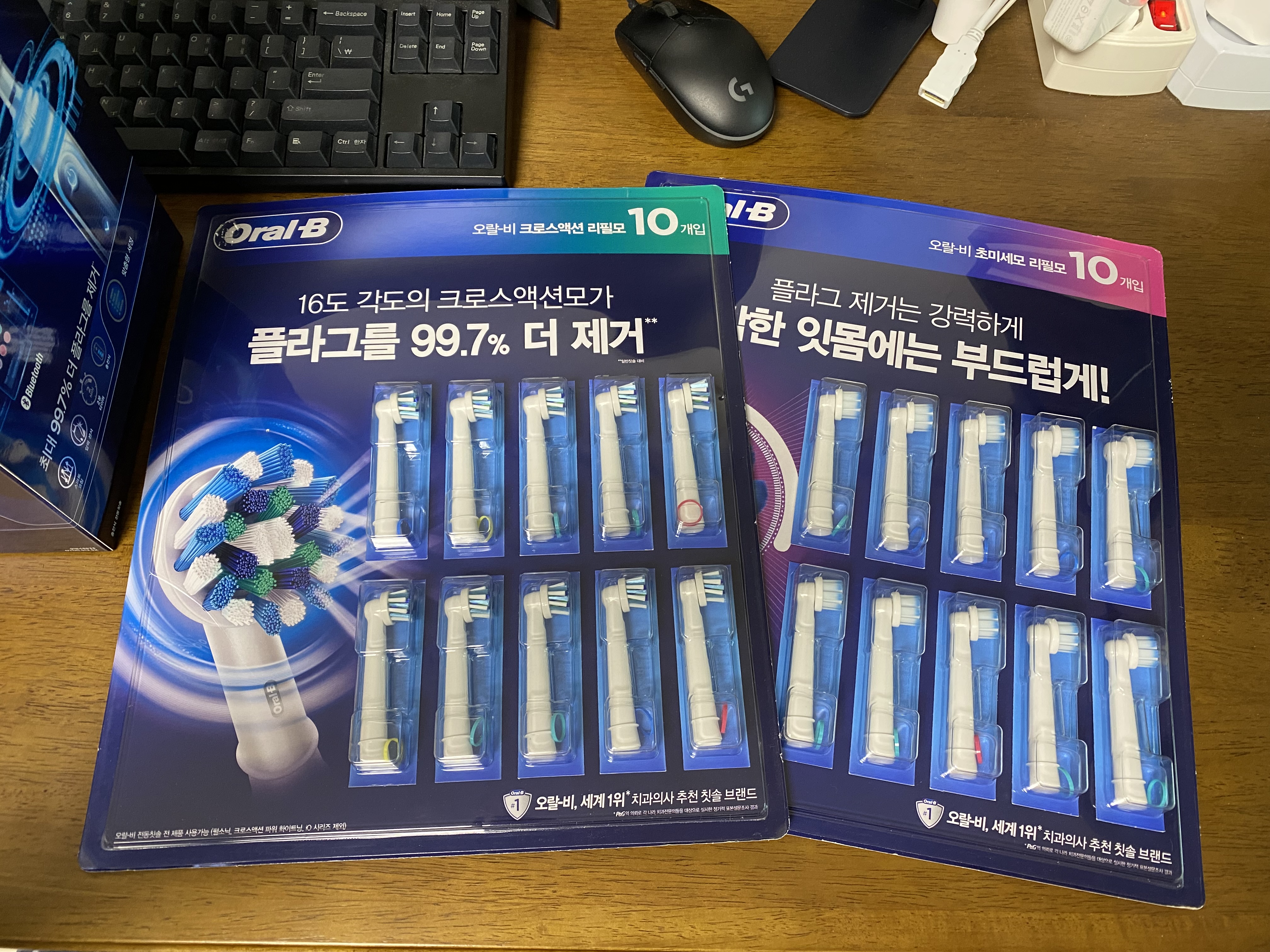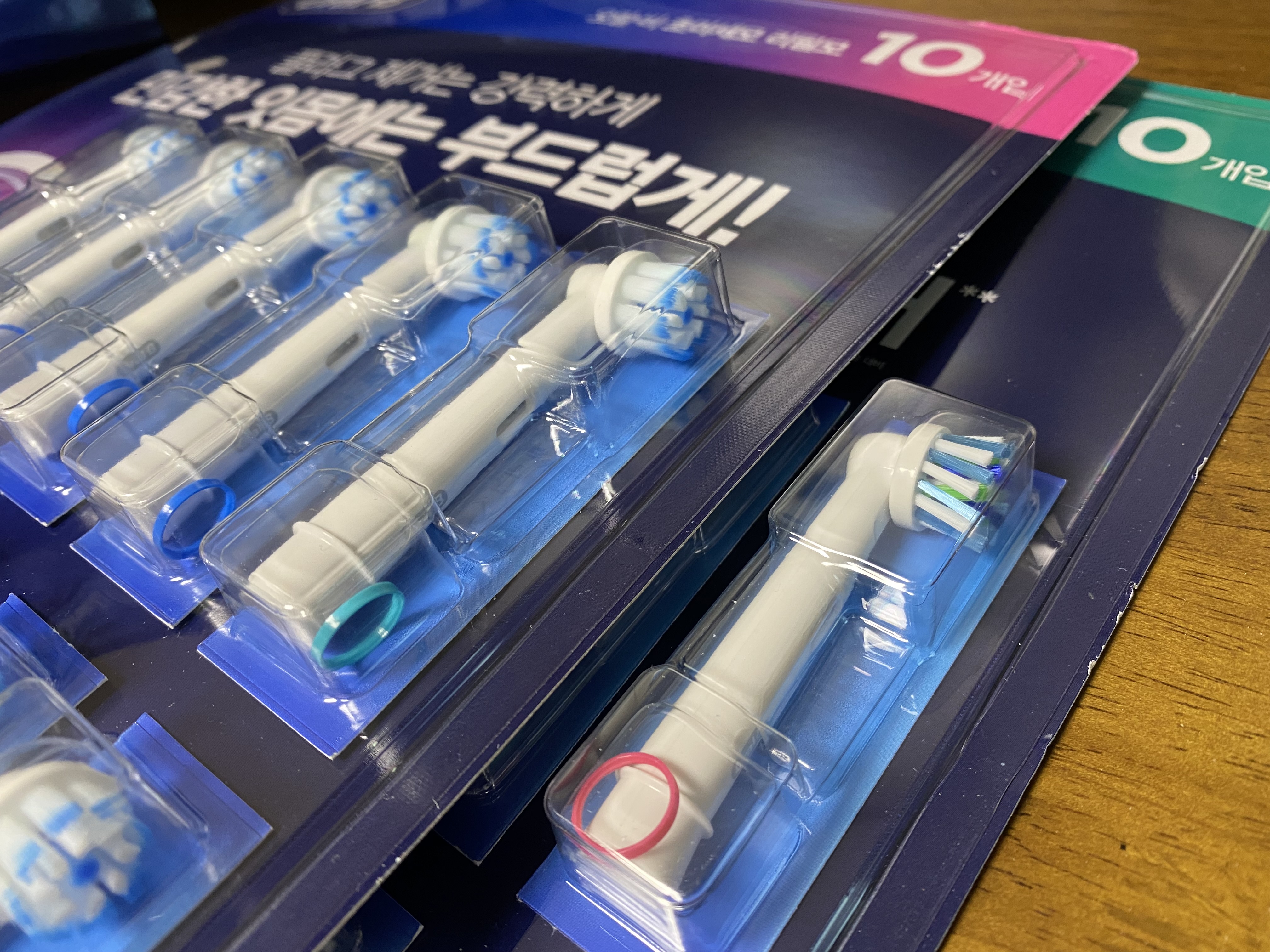 할인할 때 리필모도 많이 샀습니다. 계산을 해보니 칫솔모 하나가 대략 4000원 정도 하네요. 일반 칫솔보다는 많이 비싸다는 것을 알 수 있습니다.