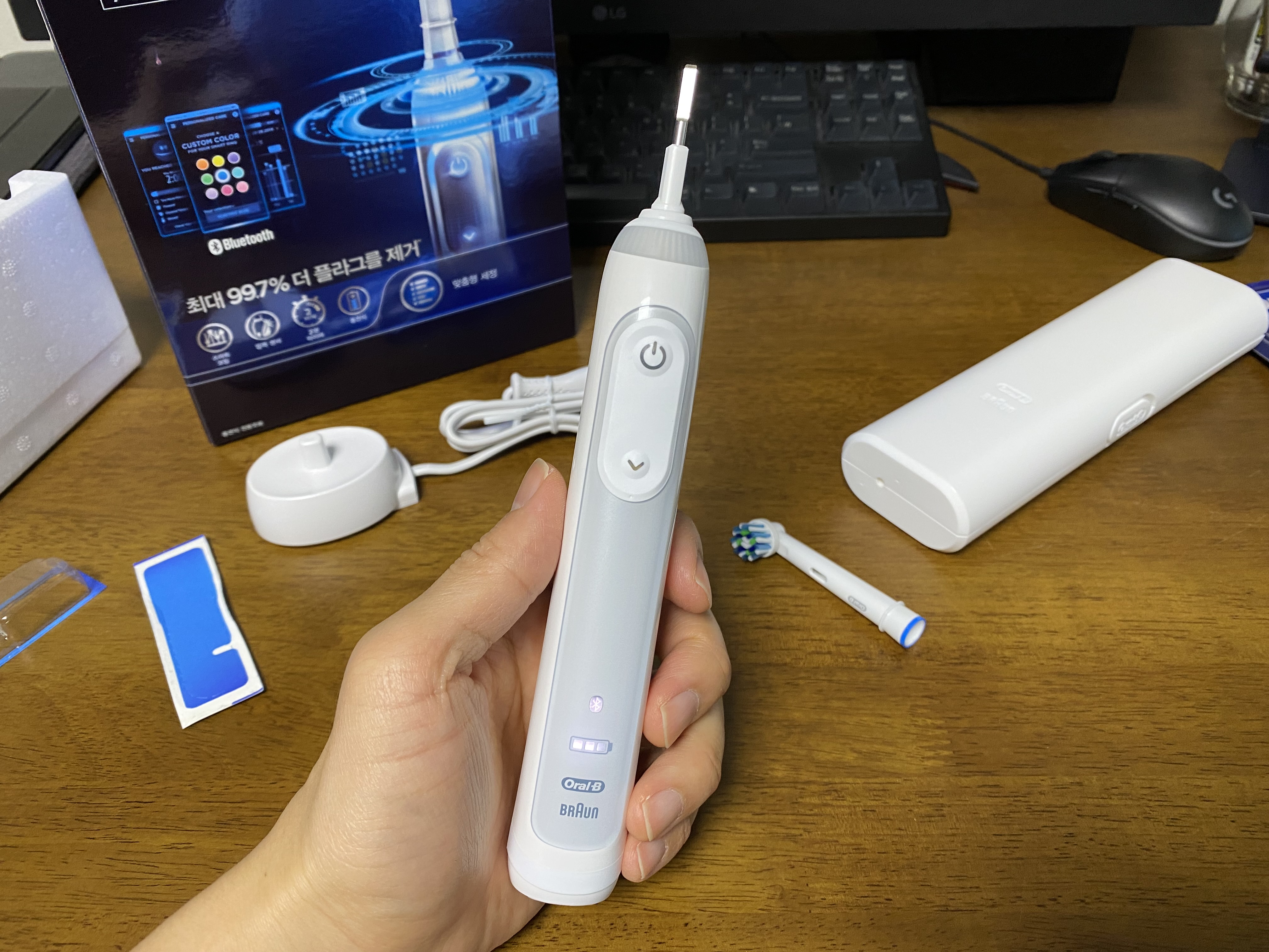 ORAL-B 오랄비 전동칫솔 GENIUS S7500. 정말 추천하고 싶은 제품입니다. 사실 이 제품보다 저렴한 걸 구매하는 것도 좋습니다. 블루투스 같은 기능은 있어도 저는 잘 안 써요. 인터넷에 찾아보면 더 저렴한 제품도 있으니 잘 알아보고 구매하세요. 근데 오랄비도 종류가 너무 많아서... 후기 많고 별점 좋은 걸로 잘 찾아보세요. 딴 건 모르겠고 무선충전에 강약 조절만 잘 되는 제품이면 오케이입니다. 써보고 좋으면 그때 가서 더 좋은 거 사면되지요.