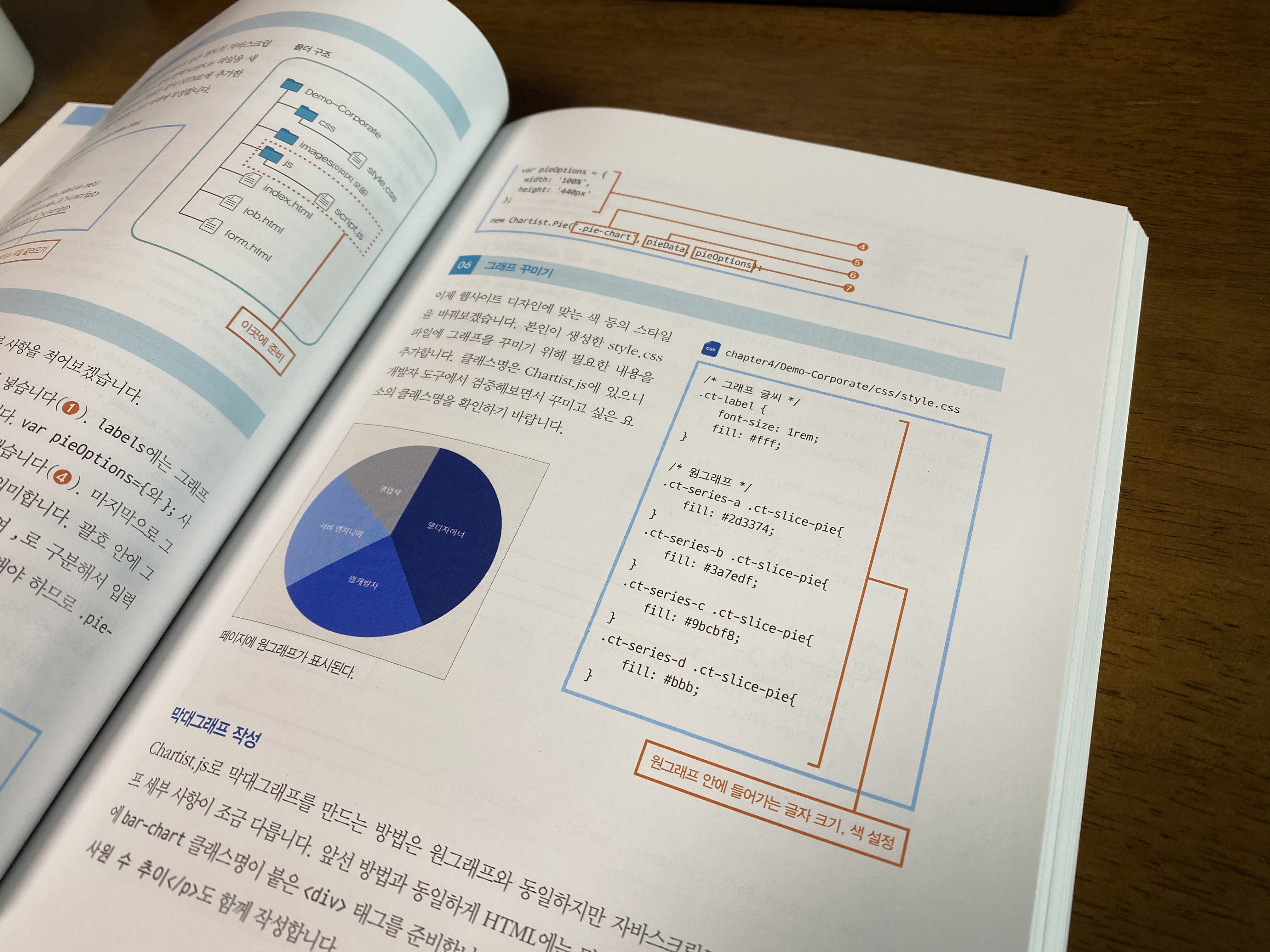이 책은 많은 내용을 다루기 때문에 핵심 코드만 딱 설명하는 구조입니다. 어느 정도 HTML, CSS를 아는 사람이라면 만족할 것이고 정말 초보는 조금 어려울 수도 있습니다.