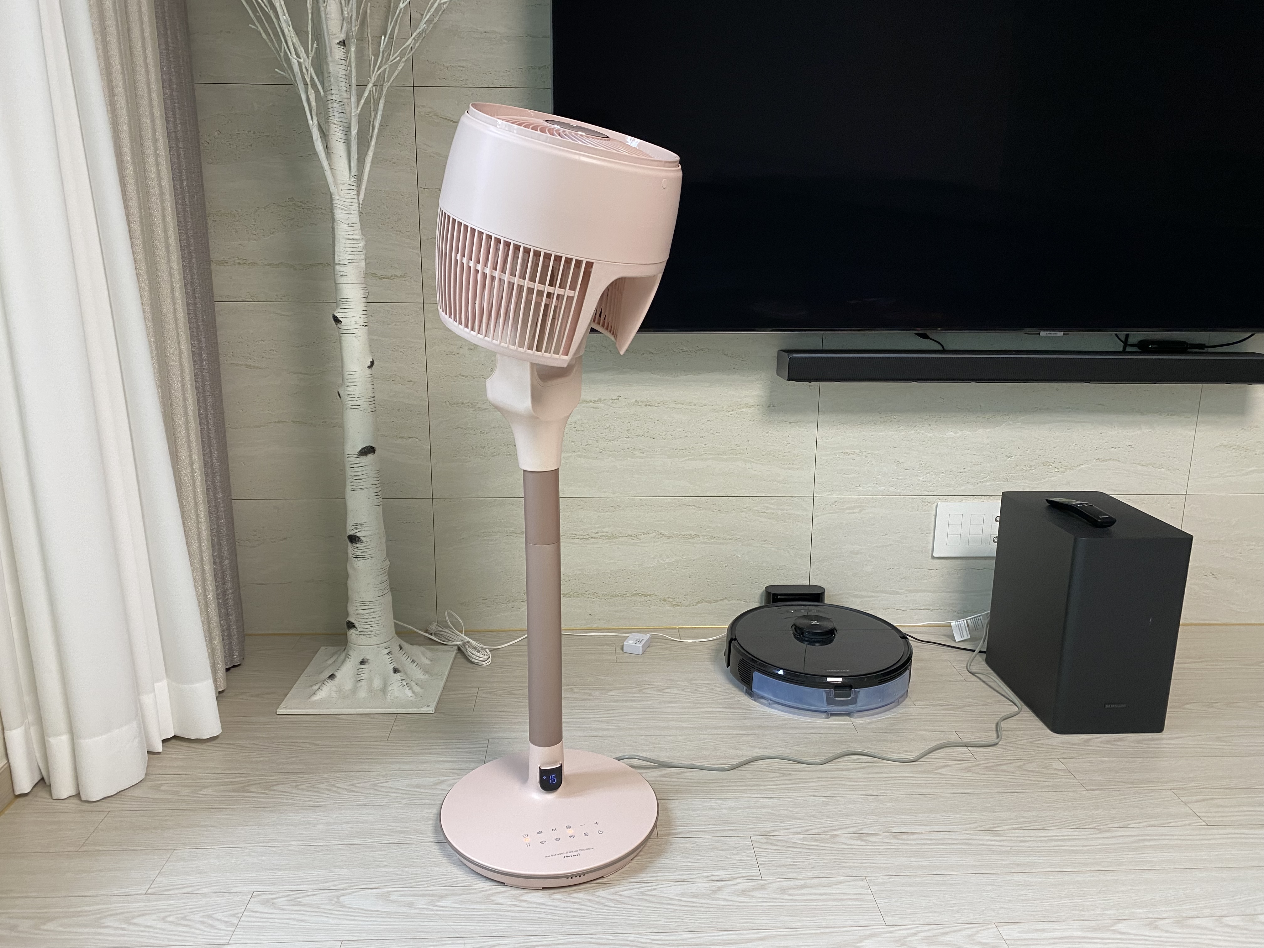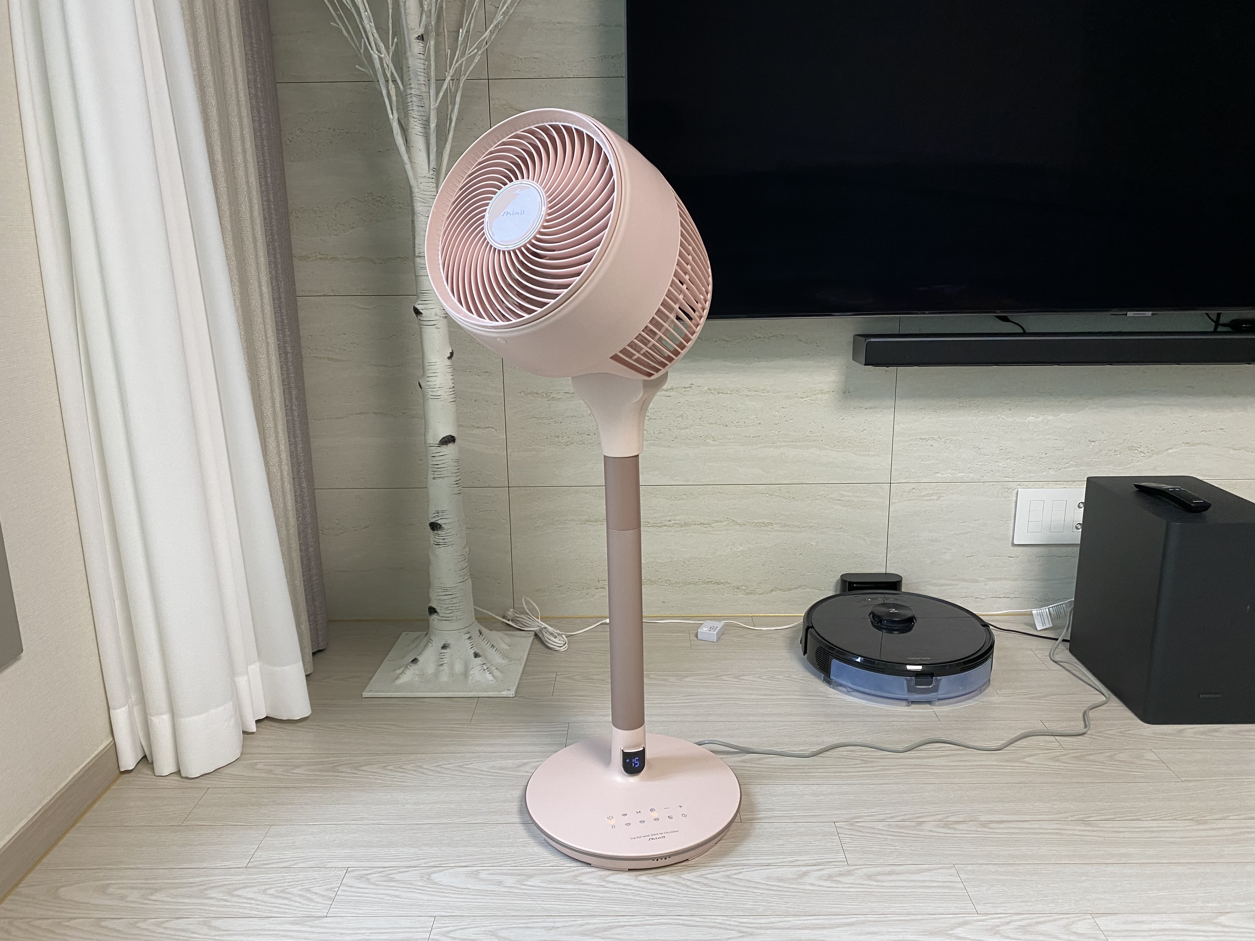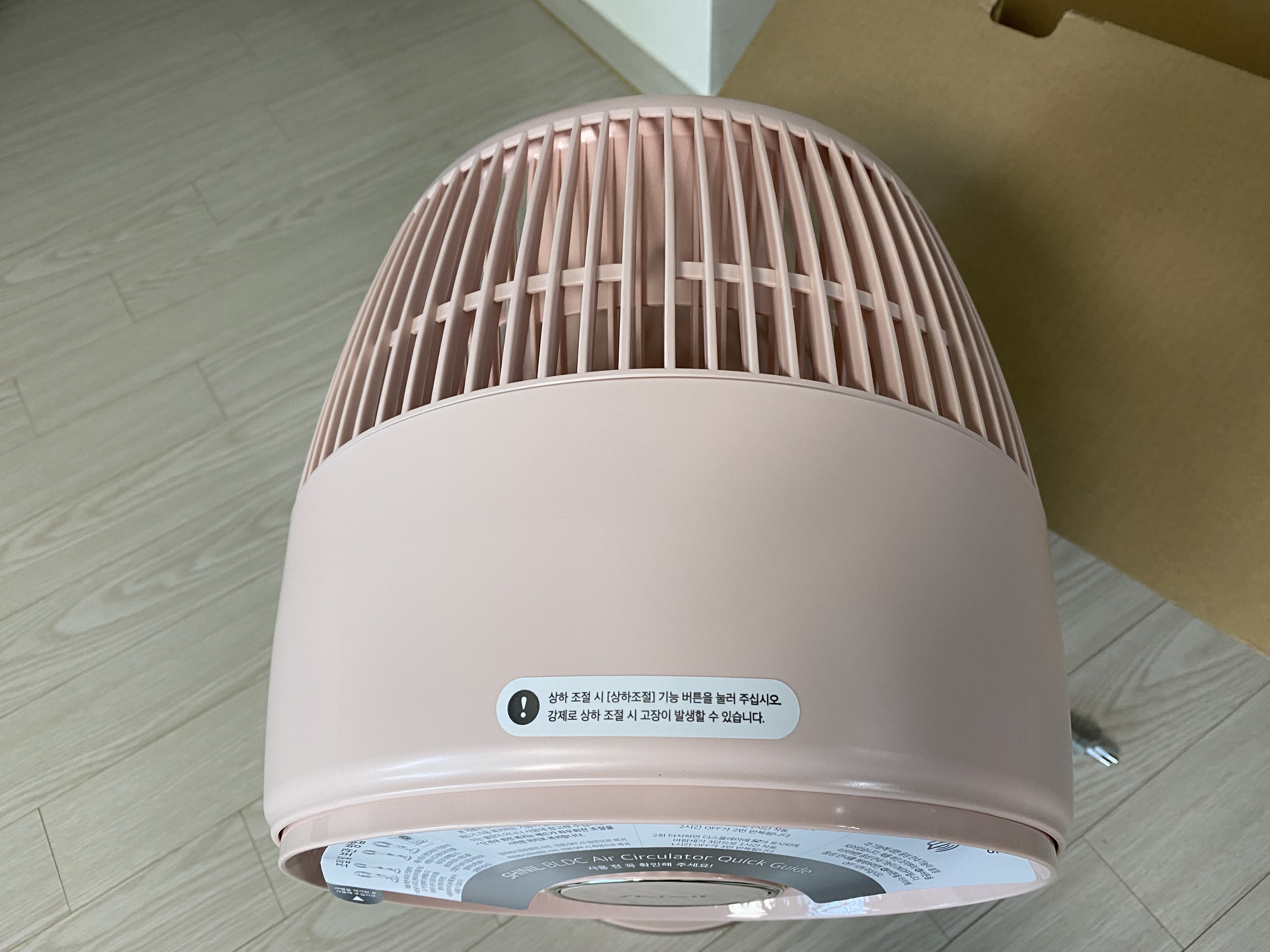 상하, 좌우 열심히 공기 순환을 시키는 모습입니다. 괜히 공기순환기(에어서큘레이터)가 아니네요. 에어컨과 함께 사용하면 시원한 바람이 아주 빨리 멀리까지 퍼질 것 같습니다.