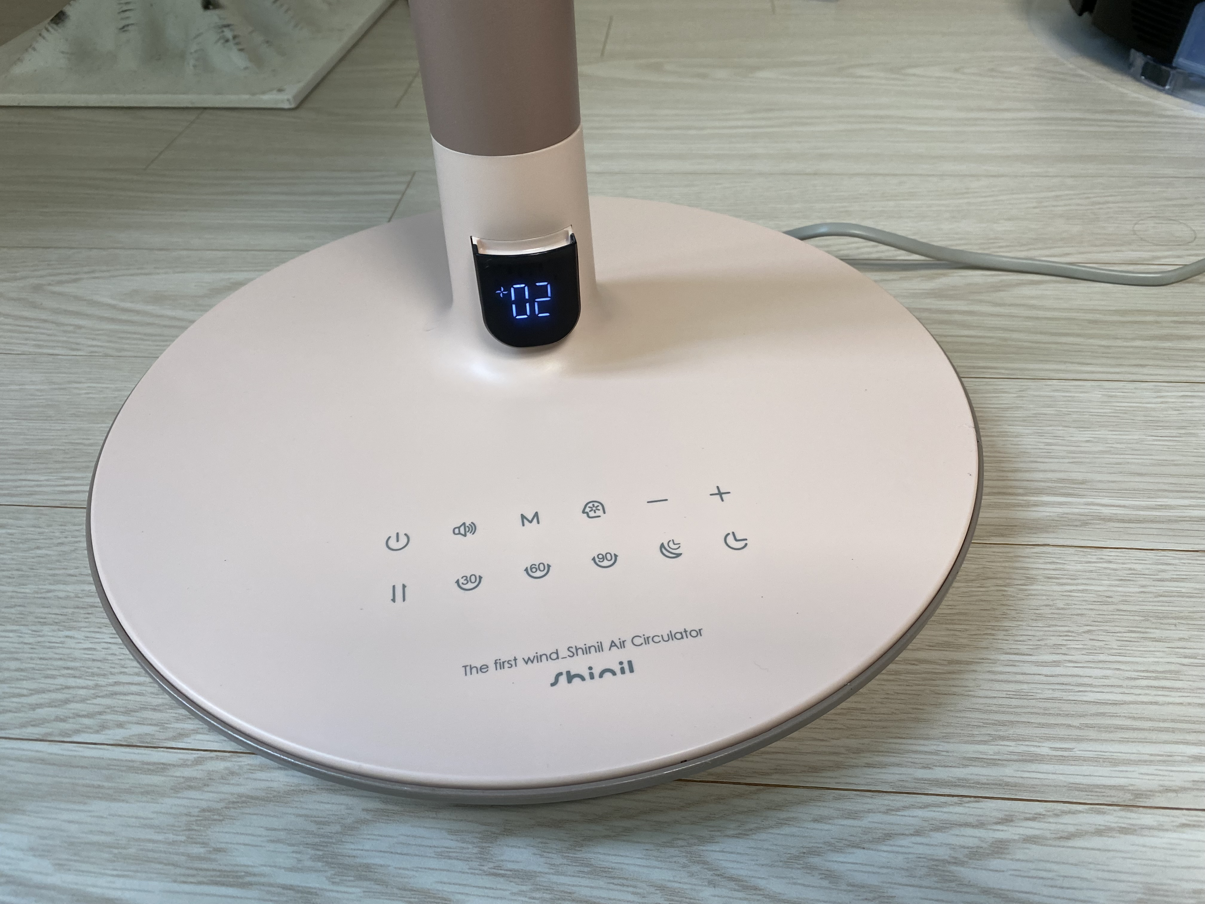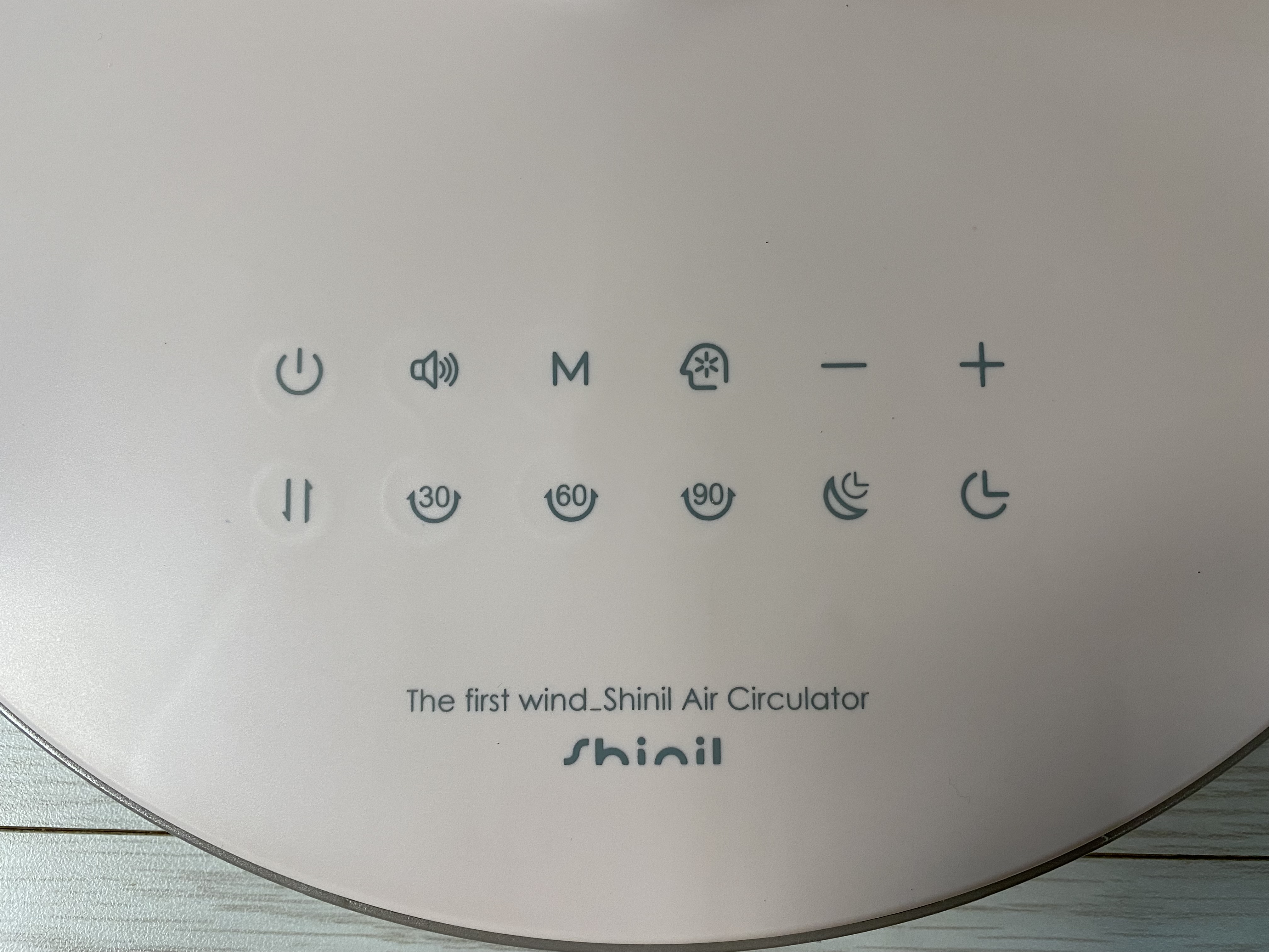선풍기 버튼은 터치 방식입니다. 개인적으로 버튼만큼은 아날로그를 선호하는데 요즘은 이런 제품이 많이 어쩔 수가 없네요. 순서대로 나열하면 이렇습니다. 전원, 음성 안내, 모드 선택(유아풍 모드, 터보 모드), AI 모드(에코 모드), 바람세기 조절, 상하 조절, 좌우 조절(30, 60, 90도), 수면 타이머, 일반 타이어.