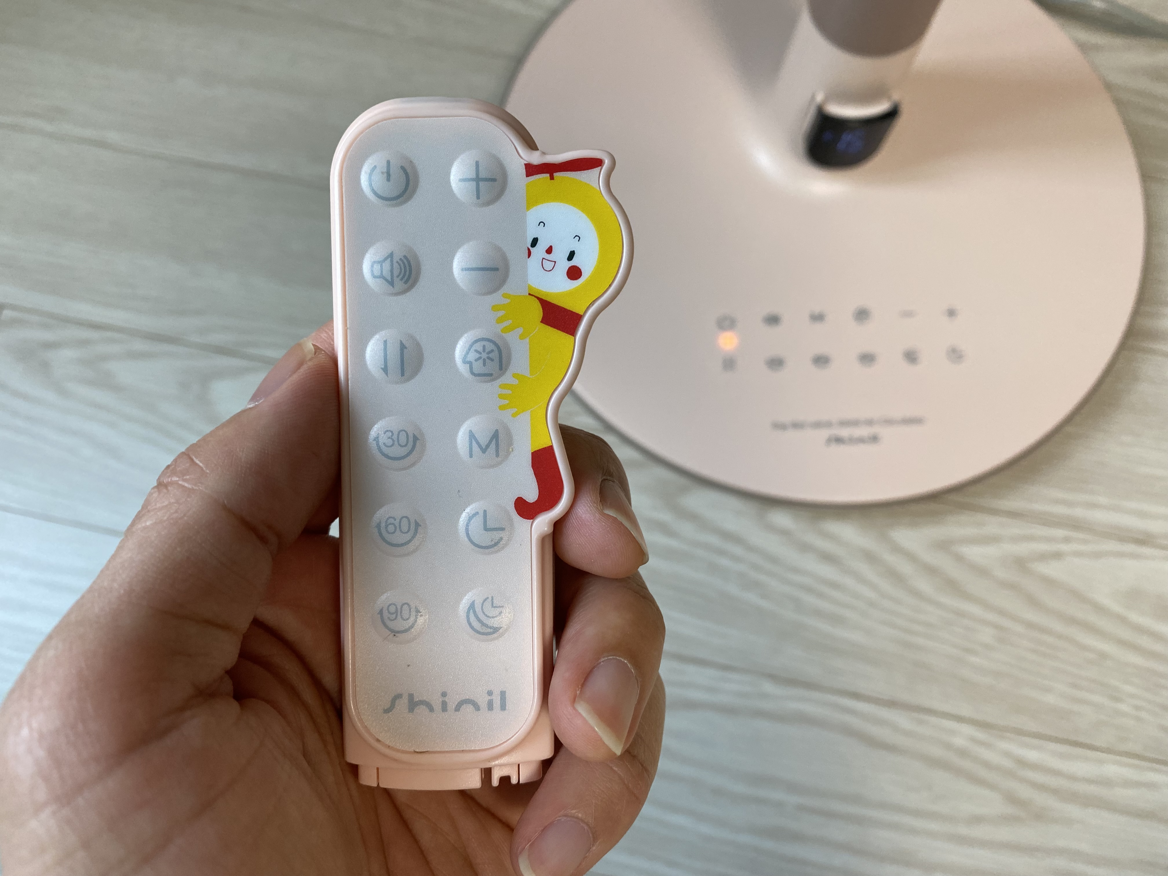 리모컨이 무지 귀엽게 생겼네요. 선풍기 본체 버튼으로 할 수 있는 일을 이 리모컨으로도 전부 할 수 있습니다. 배터리가 들어있어서 밑에 있는 화살표 종이를 제거하면 리모컨을 바로 사용할 수 있습니다.