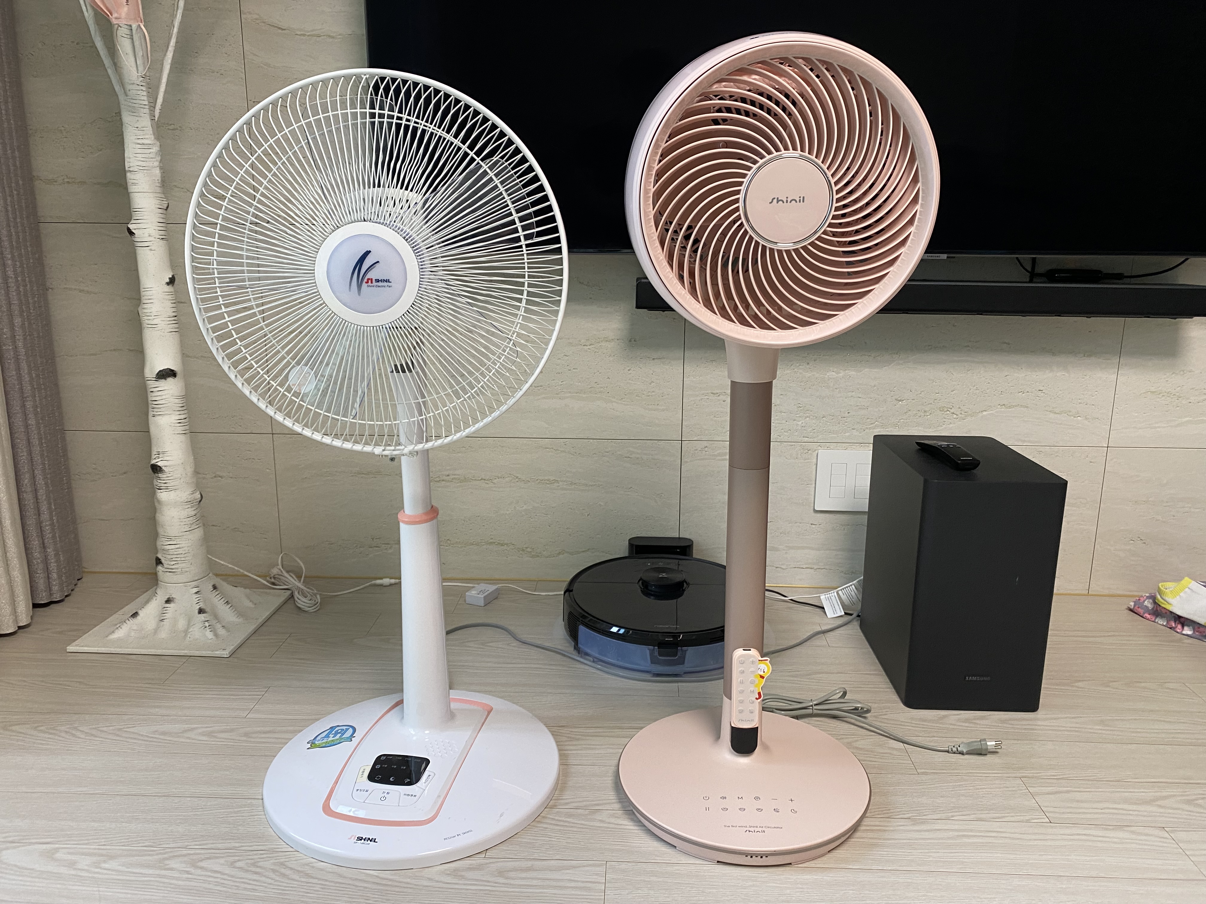 일반 선풍기와 사이즈를 비교한 사진입니다. 구매에 참고하세요.