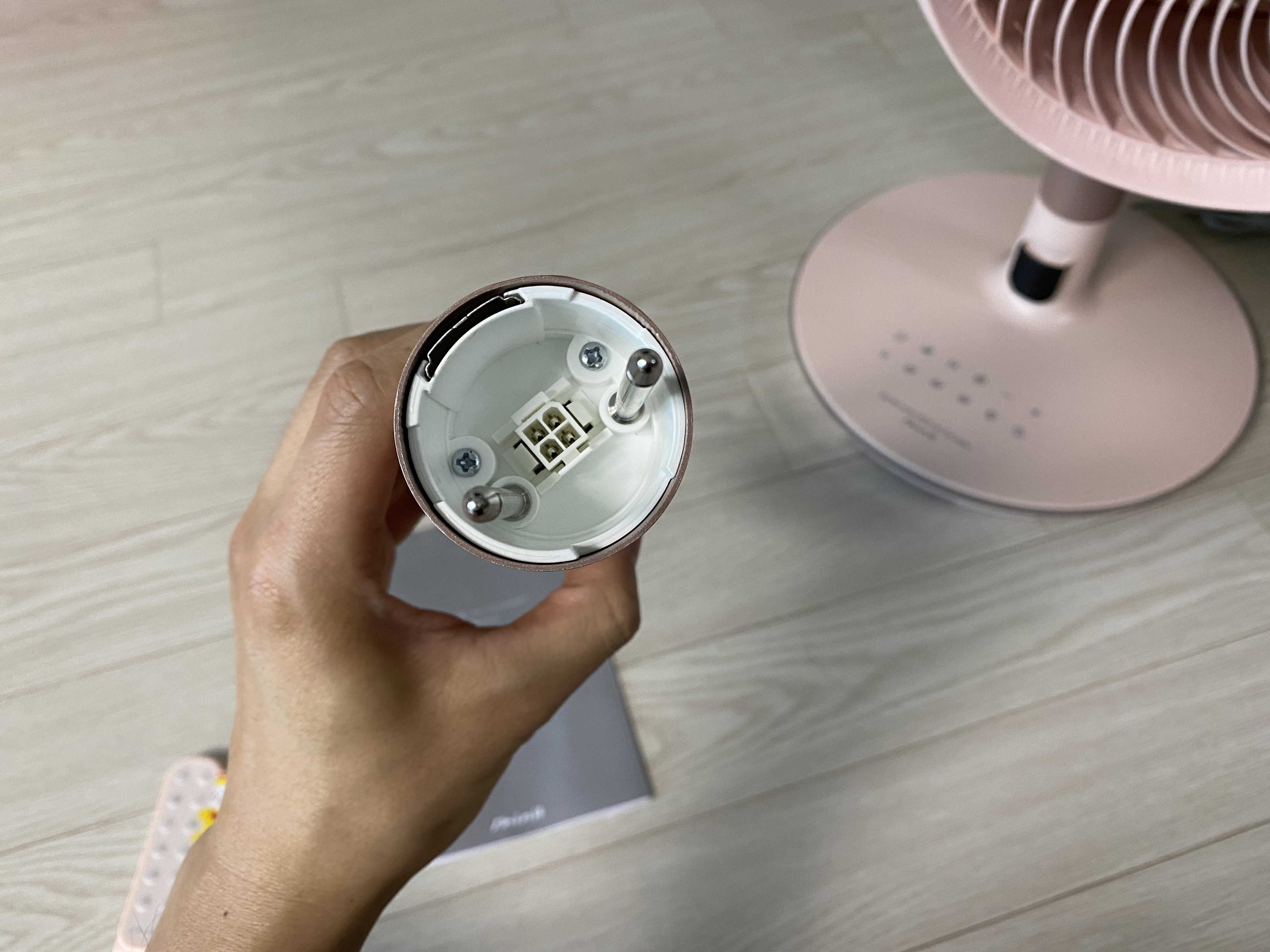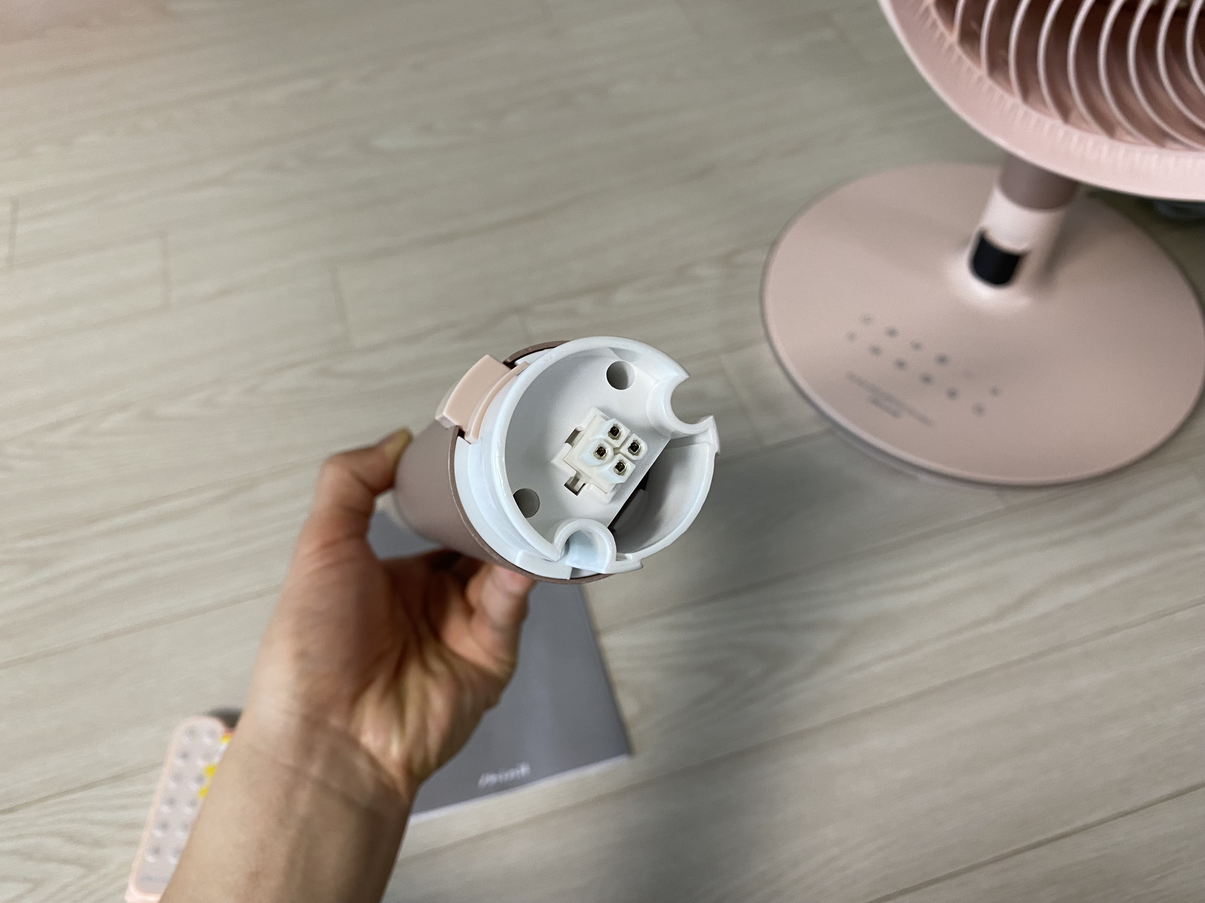 선풍기 목 하단에 있는 뒤쪽 버튼을 누르면 선풍기를 분리할 수 있습니다.