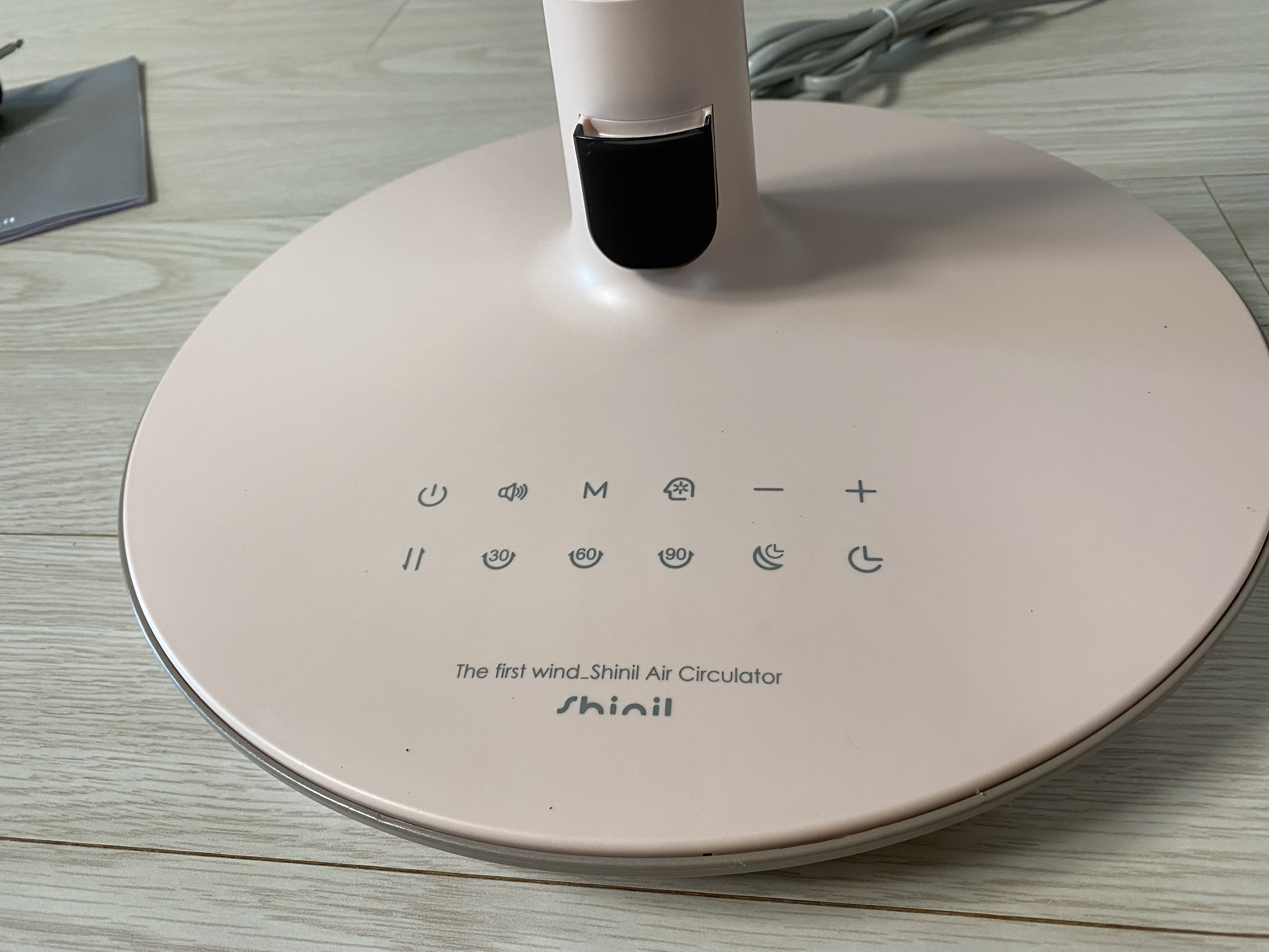 선풍기 버튼은 터치 방식입니다. 개인적으로 버튼만큼은 아날로그를 선호하는데 요즘은 이런 제품이 많이 어쩔 수가 없네요. 순서대로 나열하면 이렇습니다. 전원, 음성 안내, 모드 선택(유아풍 모드, 터보 모드), AI 모드(에코 모드), 바람세기 조절, 상하 조절, 좌우 조절(30, 60, 90도), 수면 타이머, 일반 타이어.
