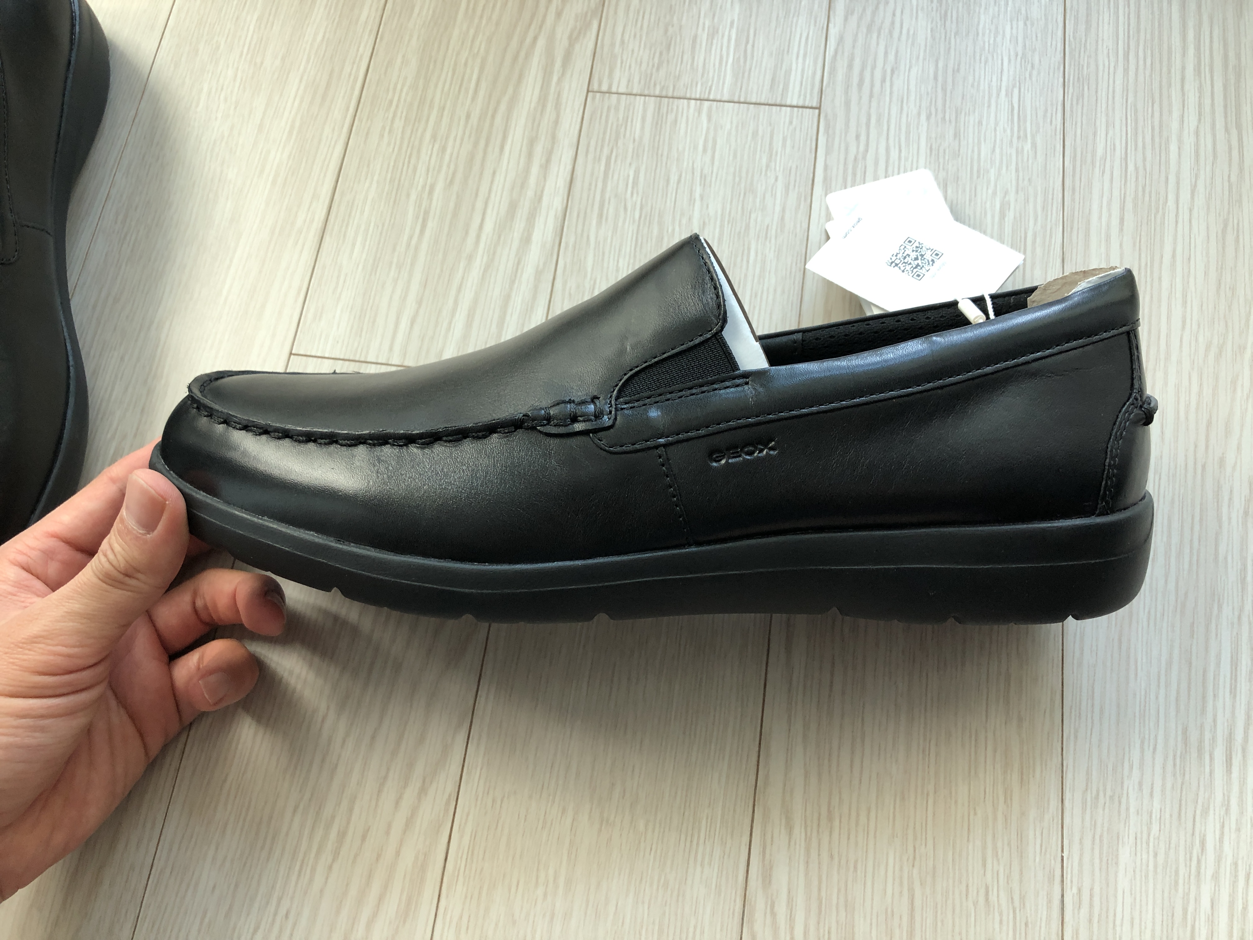 코스트코에서 나름 유명한 신발. 'GEOX 제옥스 남성 레이탄 가죽화'를 샀습니다. 1년 전에 사서 사진을 찍어놓고 신어보고 괜찮으면 글을 쓰려고 했는데 이렇게 글을 쓰고 있는 걸 보면 괜찮은 신발이 맞습니다. 인터넷 가격은 현재 84,900원. 매장에서 할인할 때 사면 조금 더 저렴하게 구매할 수 있습니다. 검은색, 갈색 2가지 색상이 있었는데 2개 다 카트에 담았다가 결국은 이 검정색만 사고 나왔습니다. 검은색은 정장에 갈색은 청바지에 잘 어울릴 것 같았는데 이건 개인 취향이라 뭐라 말하기 어렵네요. 참고로 천연 소가죽 이탈리아 신발 브랜드입니다.