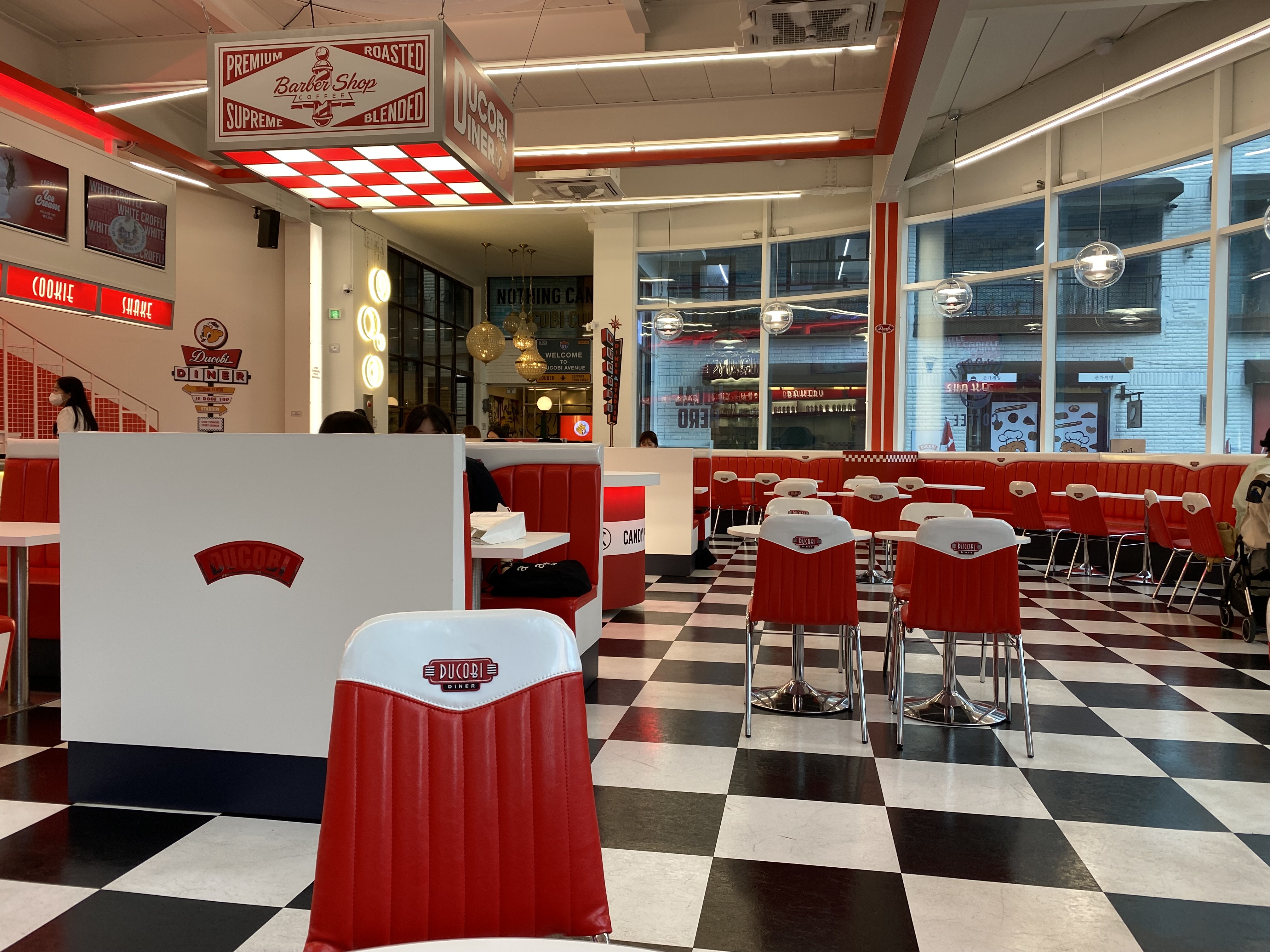 카페 듀코비 다이너(Ducobi Diner) 분위기가 참... 맥도날드, 롯데리아 같으면서도 좀 더 세련된 느낌이랄까요. 전포 카페거리에는 작은 카페가 많아서 오래 앉아있으면 조금 눈치가 보이는데 듀코비 다이너는 매장 안이 넓어서 스타벅스처럼 오래 앉아 있어도 눈치가 덜 보입니다.