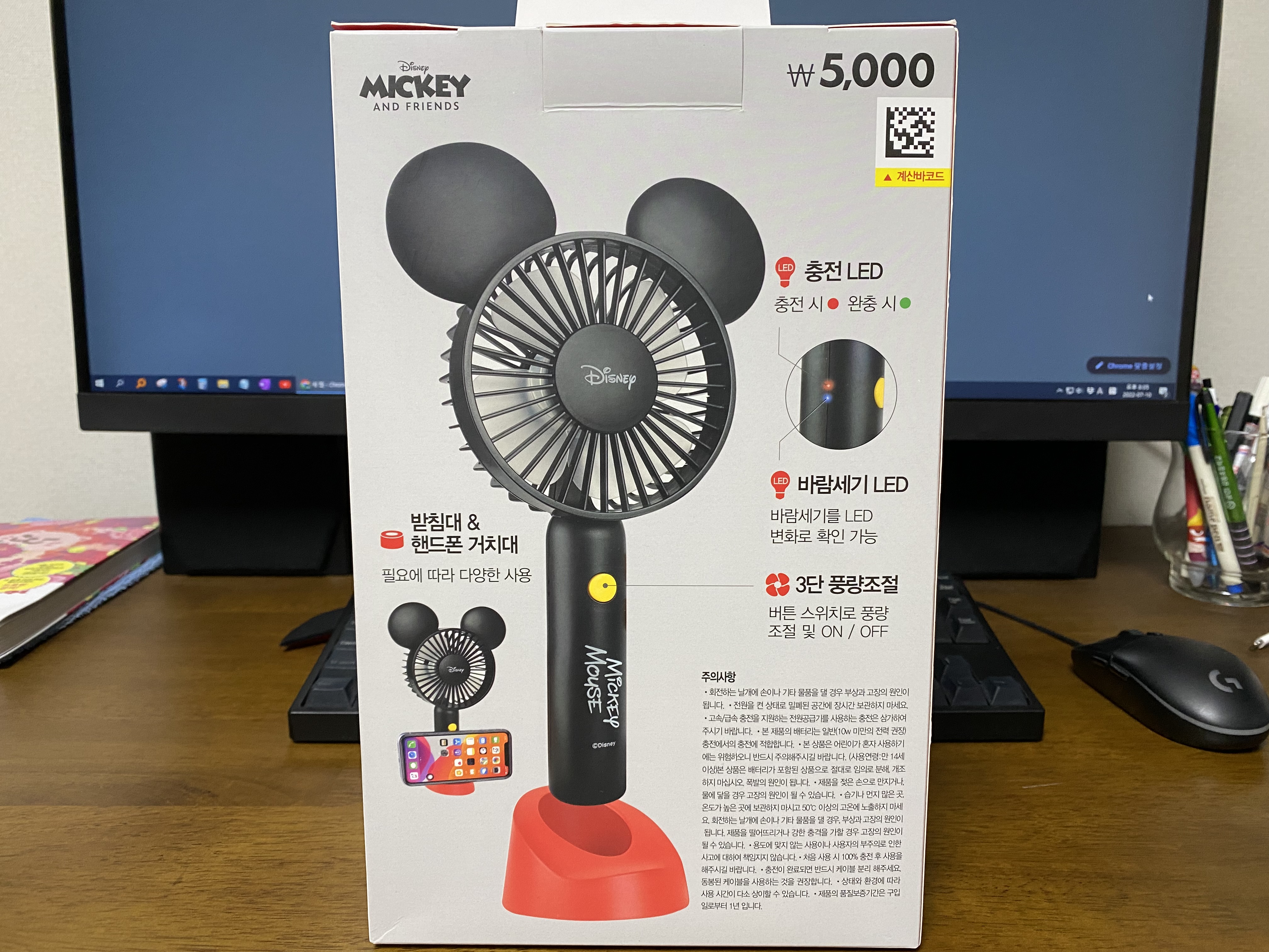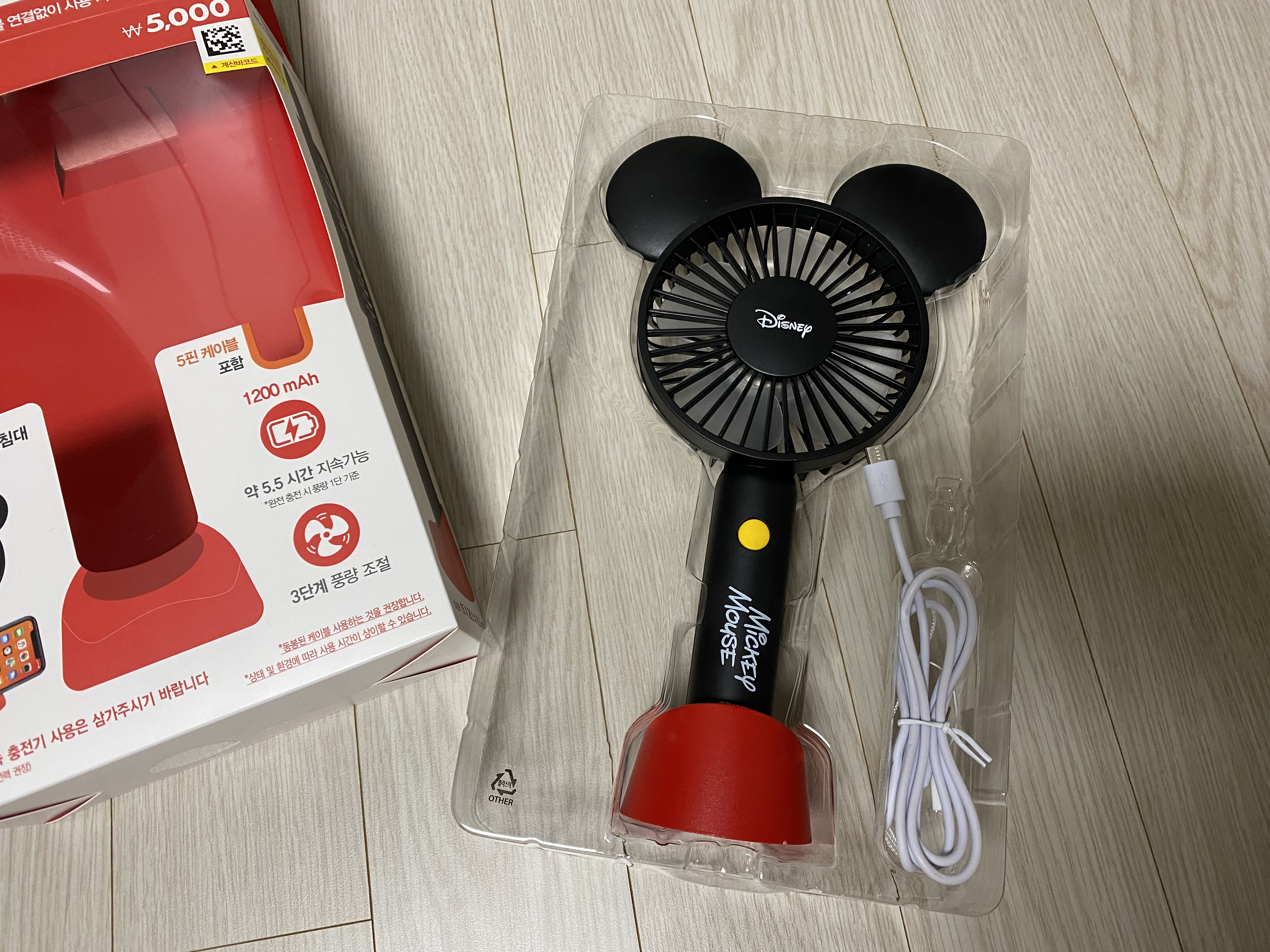 다이소 디즈니 미키마우스 휴대용 핸디 선풍기 개봉!
