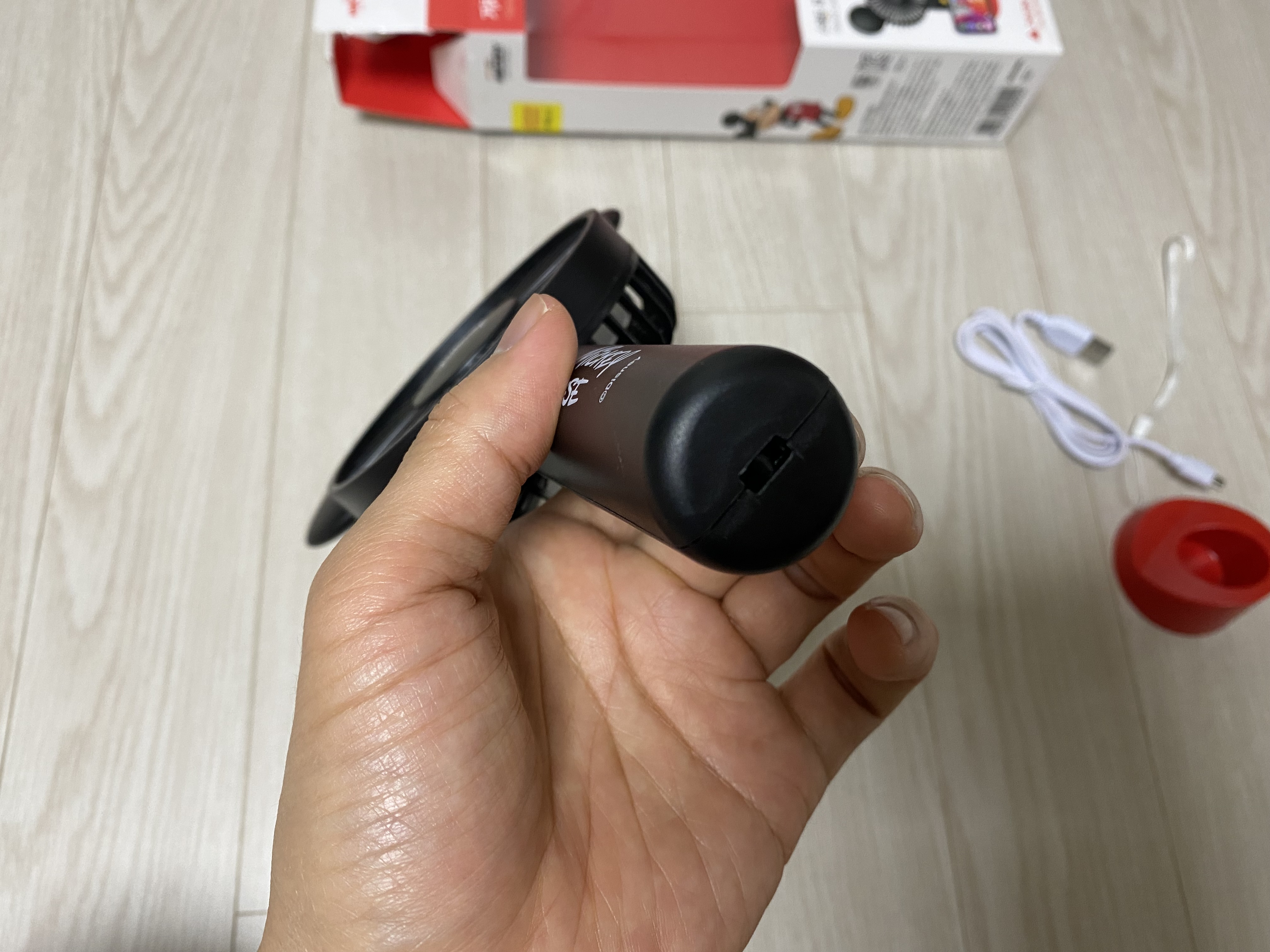 거의 모든 핸디 선풍기가 그러하듯 이 제품도 5핀 케이블로 충전을 하는 구조네요. 고장이 잘 나기로 유명한 5핀 케이블 충전 방식은 빨리 사려졌으면 좋겠습니다 ㅜㅜ