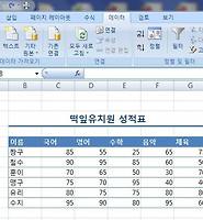 떡잎유치원 성적표 데이터 임의의 셀을 선택한 후(드래그해서 영역을 지정해도 됨)