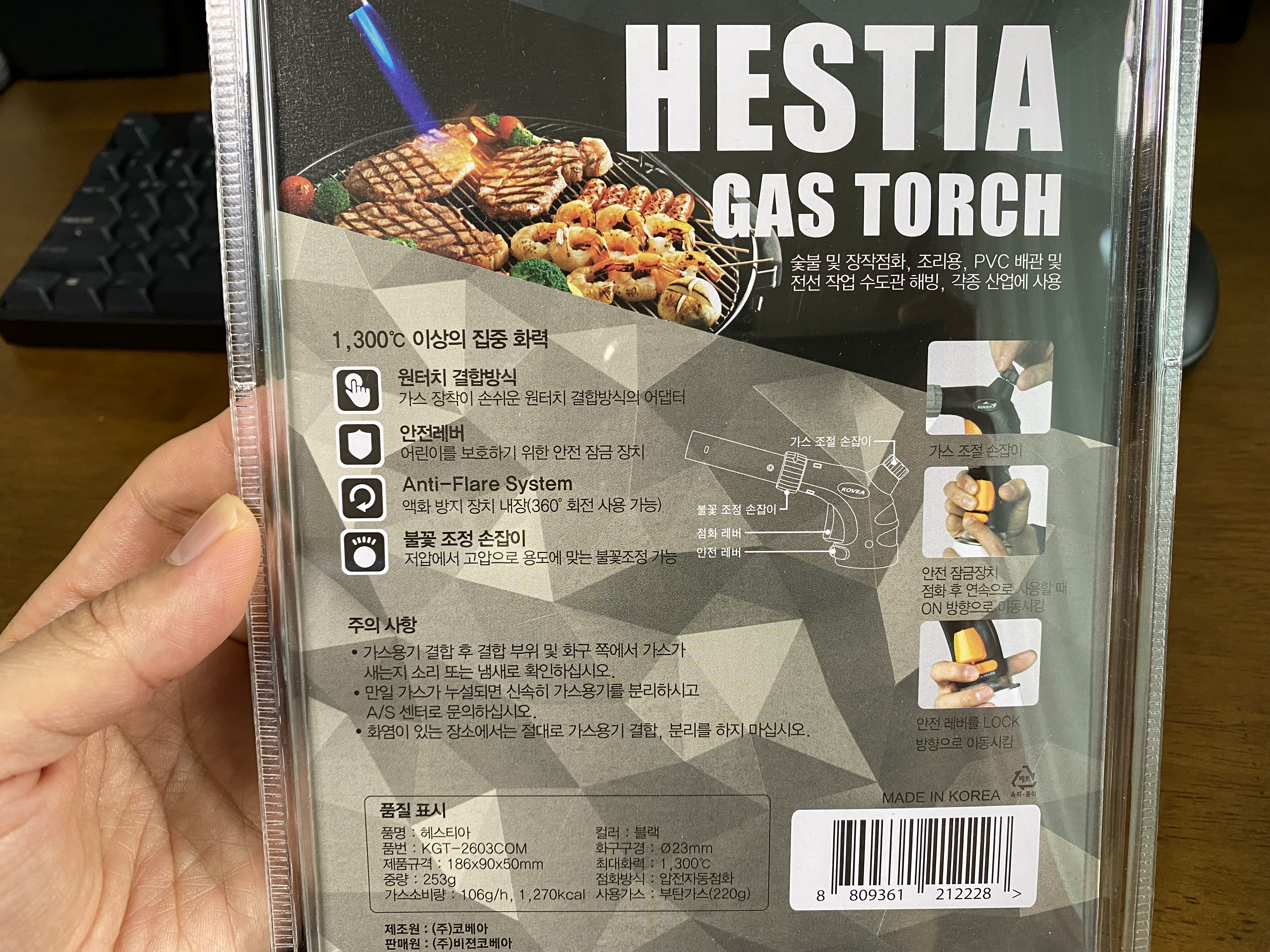 코스트코 코베아 헤스티아 토치. 가격은 좀 비싸지만 괜찮은 제품이라 오래 사용할 수 있을 것 같습니다. 버튼과 레버를 사용할 때도 안정감이 느껴지는 것이 마음에 듭니다. 잘 샀네요.