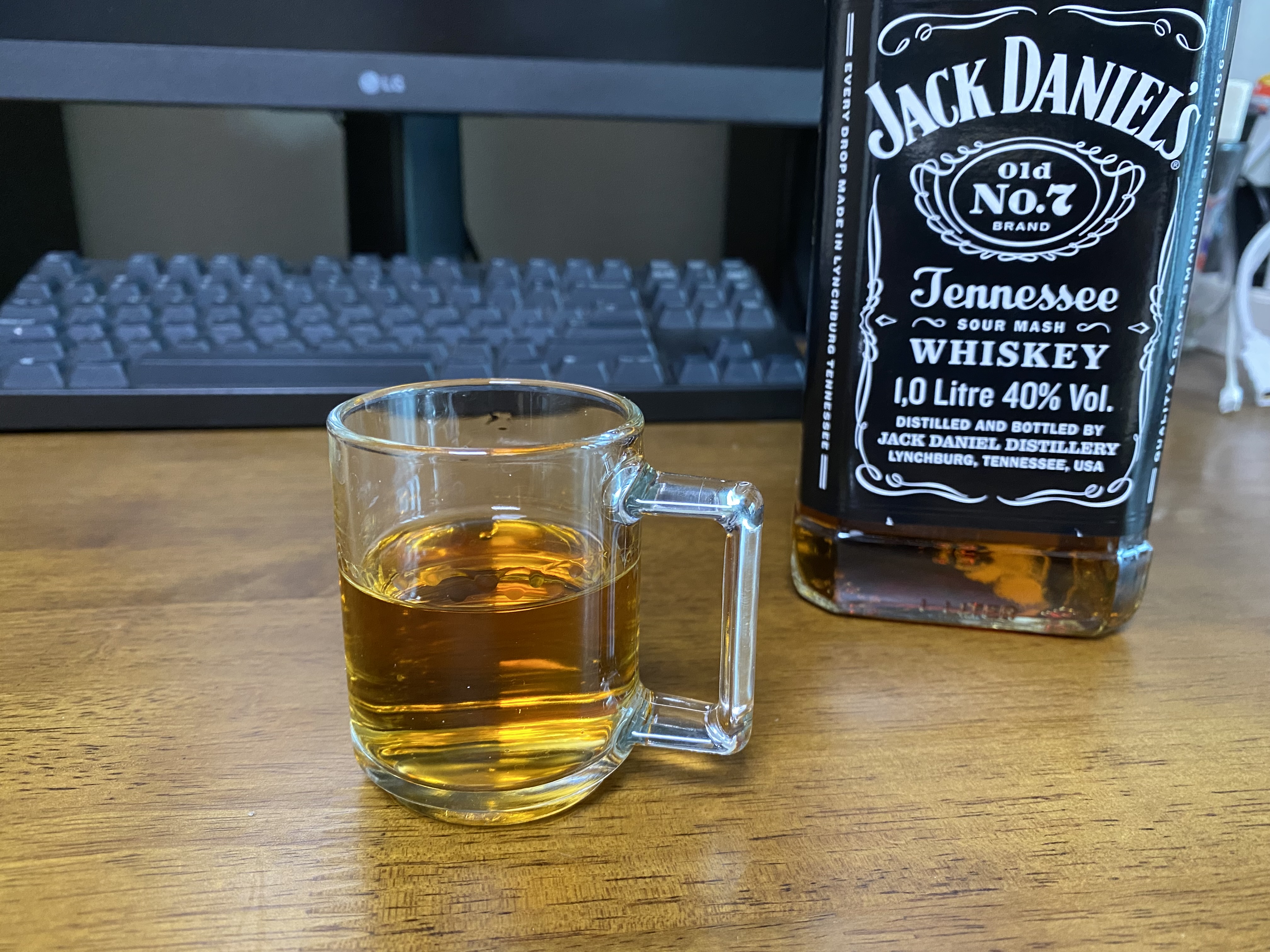 전에 코스트코 갔을 때 잭 다니엘스 1리터를 샀었는데 이번에 가니 같은 가격에 전용잔이 들어간 패키지를 판매하고 있네요. 으아... 안 그래도 전용잔이 있으면 좋겠다 생각을 했었고 억울해서 이번에 한 병 더 구매했습니다. 제가 좀 전용잔에 집착하는 성향이라 안 살 수가 없었습니다.