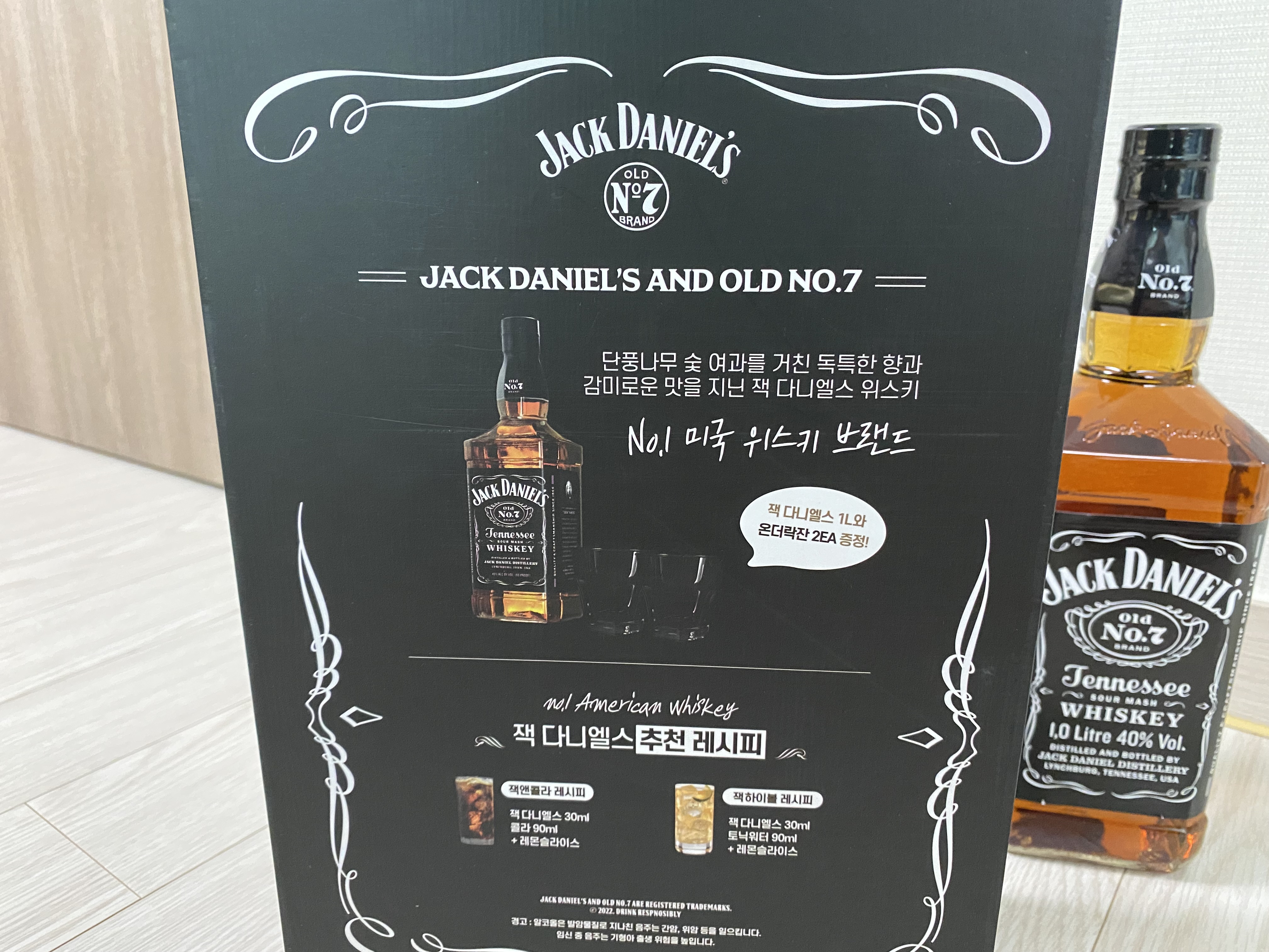 정확한 제품명은 잭 다니엘스 JACK DANIEL'S. 알코올 도수는 40%. 미국 위스키.