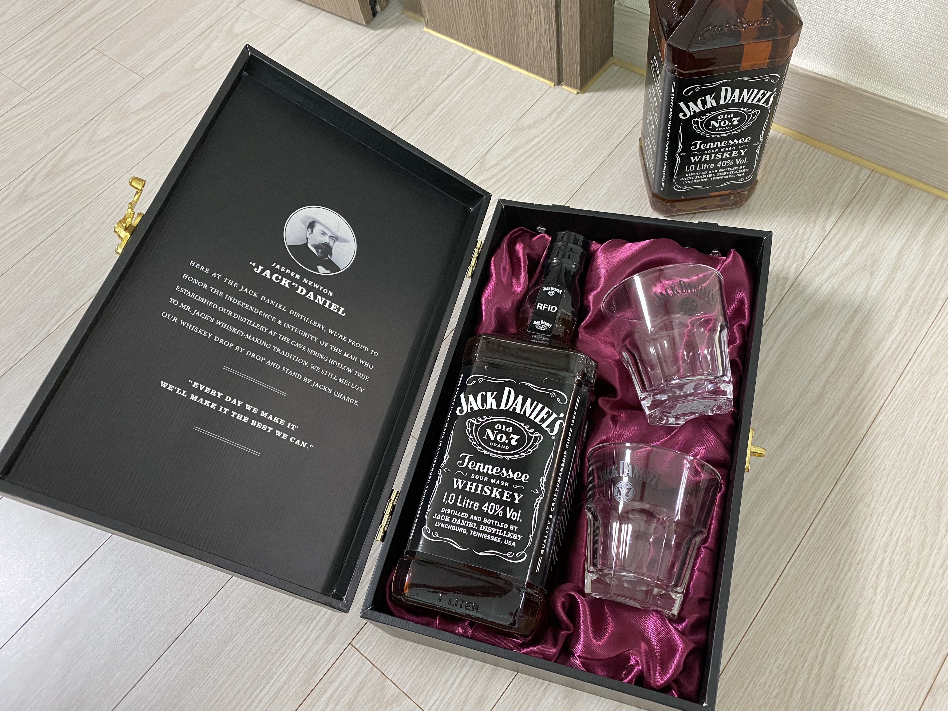 정확한 제품명은 잭 다니엘스 JACK DANIEL'S. 알코올 도수는 40%. 미국 위스키.