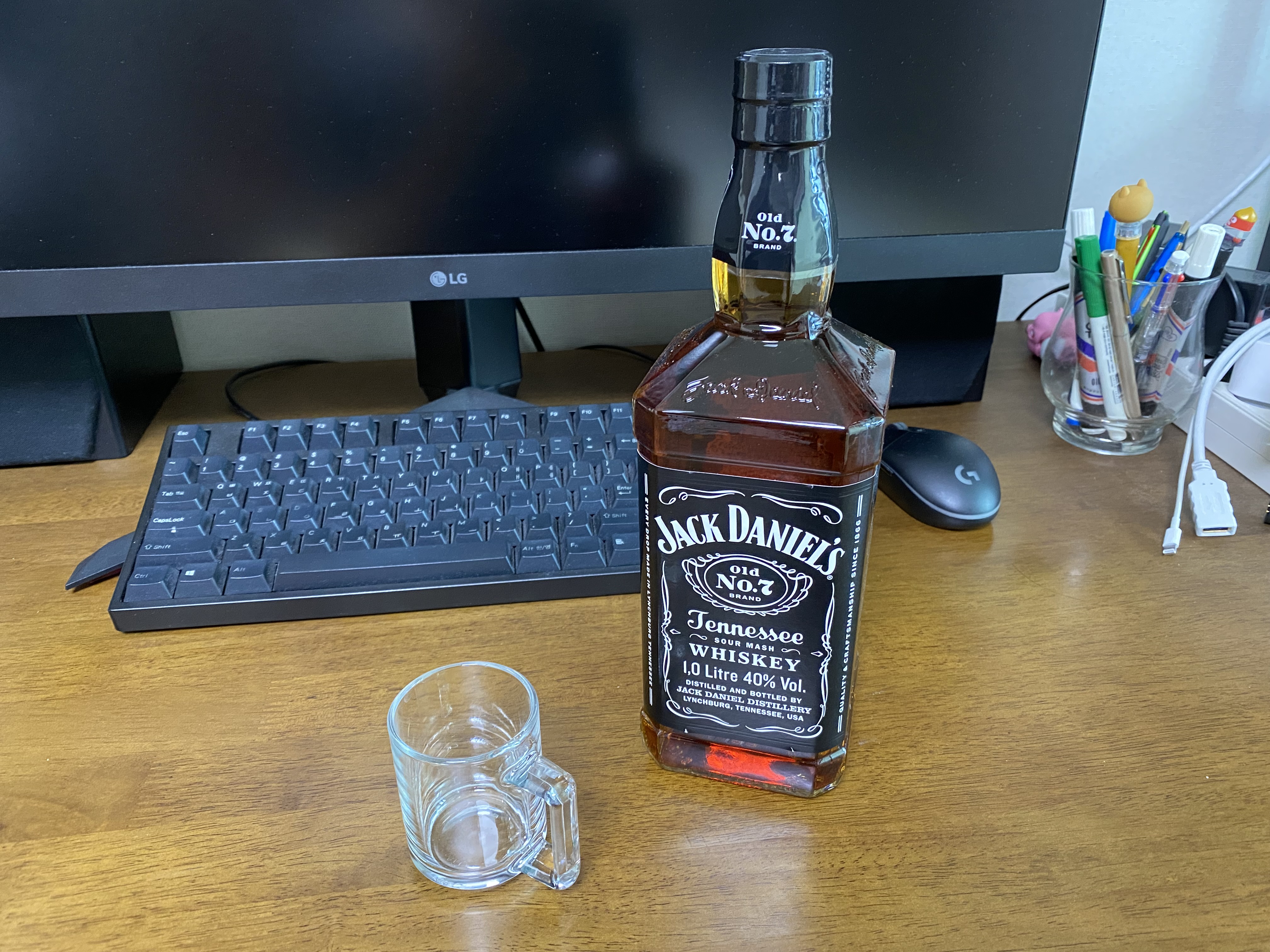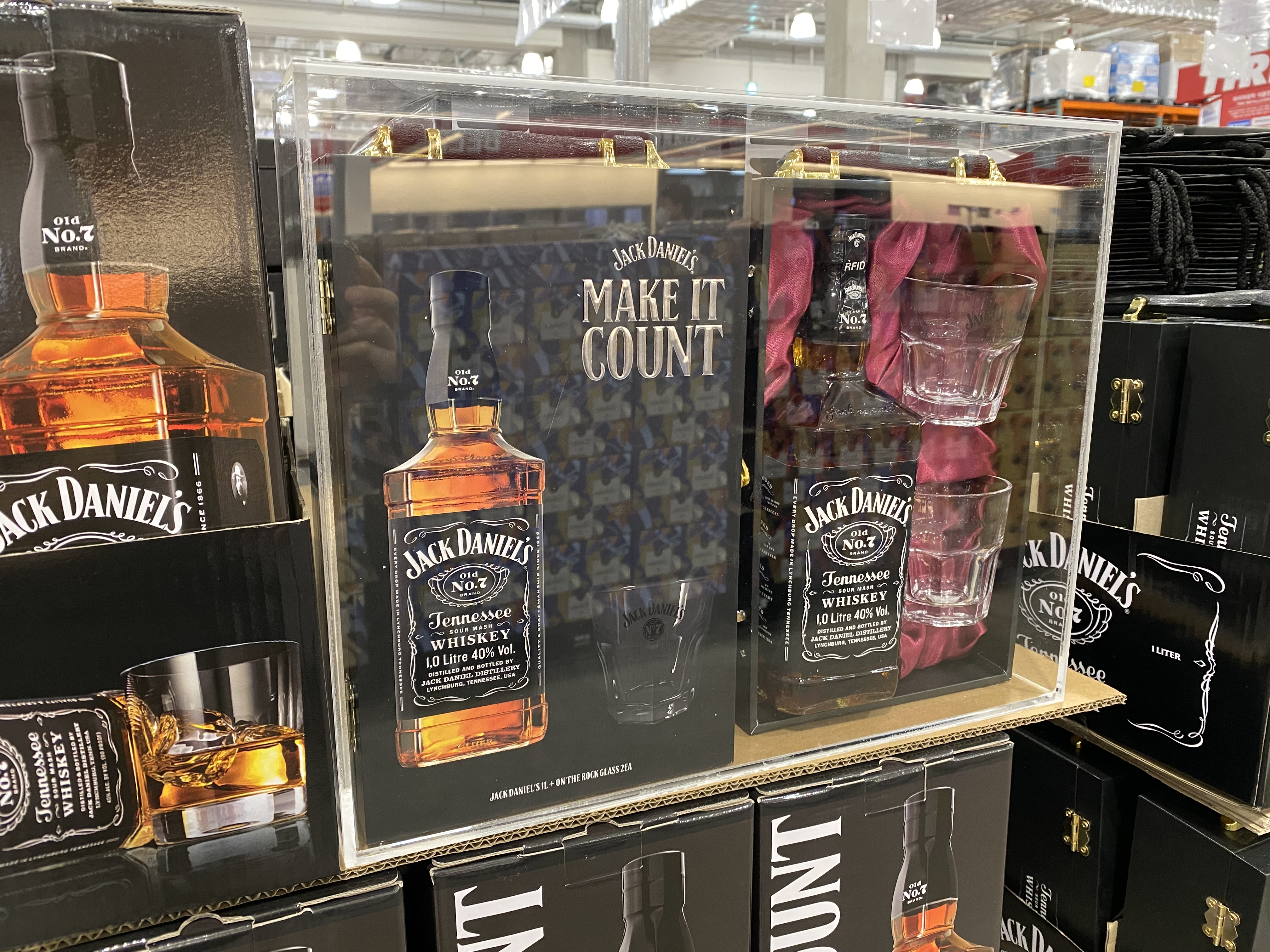 전에 코스트코 갔을 때 잭 다니엘스 1리터를 샀었는데 이번에 가니 같은 가격에 전용잔이 들어간 패키지를 판매하고 있네요. 으아... 안 그래도 전용잔이 있으면 좋겠다 생각을 했었고 억울해서 이번에 한 병 더 구매했습니다. 제가 좀 전용잔에 집착하는 성향이라 안 살 수가 없었습니다.