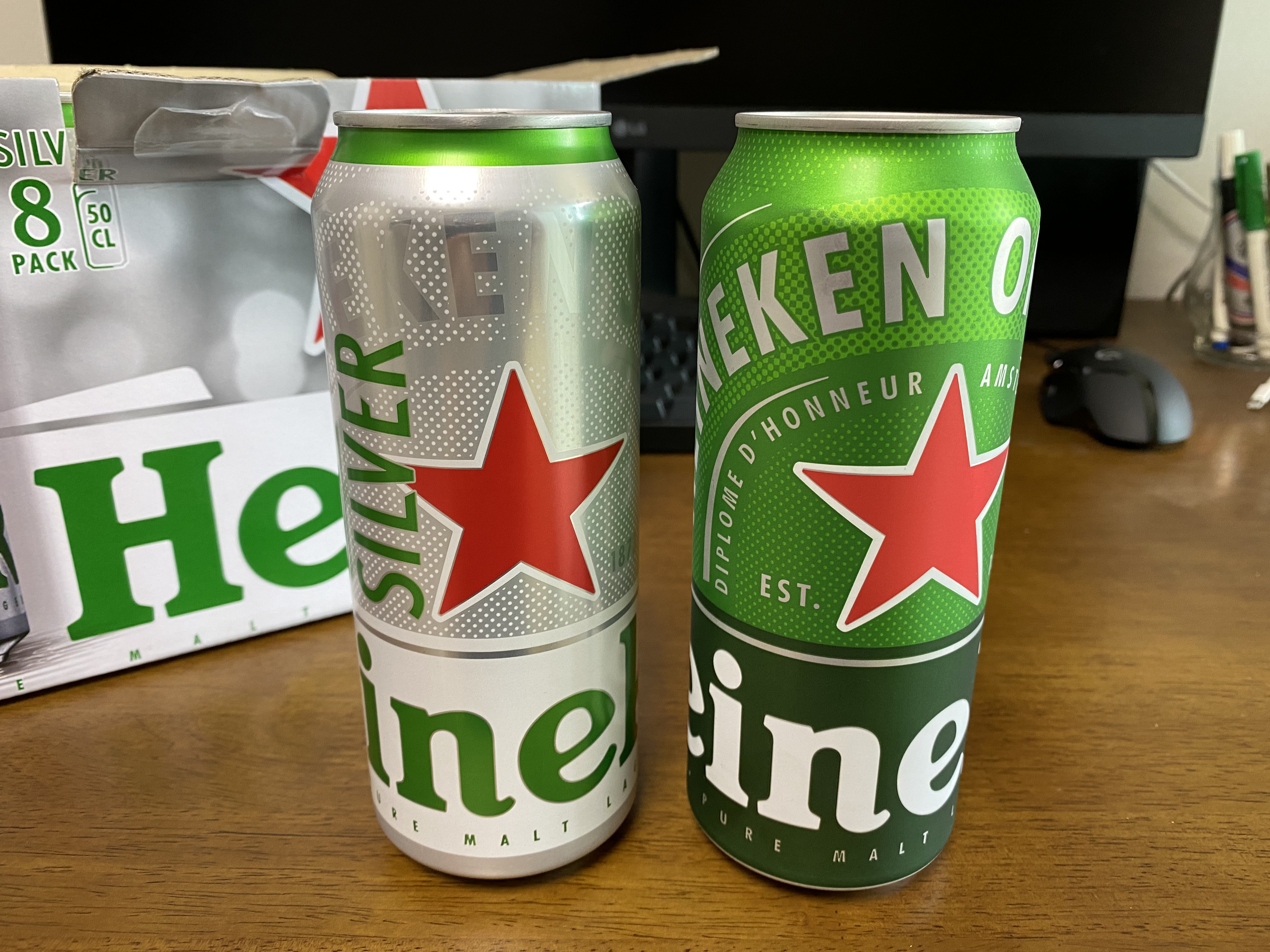 하이네켄 실버와 그냥 하이네켄 비교컷. 색상말고는 거의 비슷비슷합니다.