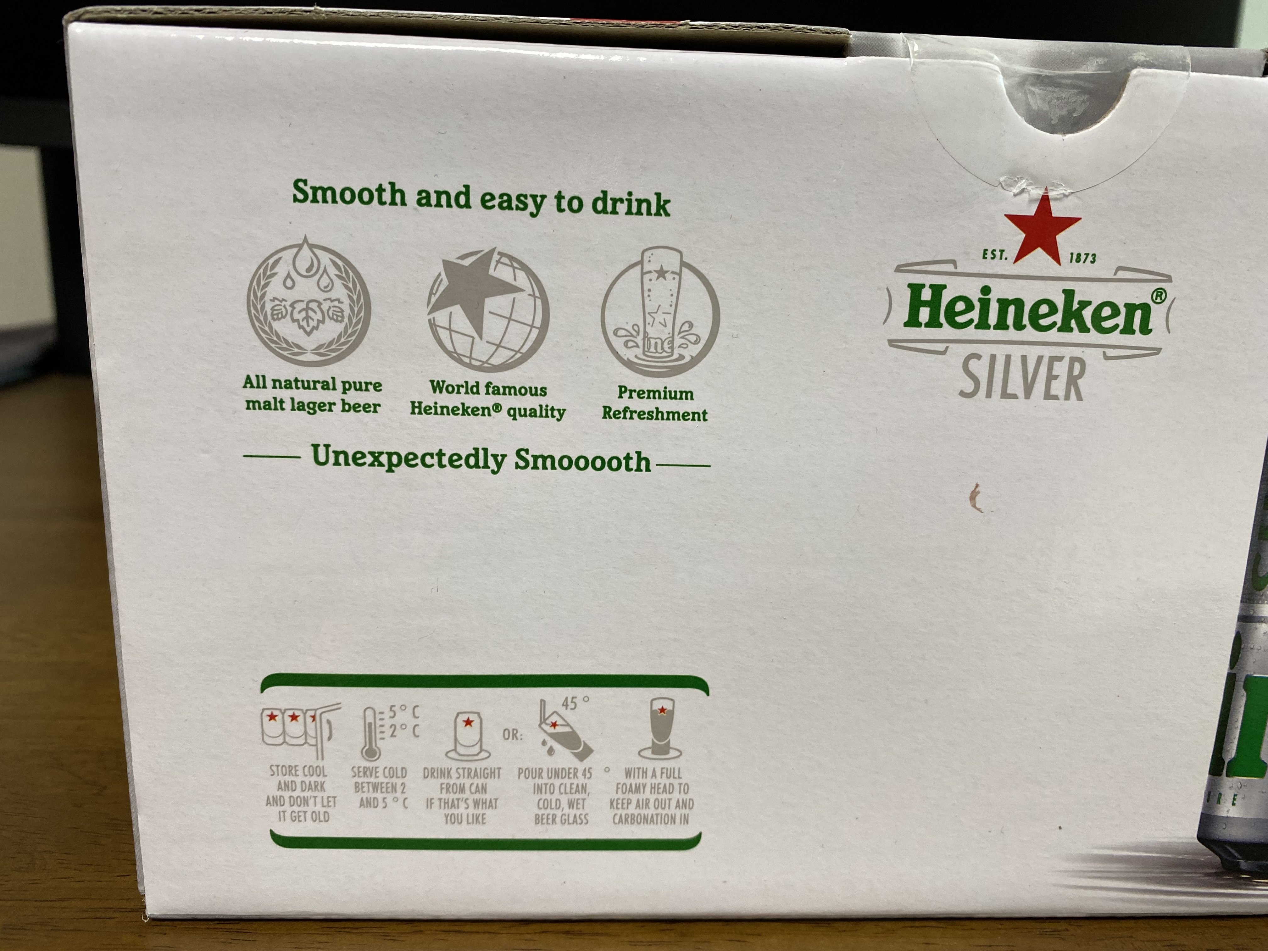 이것이 바로 하이네켄 실버 500ml 8캔 박스입니다. 색다른 건 없어요.