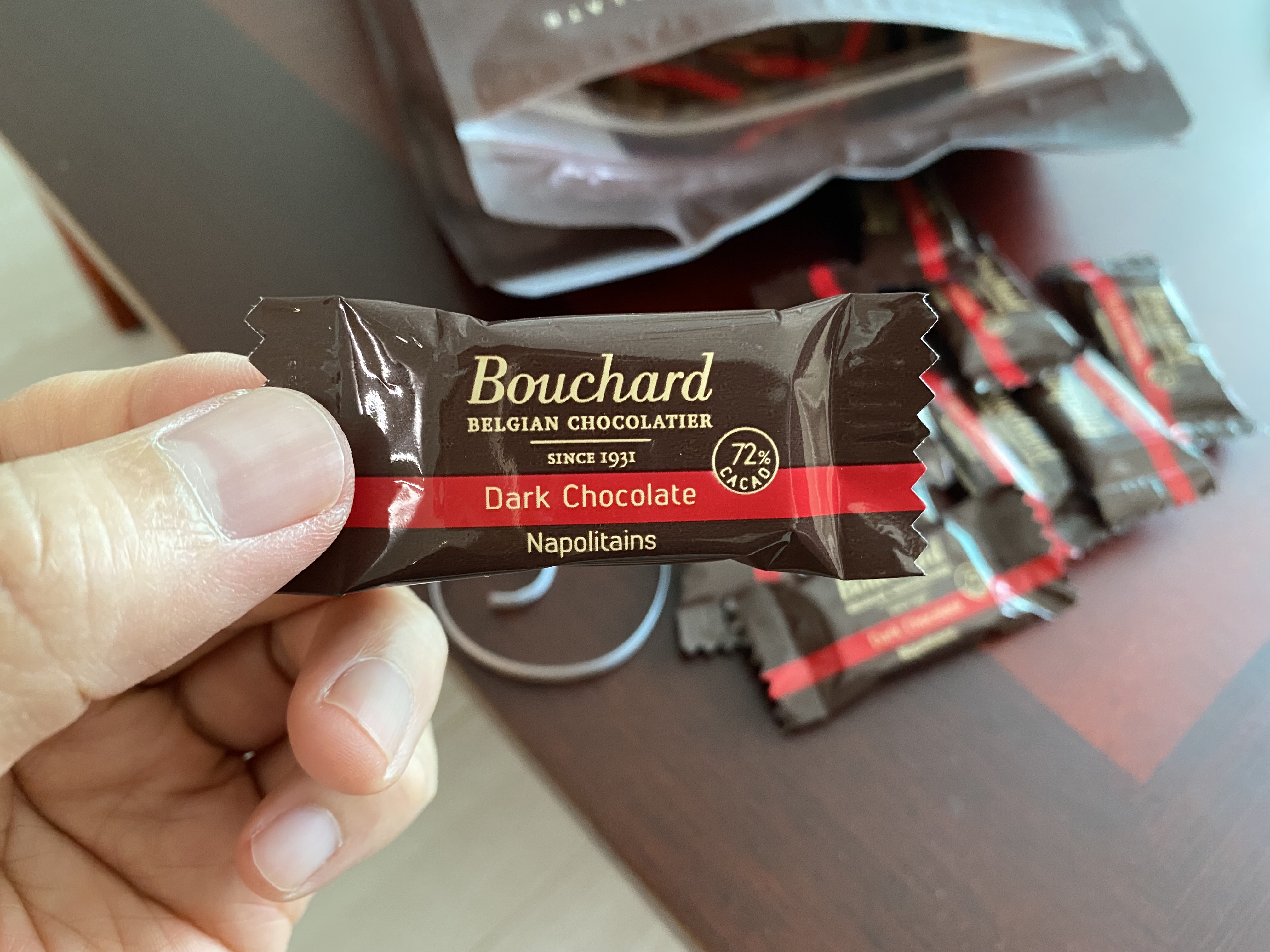 이것이 바로 부샤드 다크 초콜릿. 낱개 포장으로 하나씩 깔끔하게 먹을 수 있습니다.