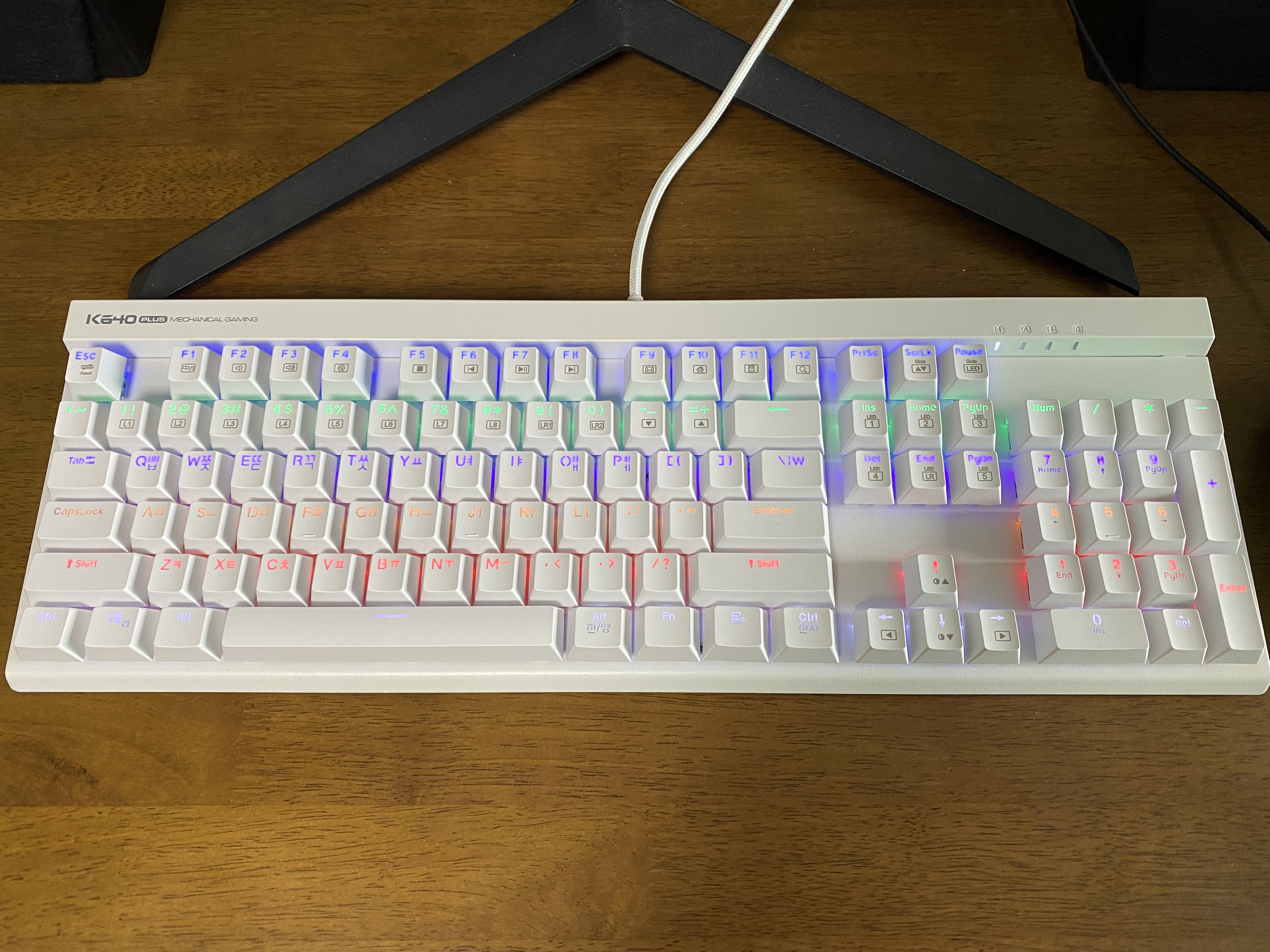 앱코 HACKER K640 플러스 축 교환 LED 게이밍 키보드. 키보드의 비주얼도 중요하지만 역시 키보드는 키감이 좋아야 한다고 생각합니다. 키 눌러지는 느낌이나 청축의 타닥타닥 사운드까지는 나름 괜찮은데 키를 누르고 땔 때 나는 스프링이 튕기는 소리는 귀에 살짝 거슬리네요. 비싼 기계식 키보드와 이런 점에서 차이가 나나 싶었습니다. 이 키보드는 다른 키보드를 사기 전 잠시 사용할 생각입니다. 그냥 쓸 수도 있는데 저는 텐키리스 제품을 선호해서. 아무튼 PC방에서 사용하기에는 무리가 없는 가성비 기계식 키보드라 생각합니다. 게임을 험하게 하는 분에게도 추천합니다. 자주 바꿔도 경제적 부담이 없으니까요.