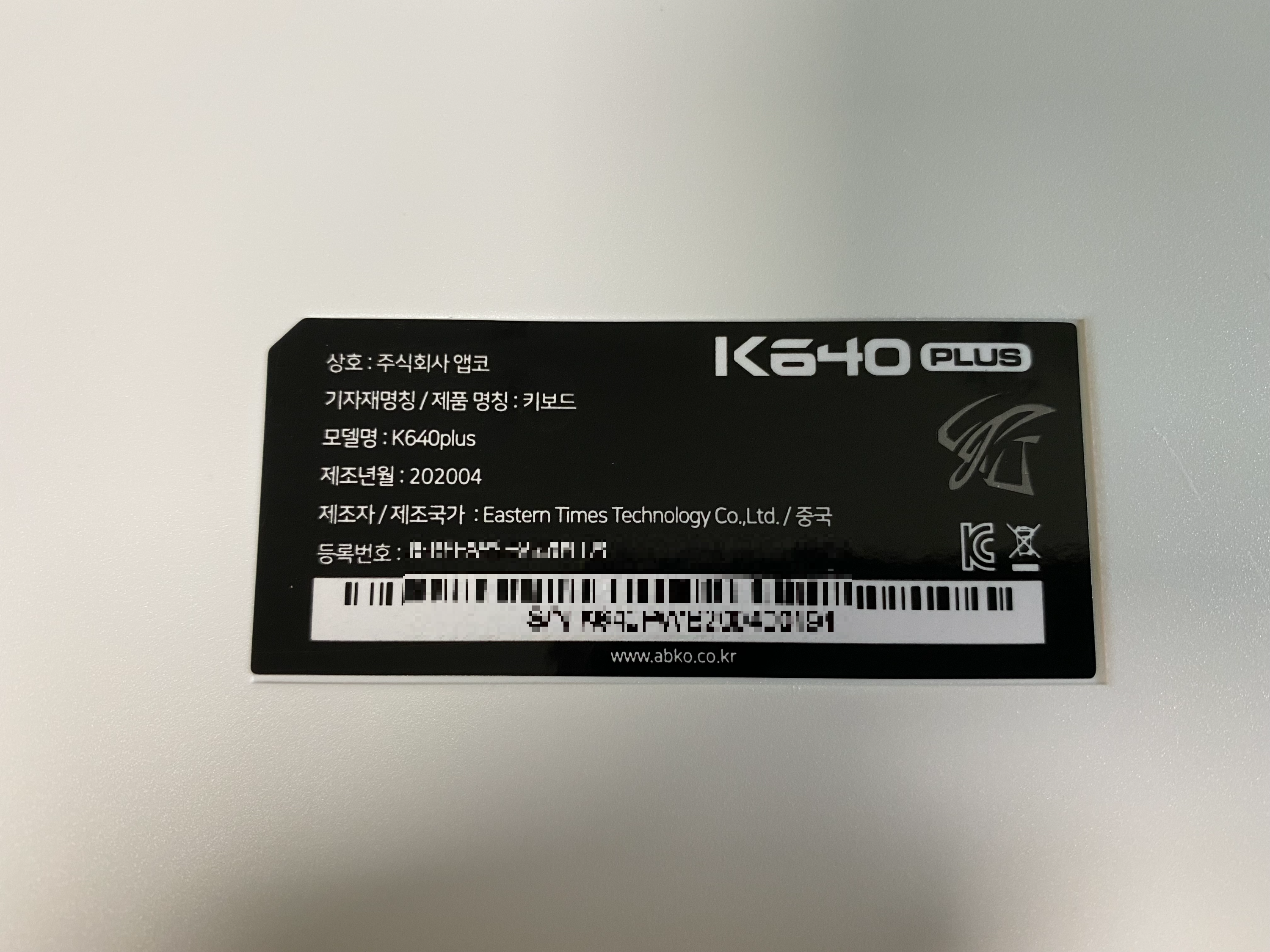 주식회사 앱코 K640plus 키보드. 2년 전에 만들어진 키보드네요.