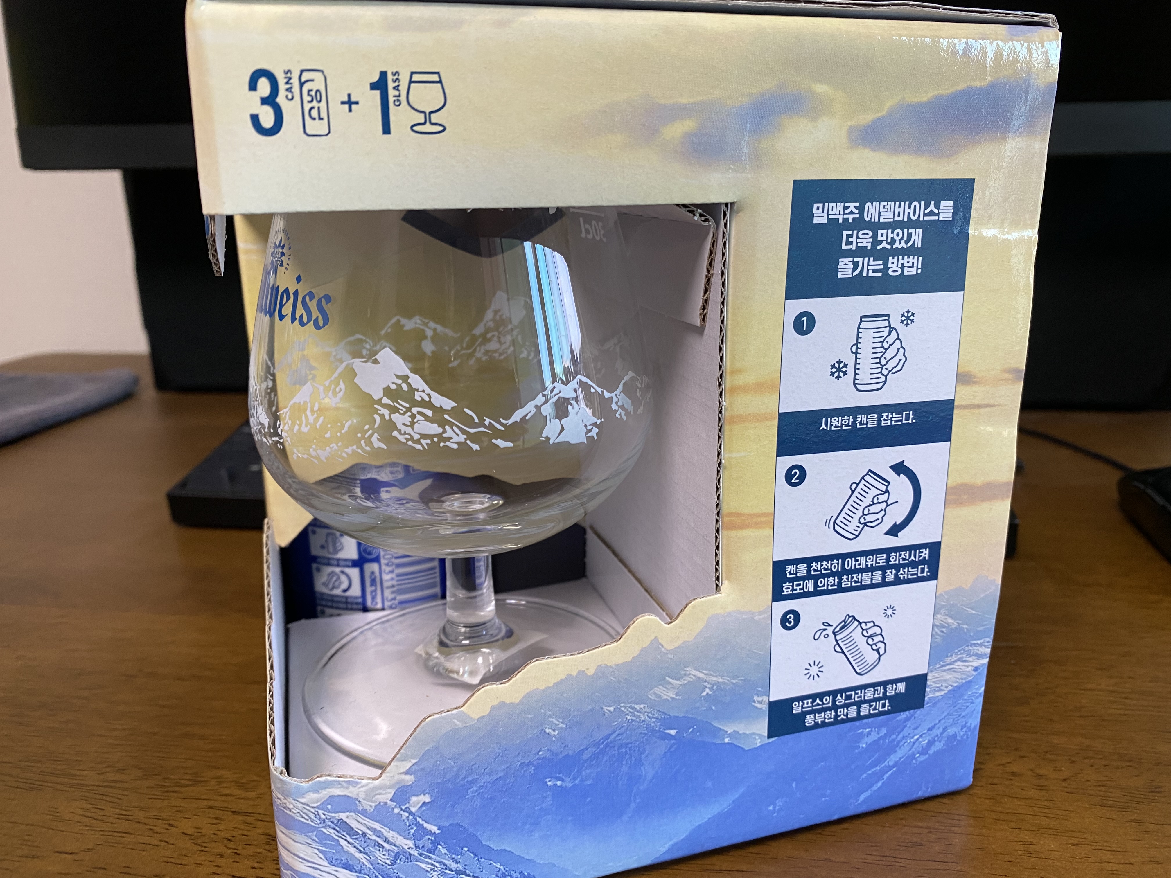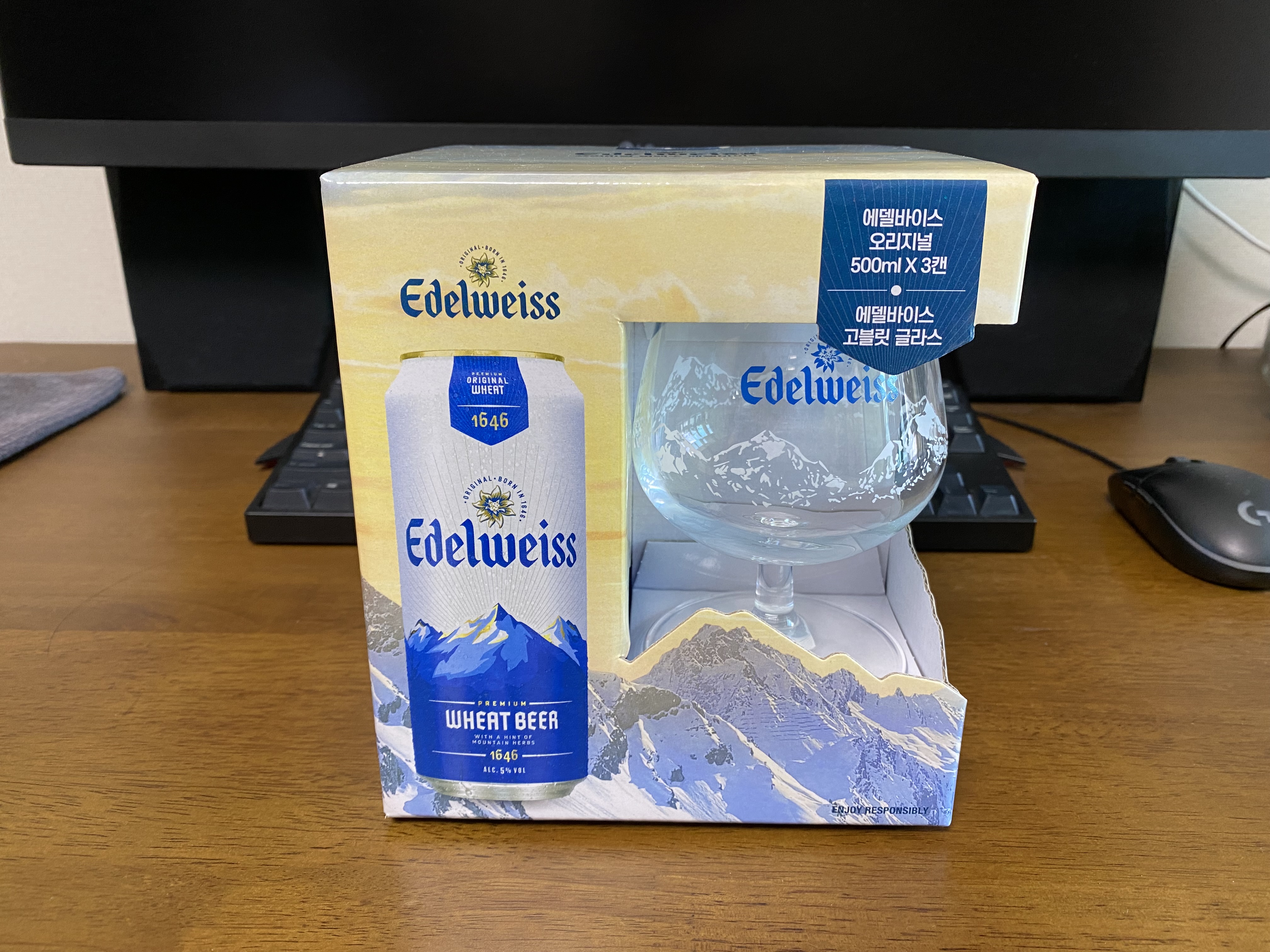 에델바이스 오리지널 500ml X 3캔 + 에델바이스 고블릿 글라스. 홈플러스를 둘러보다 에델바이스 전용잔을 보고 바로 카트에 담았습니다. 예전에 산 에델바이스 전용잔이 있었지만 이건 좀 달라서...